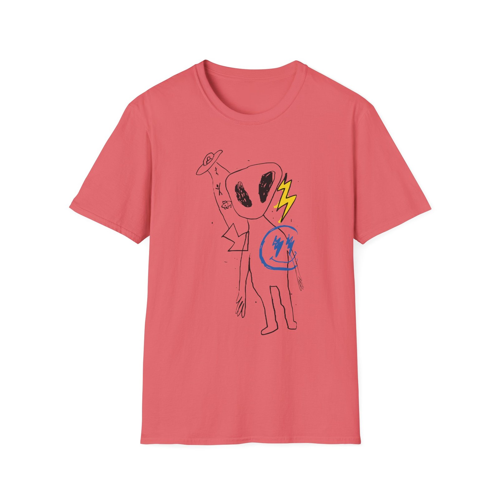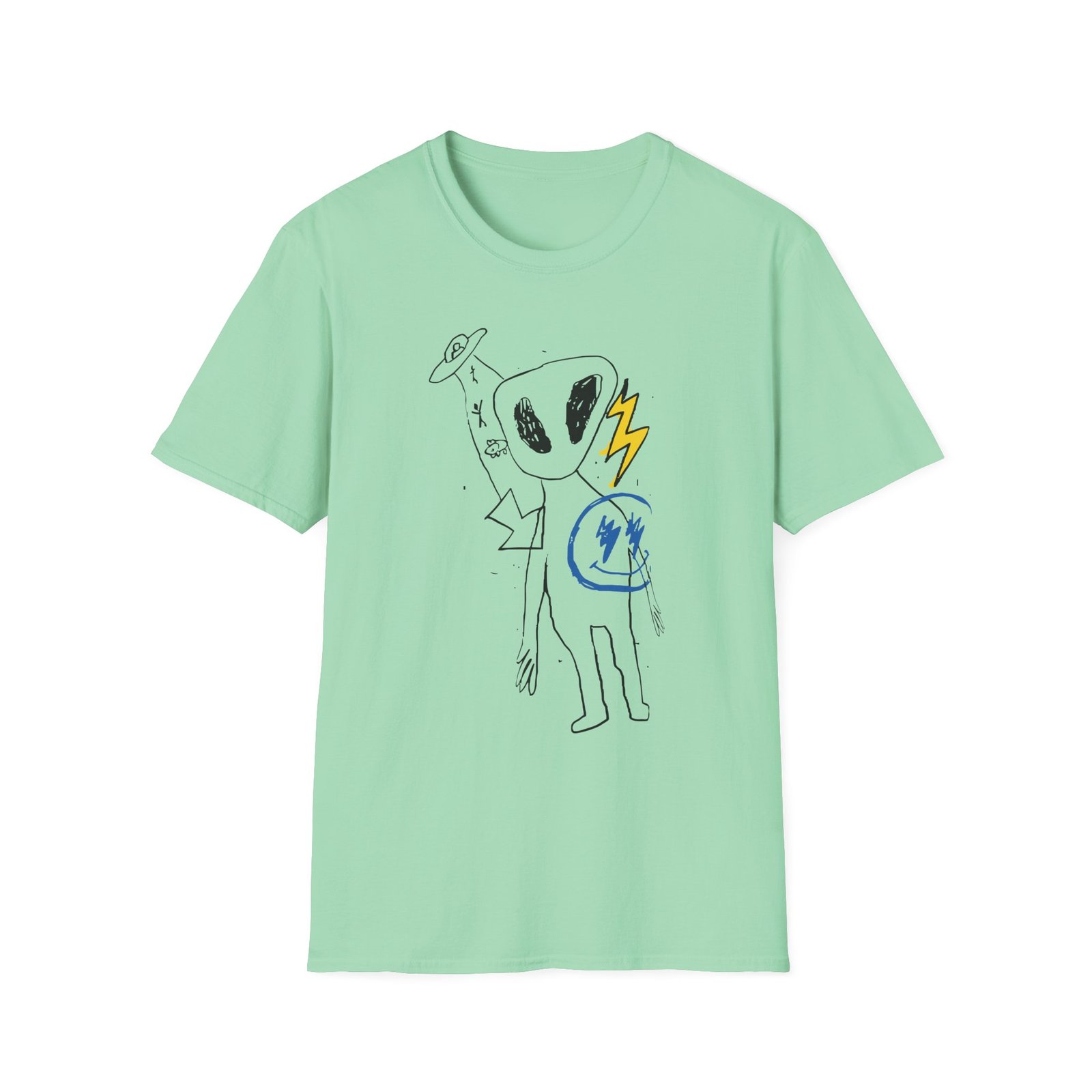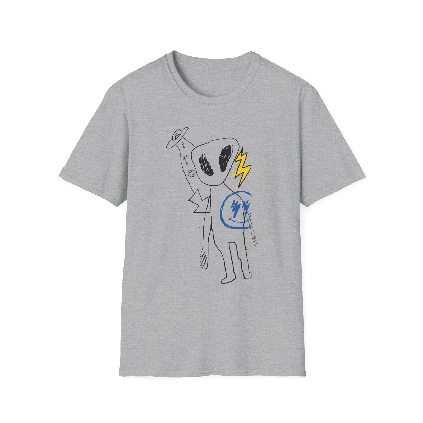 The J Balvin Alien Thunder unisex soft-style t-shirt puts a new spin on casual comfort. Made from very soft materials, this tee is 100% cotton for solid colors. Heather colors and sports grey include polyester. The shoulders have twill tape for improved durability. There are no side seams. The collar is made with ribbed knitting to prevent curling damage.