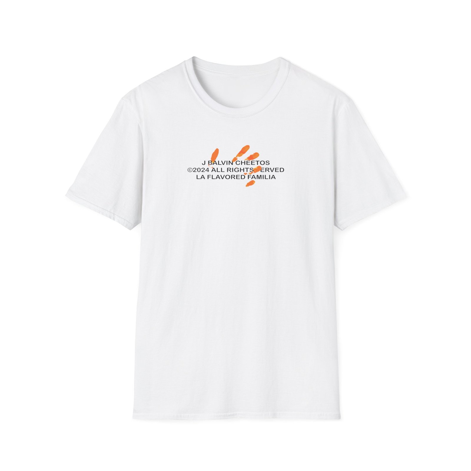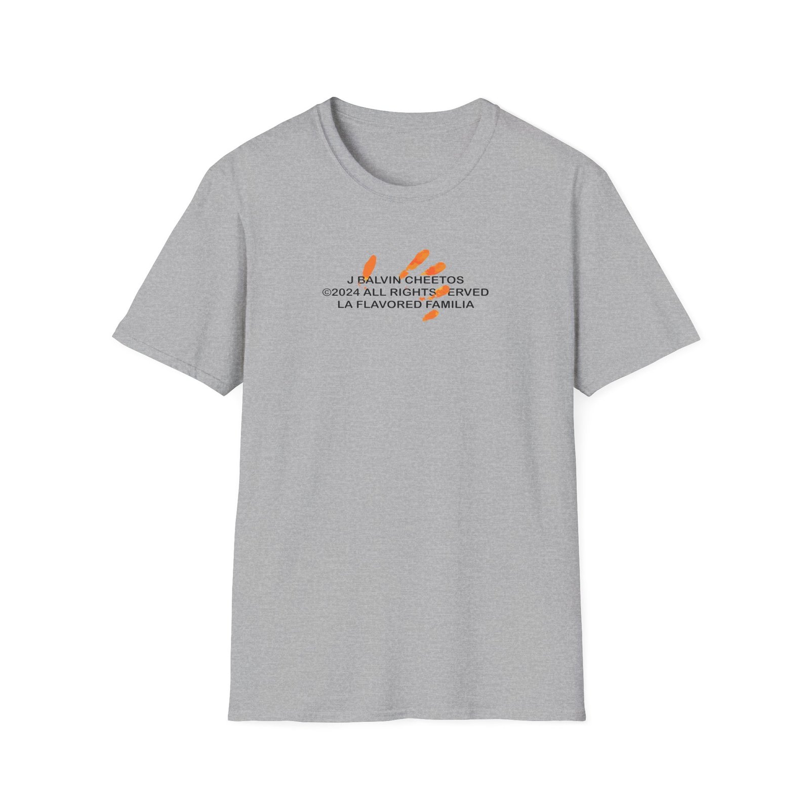 The J Balvin X Cheetos unisex soft-style t-shirt puts a new spin on casual comfort. Made from very soft materials, this tee is 100% cotton for solid colors. Heather colors and sports grey include polyester. The shoulders have twill tape for improved durability. There are no side seams. The collar is made with ribbed knitting to prevent curling damage.