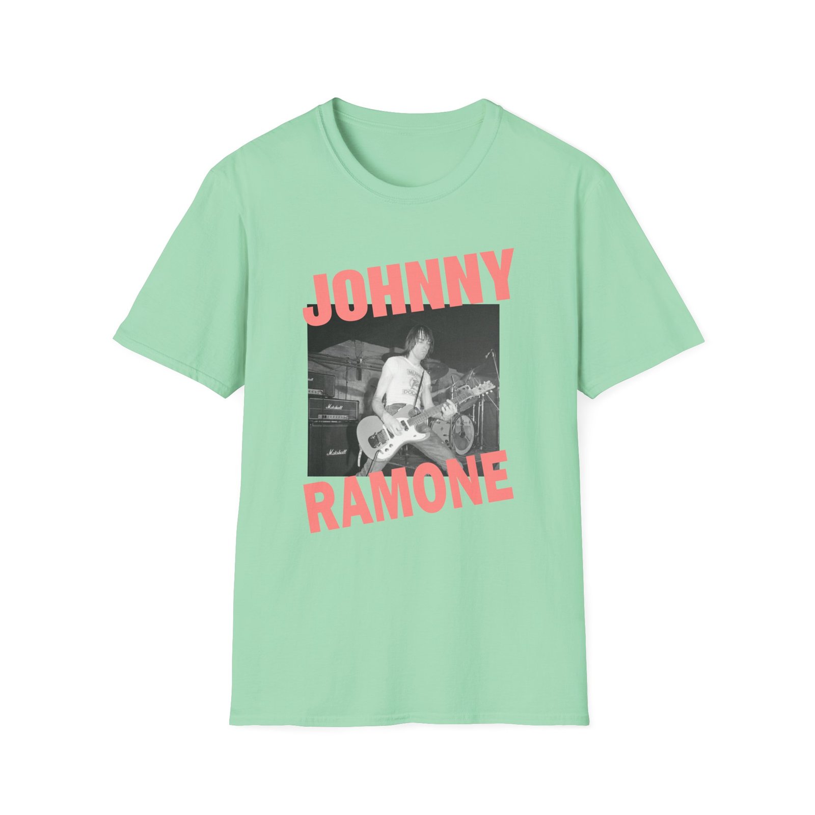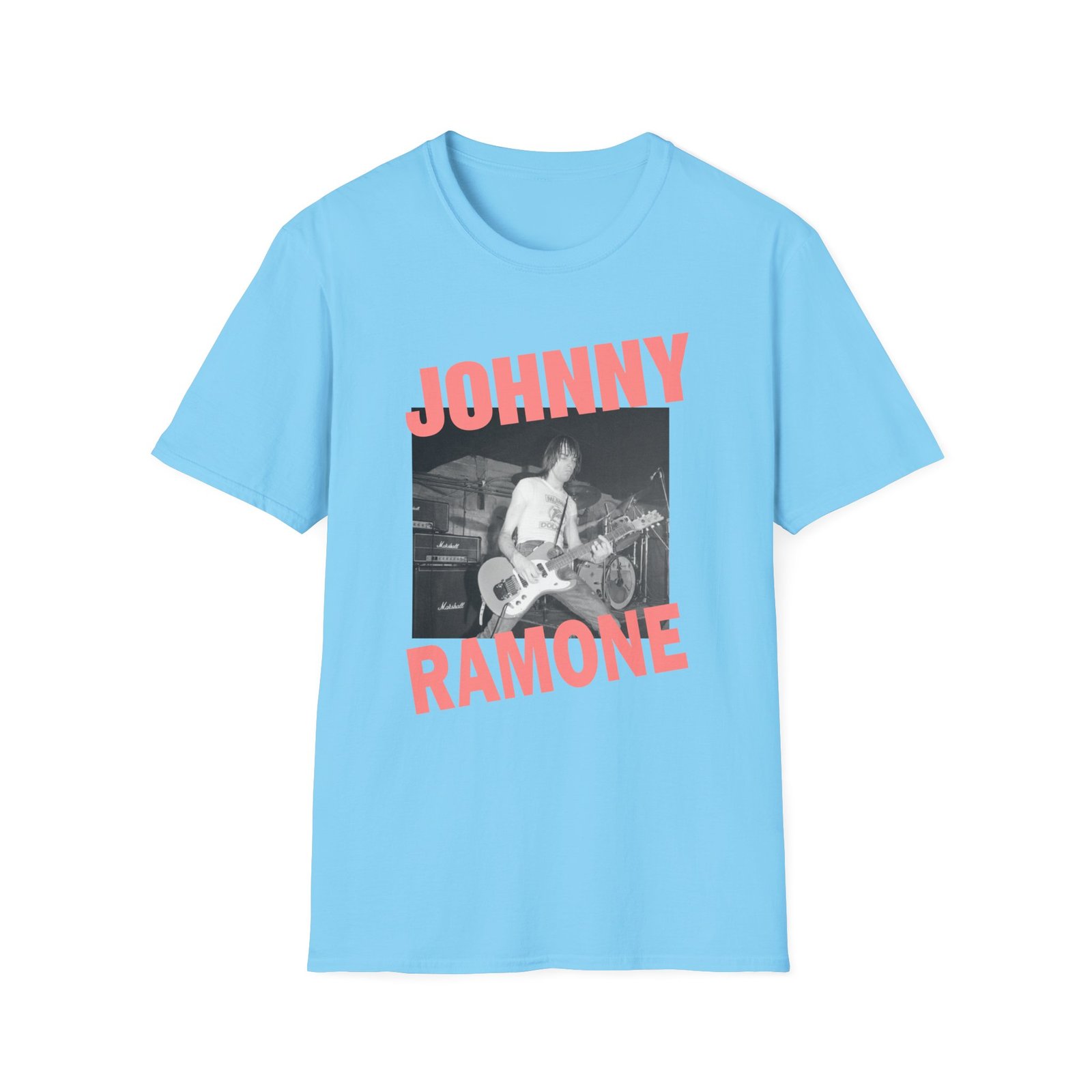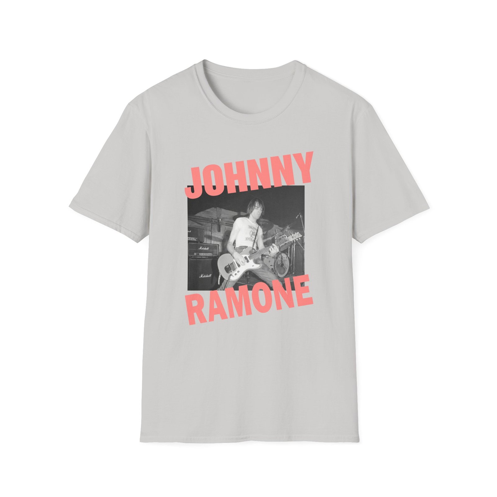 The Johnny Ramone Riff unisex soft-style t-shirt puts a new spin on casual comfort. Made from very soft materials, this tee is 100% cotton for solid colors. Heather colors and sports grey include polyester. The shoulders have twill tape for improved durability. There are no side seams. The collar is made with ribbed knitting to prevent curling damage.