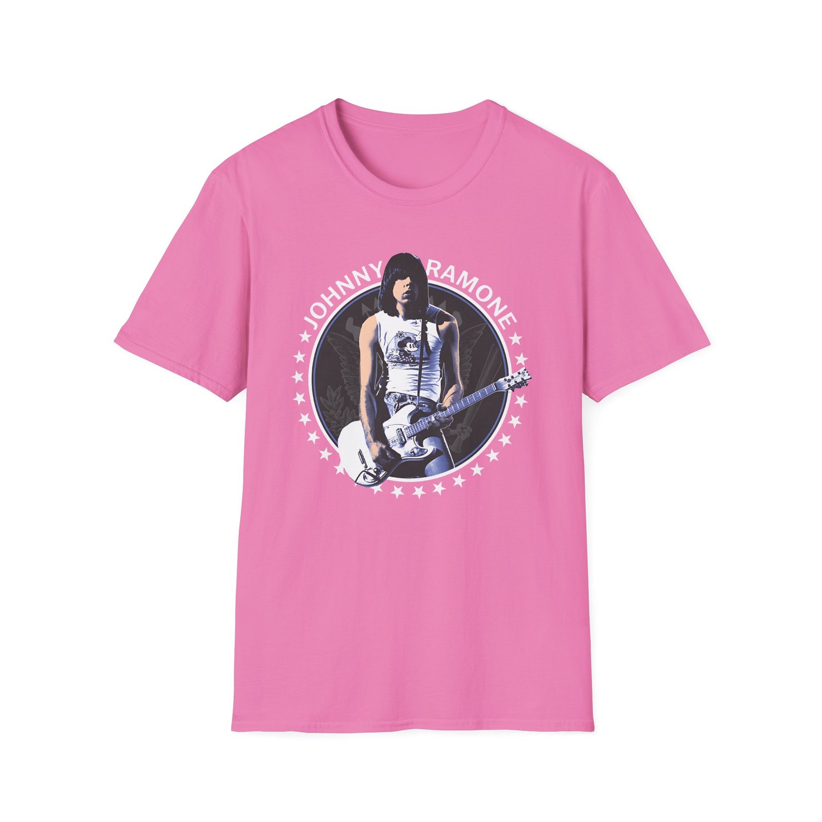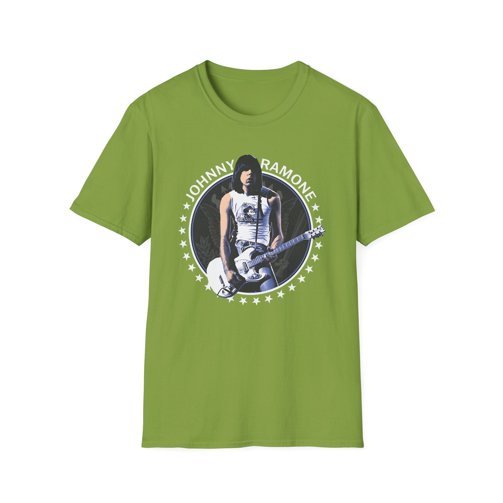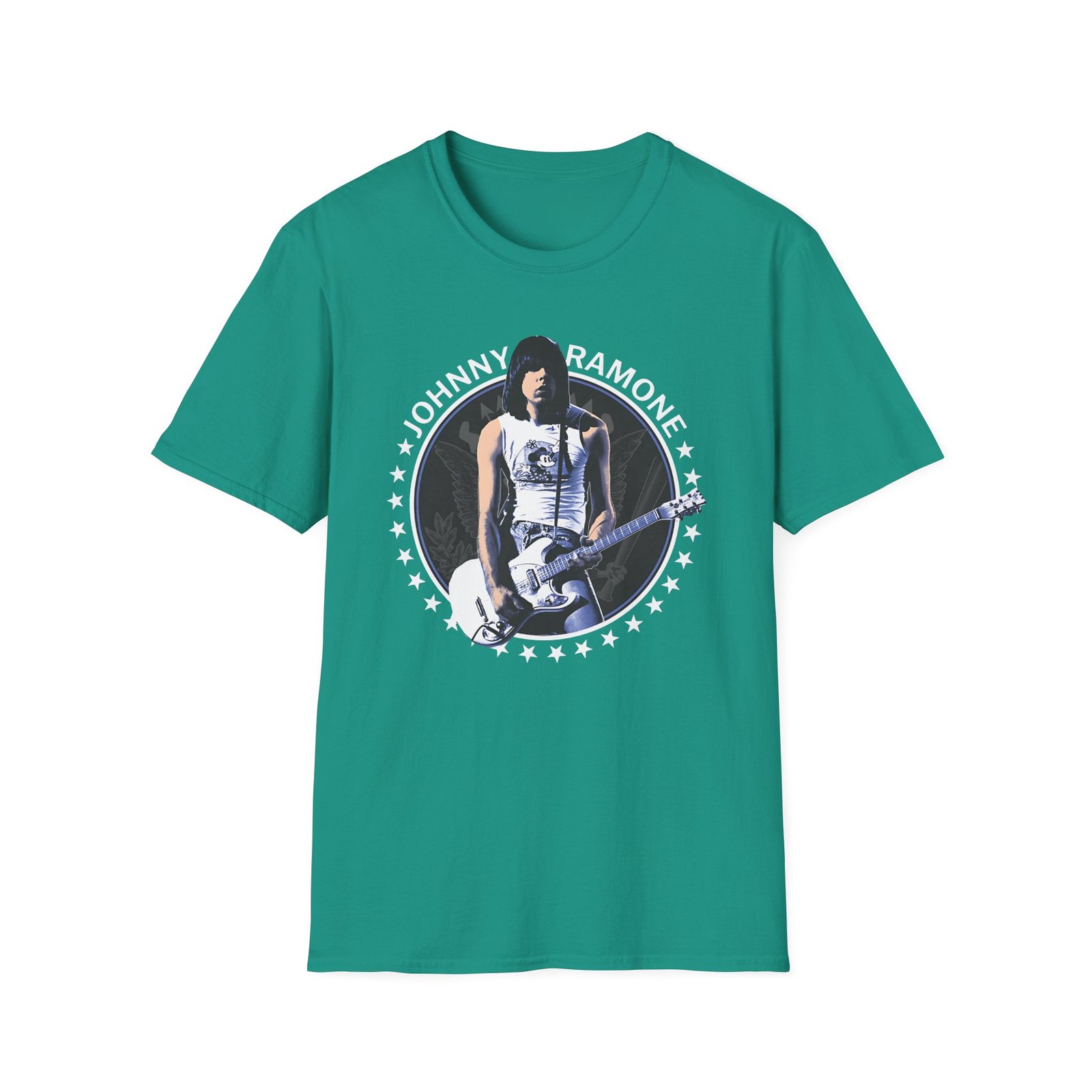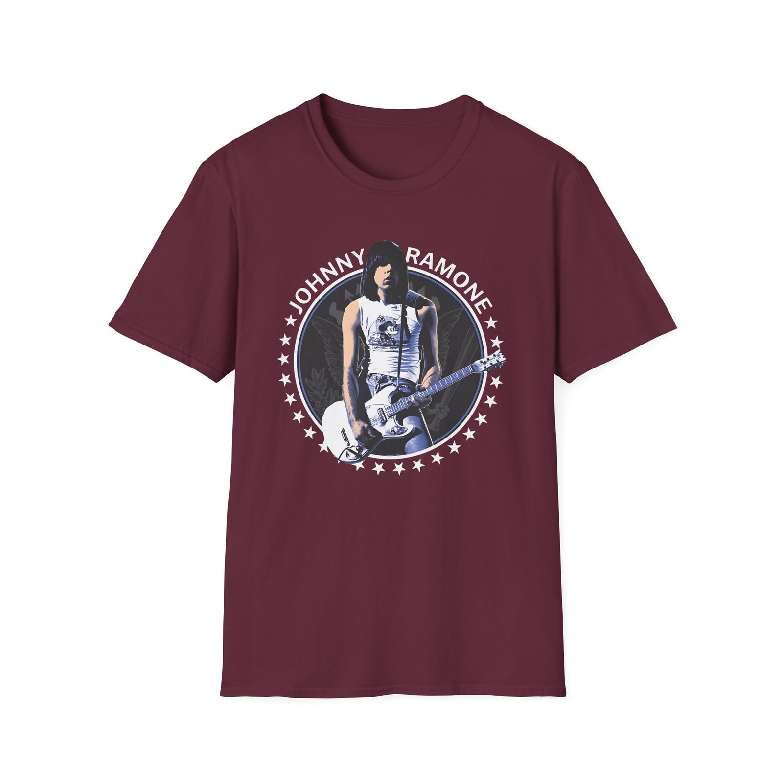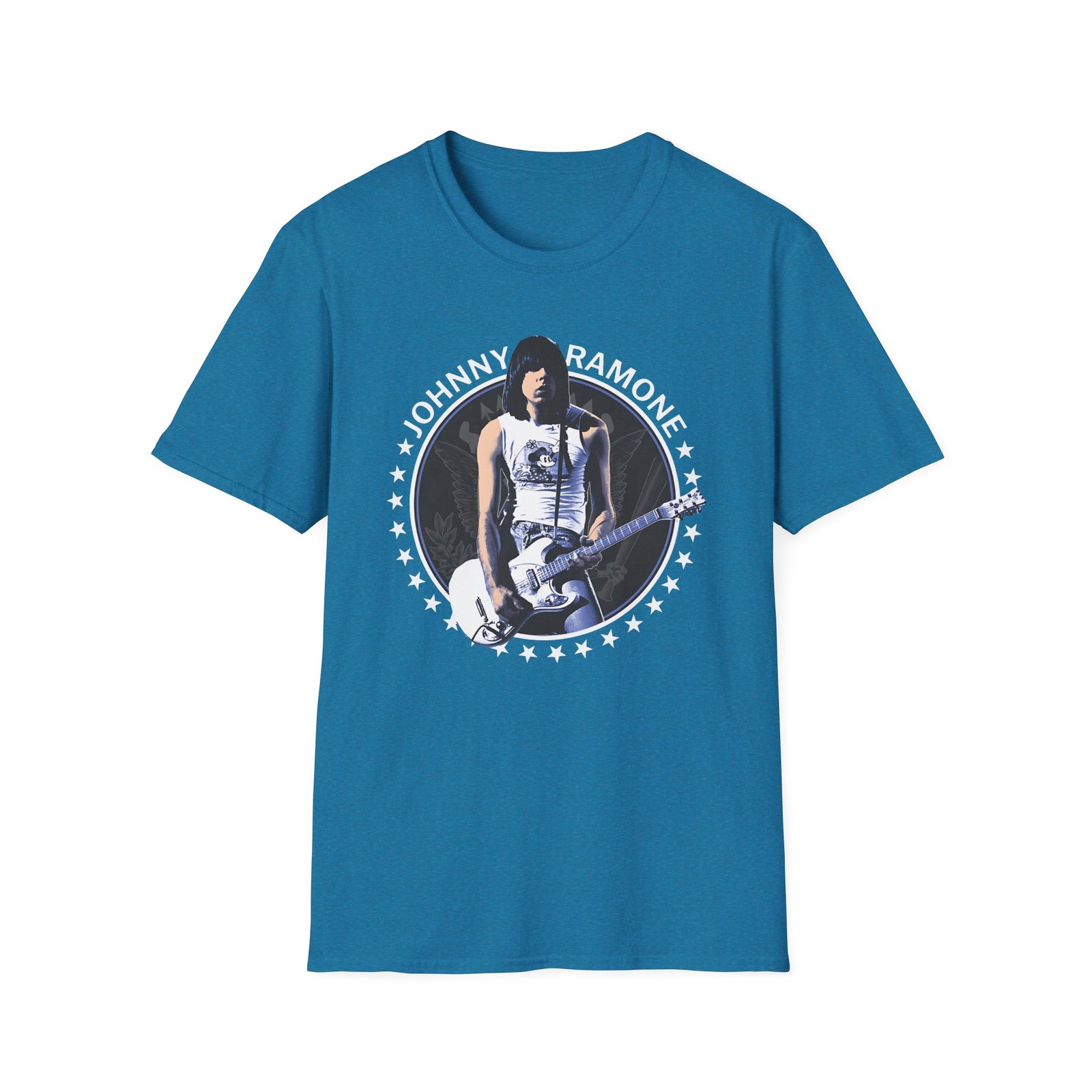The Johnny Ramone Seal unisex soft-style t-shirt puts a new spin on casual comfort. Made from very soft materials, this tee is 100% cotton for solid colors. Heather colors and sports grey include polyester. The shoulders have twill tape for improved durability. There are no side seams. The collar is made with ribbed knitting to prevent curling damage.