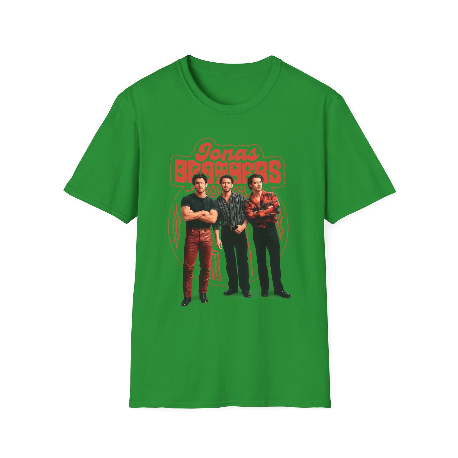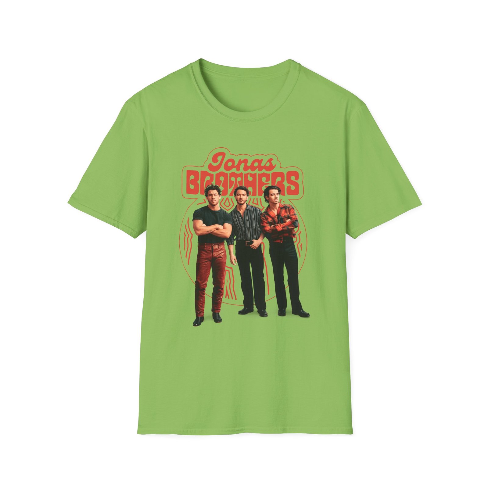 The Jonas Brothers unisex soft-style t-shirt puts a new spin on casual comfort. Made from very soft materials, this tee is 100% cotton for solid colors. Heather colors and sports grey include polyester. The shoulders have twill tape for improved durability. There are no side seams. The collar is made with ribbed knitting to prevent curling damage.