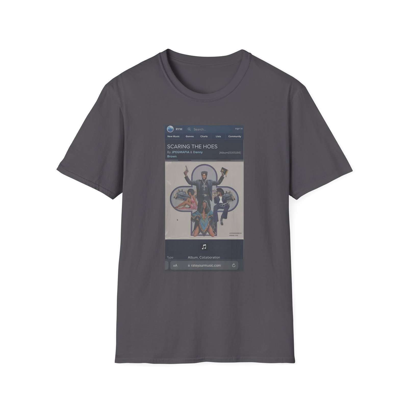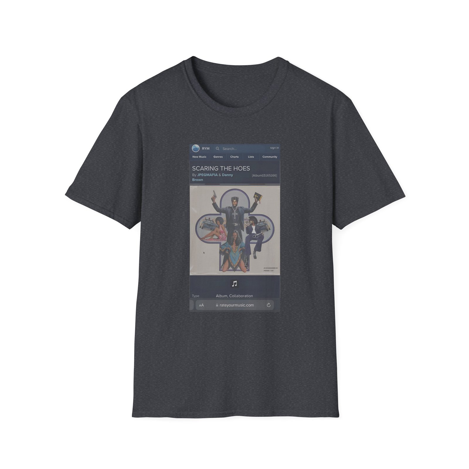 The Jpegmafia RYM Hoes Unisex Softstyle T-Shirt puts a new spin on casual comfort. Made from very soft materials, this tee is 100% cotton for solid colors. Heather colors and sports grey include polyester. The shoulders have twill tape for improved durability. There are no side seams. The collar is made with ribbed knitting to prevent curling damage.
