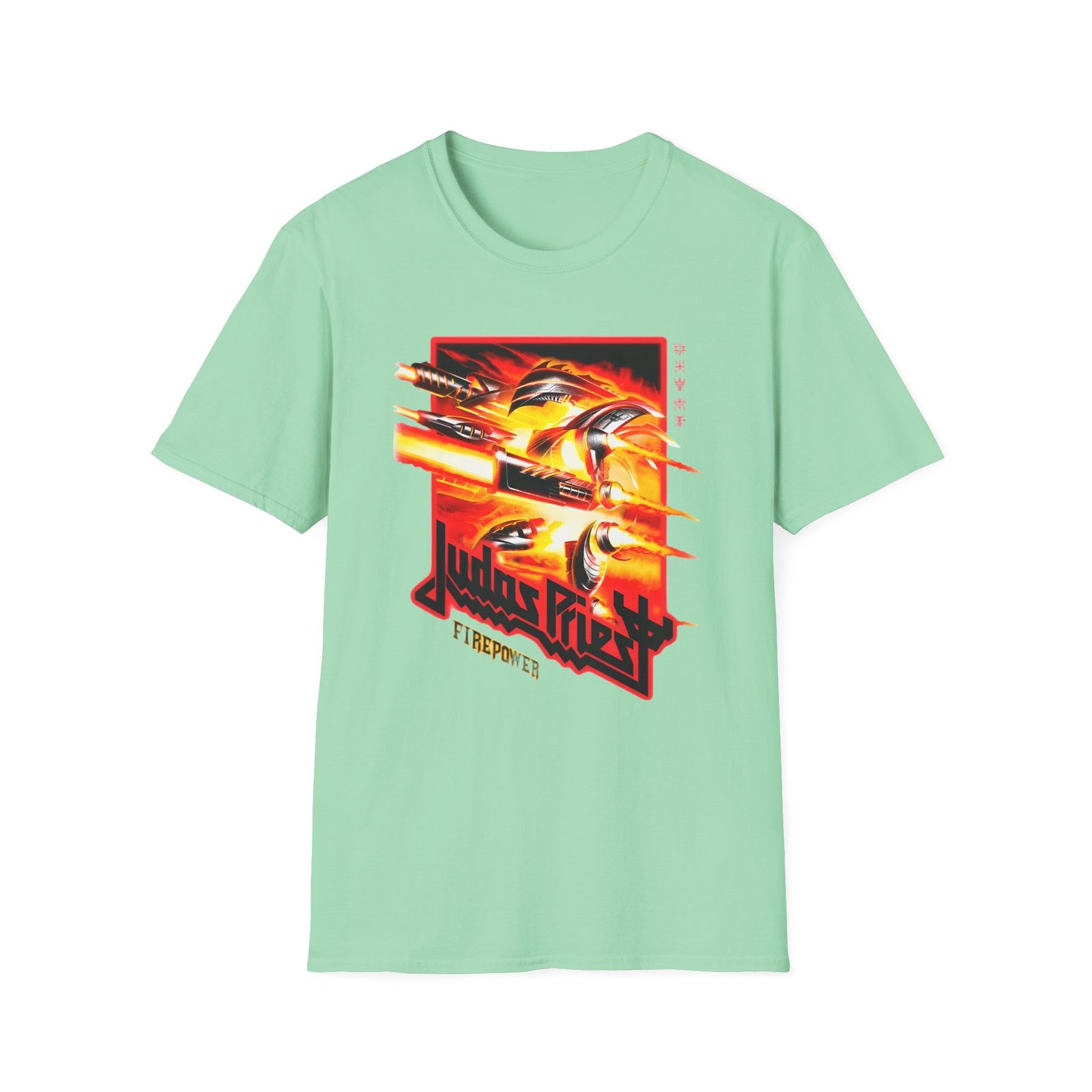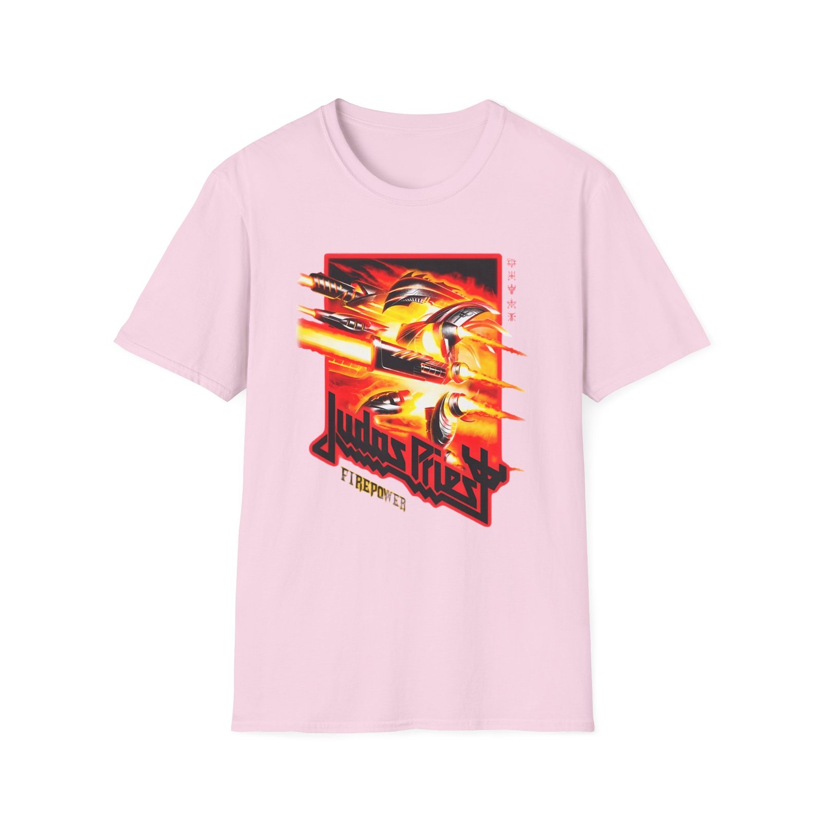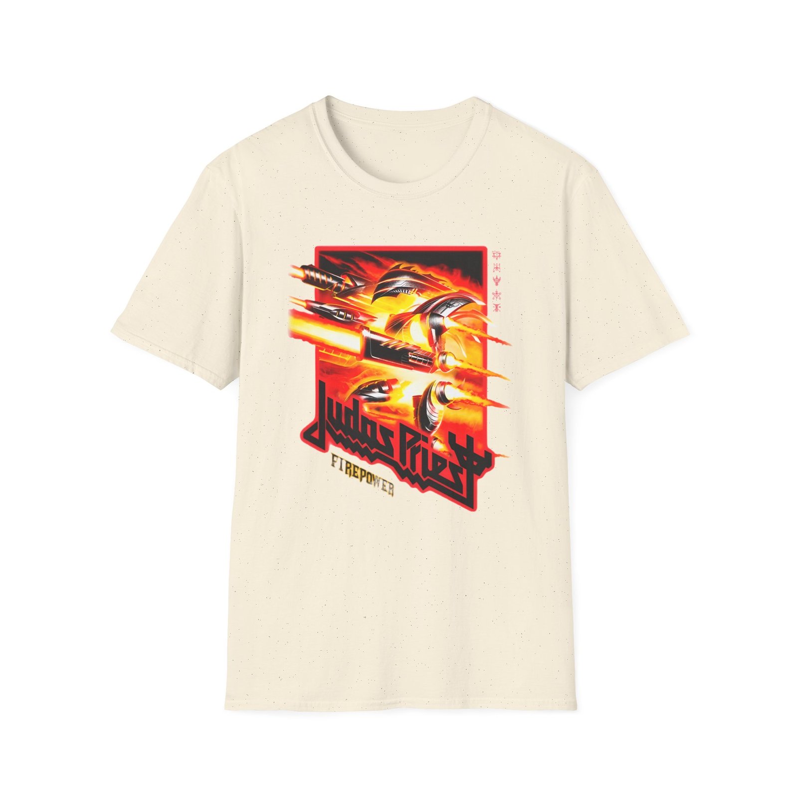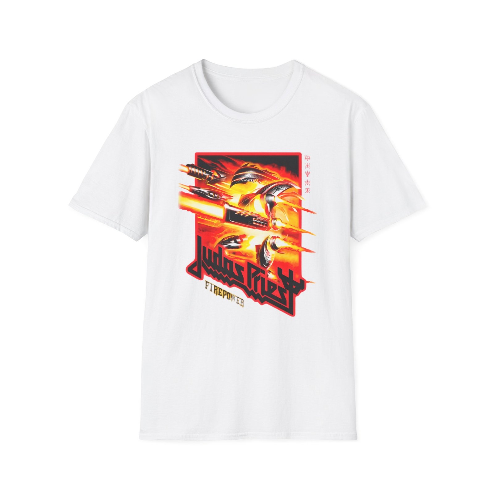 The Judas Priest Firepower Figures unisex soft-style t-shirt puts a new spin on casual comfort. Made from very soft materials, this tee is 100% cotton for solid colors. Heather colors and sports grey include polyester. The shoulders have twill tape for improved durability. There are no side seams. The collar is made with ribbed knitting to prevent curling damage.