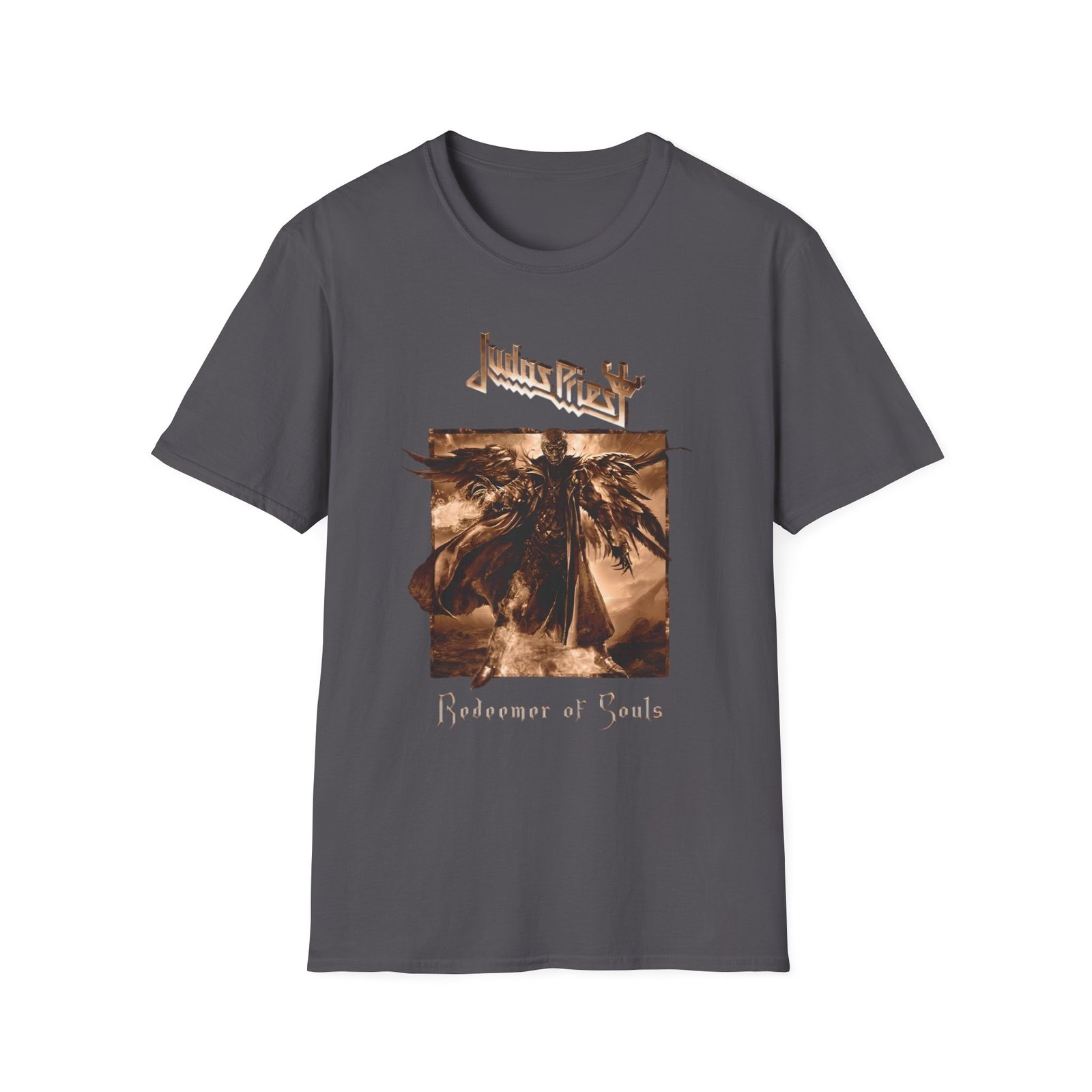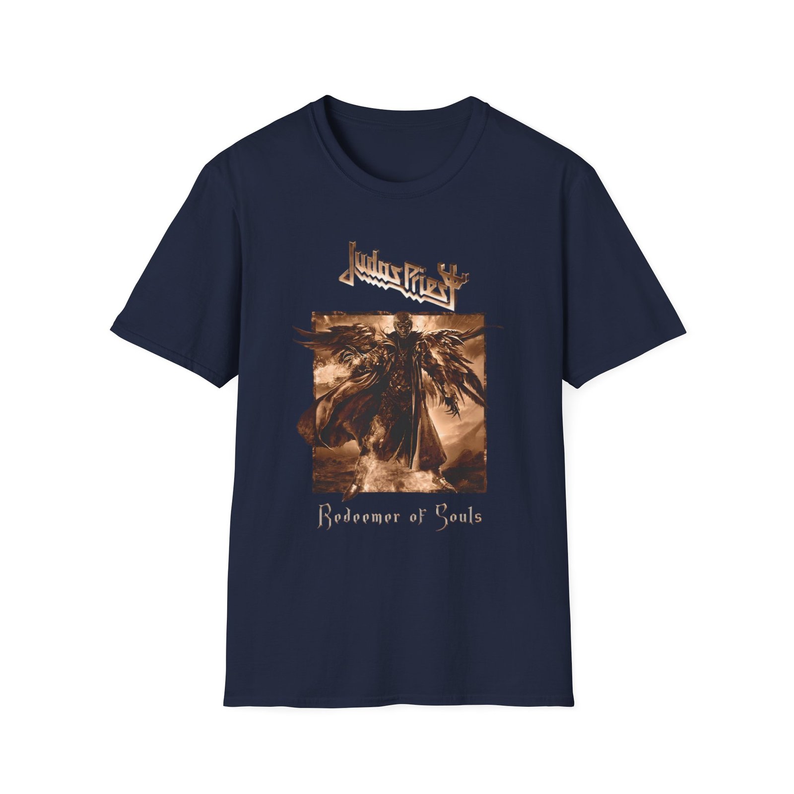 The Judas Priest Redeemer of Souls Album Square unisex soft-style t-shirt puts a new spin on casual comfort. Made from very soft materials, this tee is 100% cotton for solid colors. Heather colors and sports grey include polyester. The shoulders have twill tape for improved durability. There are no side seams. The collar is made with ribbed knitting to prevent curling damage.
