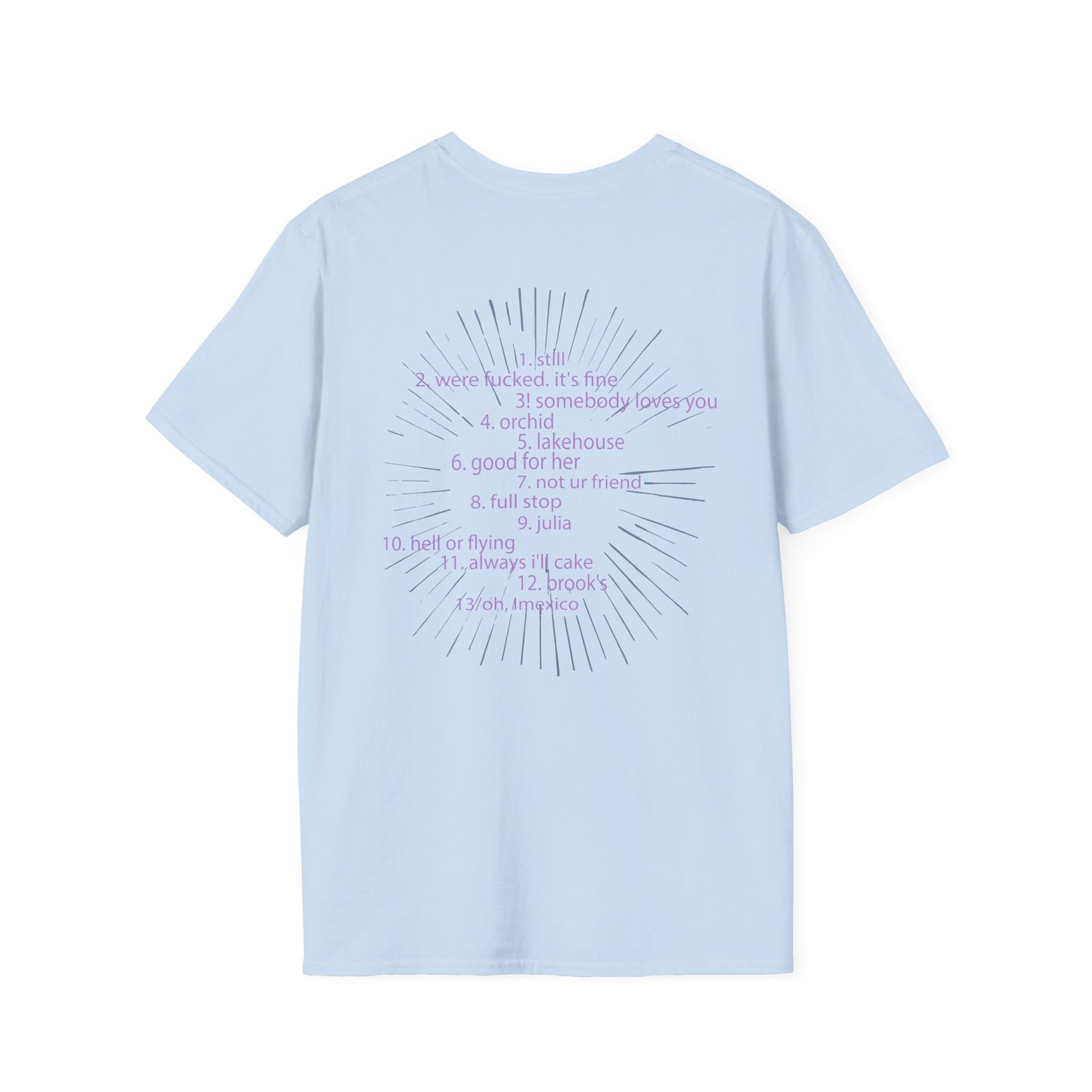 The JZ Lind Starry Night unisex soft-style t-shirt puts a new spin on casual comfort. Made from very soft materials, this tee is 100% cotton for solid colors. Heather colors and sports grey include polyester. The shoulders have twill tape for improved durability. There are no side seams. The collar is made with ribbed knitting to prevent curling damage.