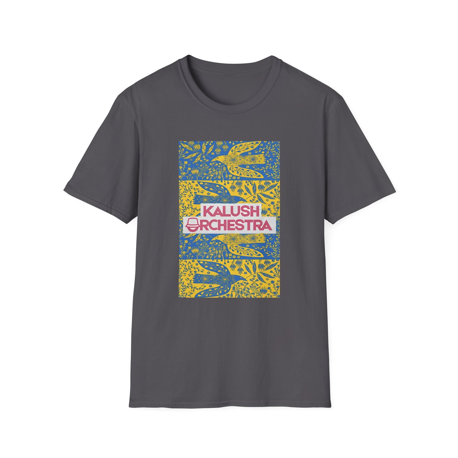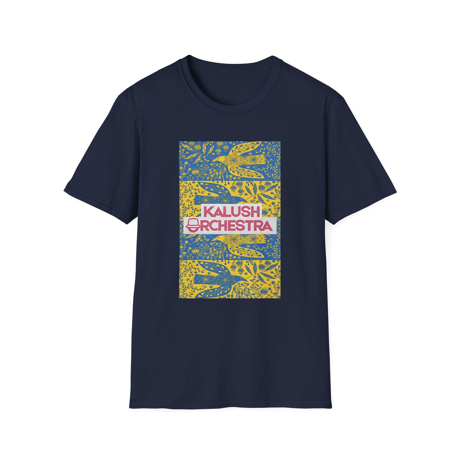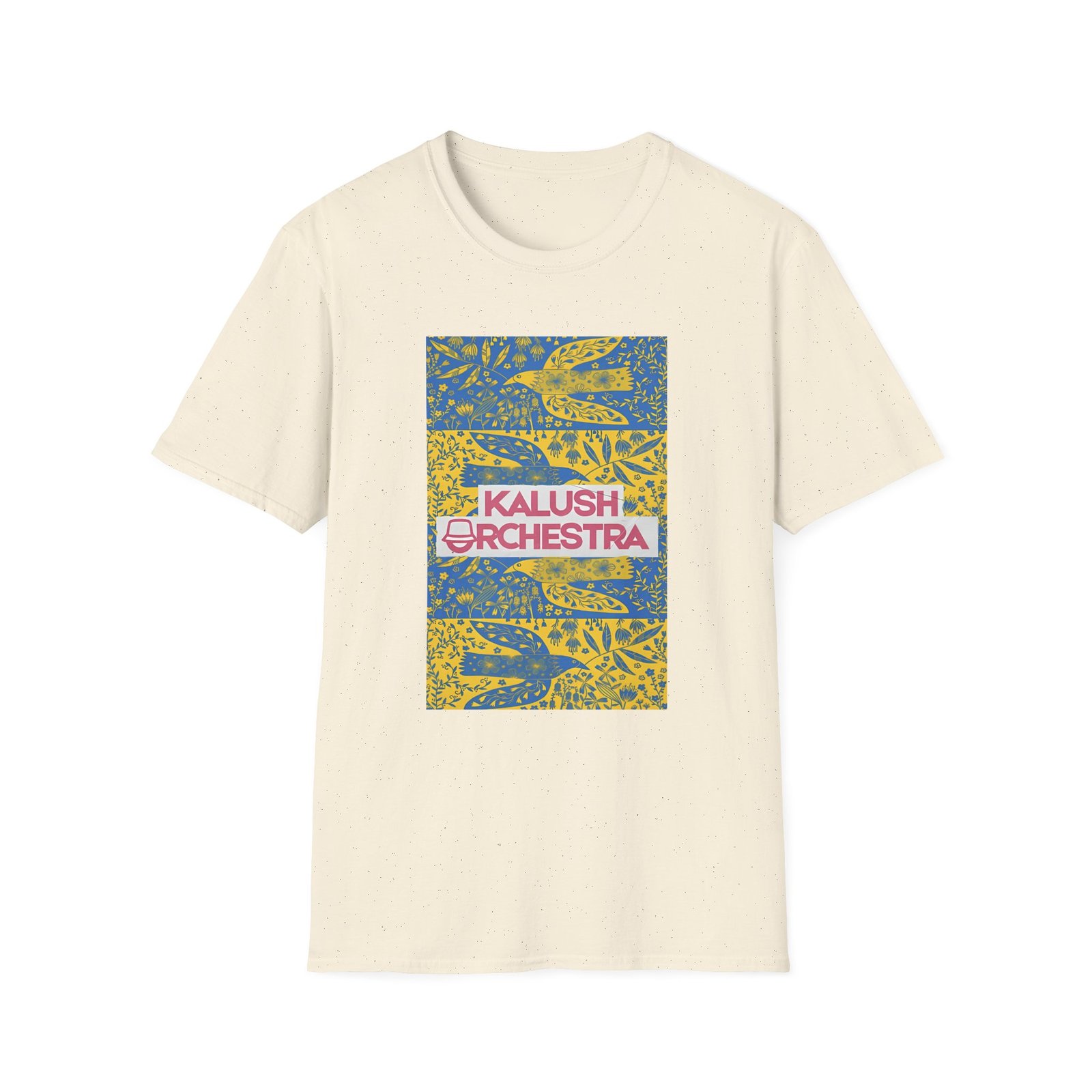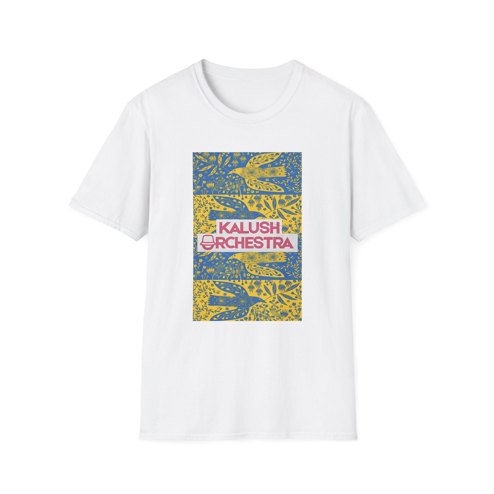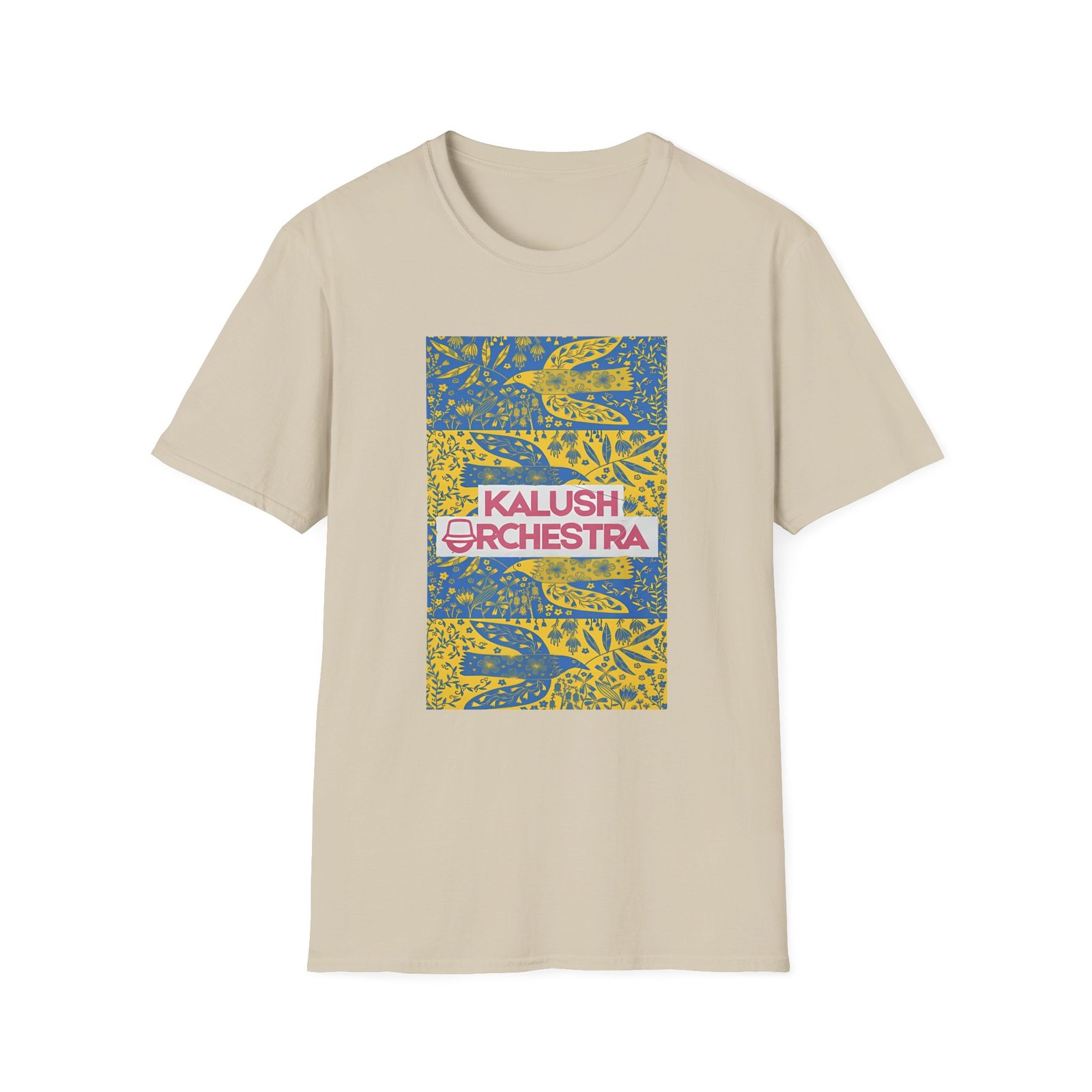 The Kalush Orchestra unisex soft-style t-shirt puts a new spin on casual comfort. Made from very soft materials, this tee is 100% cotton for solid colors. Heather colors and sports grey include polyester. The shoulders have twill tape for improved durability. There are no side seams. The collar is made with ribbed knitting to prevent curling damage.