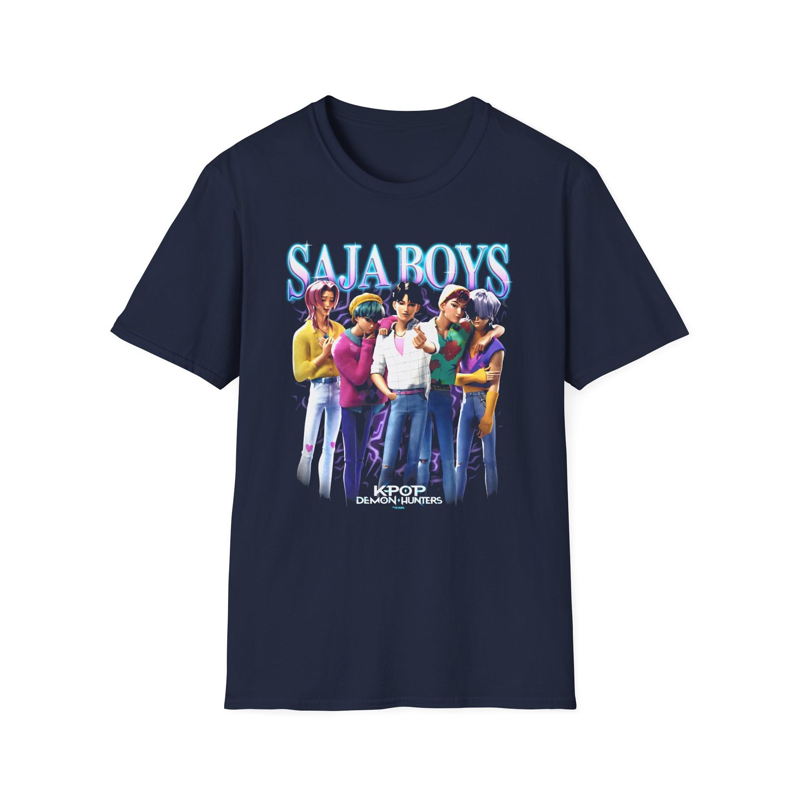 The Kpop Demon Hunters Saja Boys Unisex Softstyle T-Shirt puts a new spin on casual comfort. Made from very soft materials, this tee is 100% cotton for solid colors. Heather colors and sports grey include polyester. The shoulders have twill tape for improved durability. There are no side seams. The collar is made with ribbed knitting to prevent curling damage.