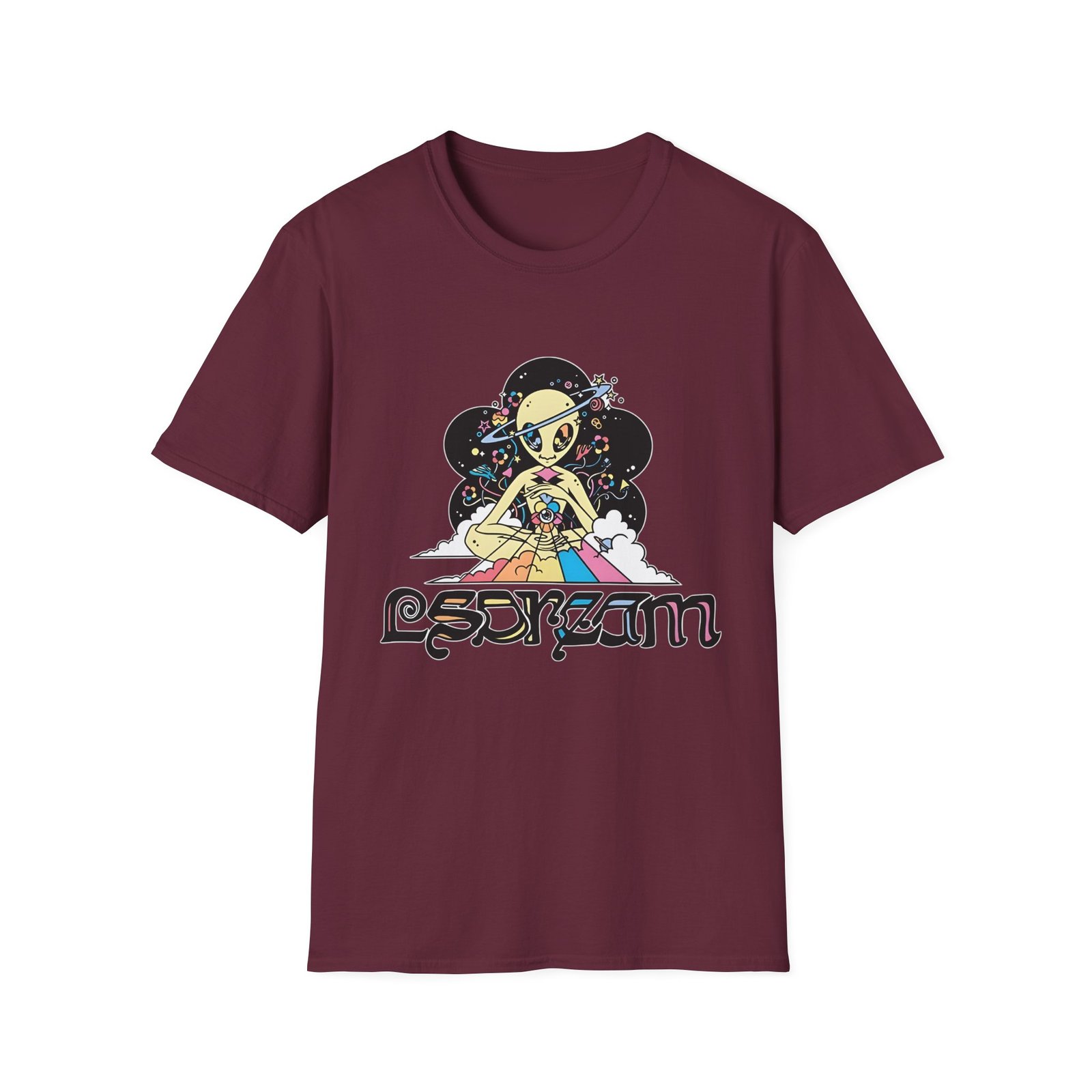 The LSDREAM Cosmic Love unisex soft-style t-shirt puts a new spin on casual comfort. Made from very soft materials, this tee is 100% cotton for solid colors. Heather colors and sports grey include polyester. The shoulders have twill tape for improved durability. There are no side seams. The collar is made with ribbed knitting to prevent curling damage.