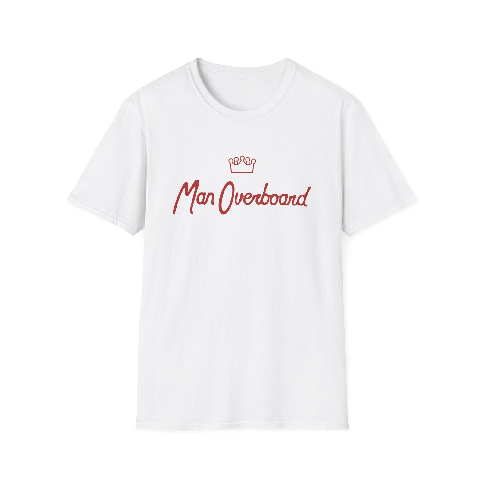 The Man Overboard Crown unisex soft-style t-shirt puts a new spin on casual comfort. Made from very soft materials, this tee is 100% cotton for solid colors. Heather colors and sports grey include polyester. The shoulders have twill tape for improved durability. There are no side seams. The collar is made with ribbed knitting to prevent curling damage.