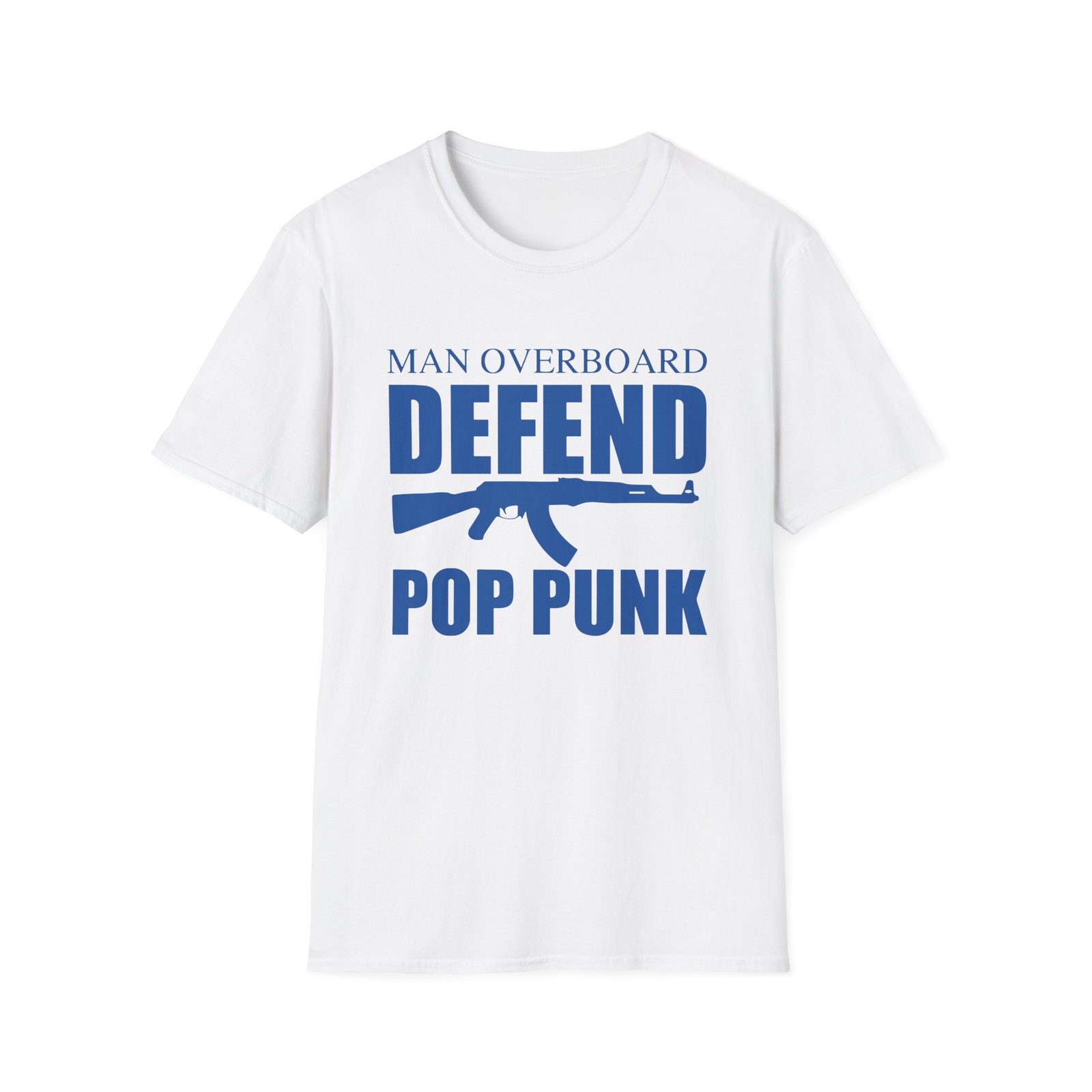 The Man Overboard Defend Pop Punk unisex soft-style t-shirt puts a new spin on casual comfort. Made from very soft materials, this tee is 100% cotton for solid colors. Heather colors and sports grey include polyester. The shoulders have twill tape for improved durability. There are no side seams. The collar is made with ribbed knitting to prevent curling damage.