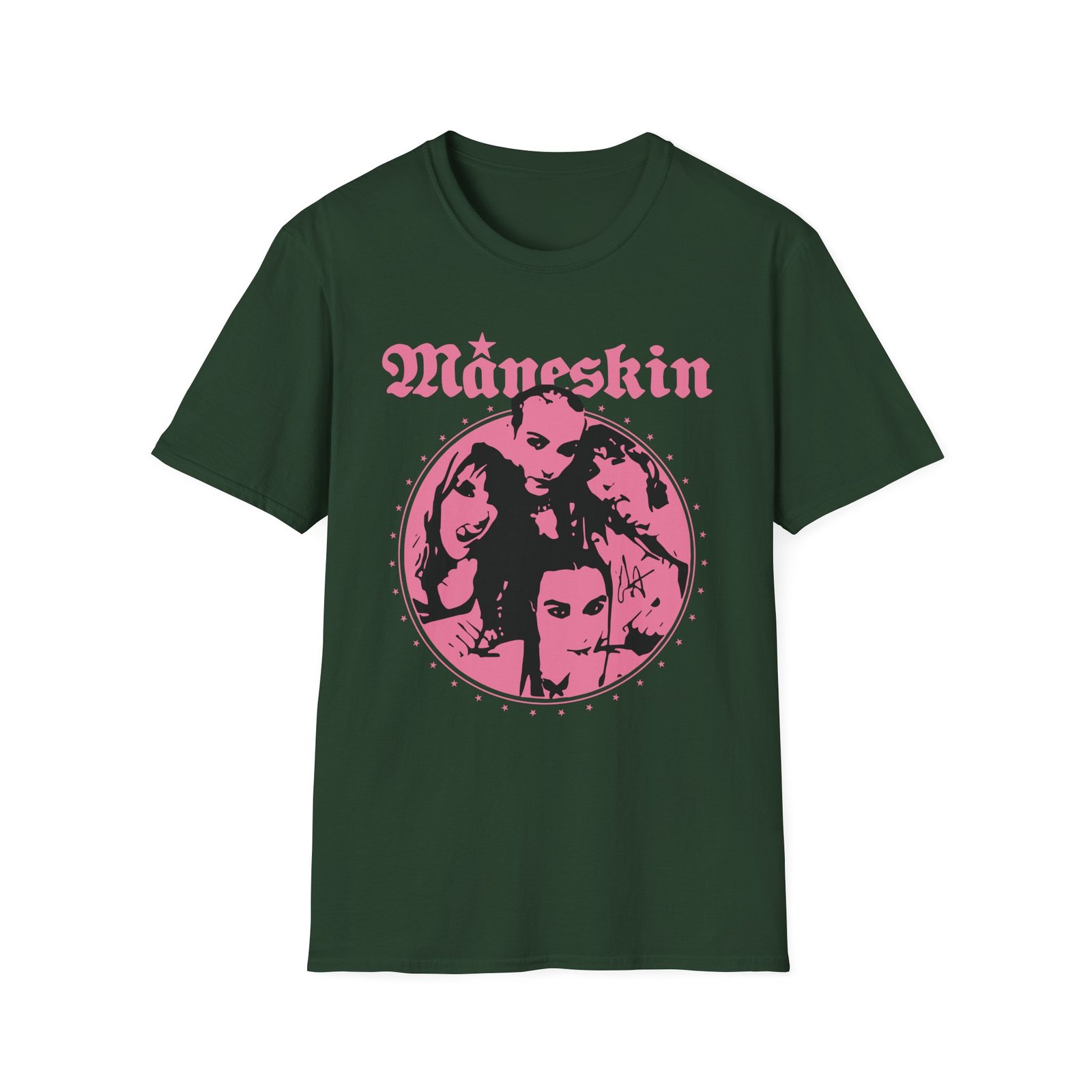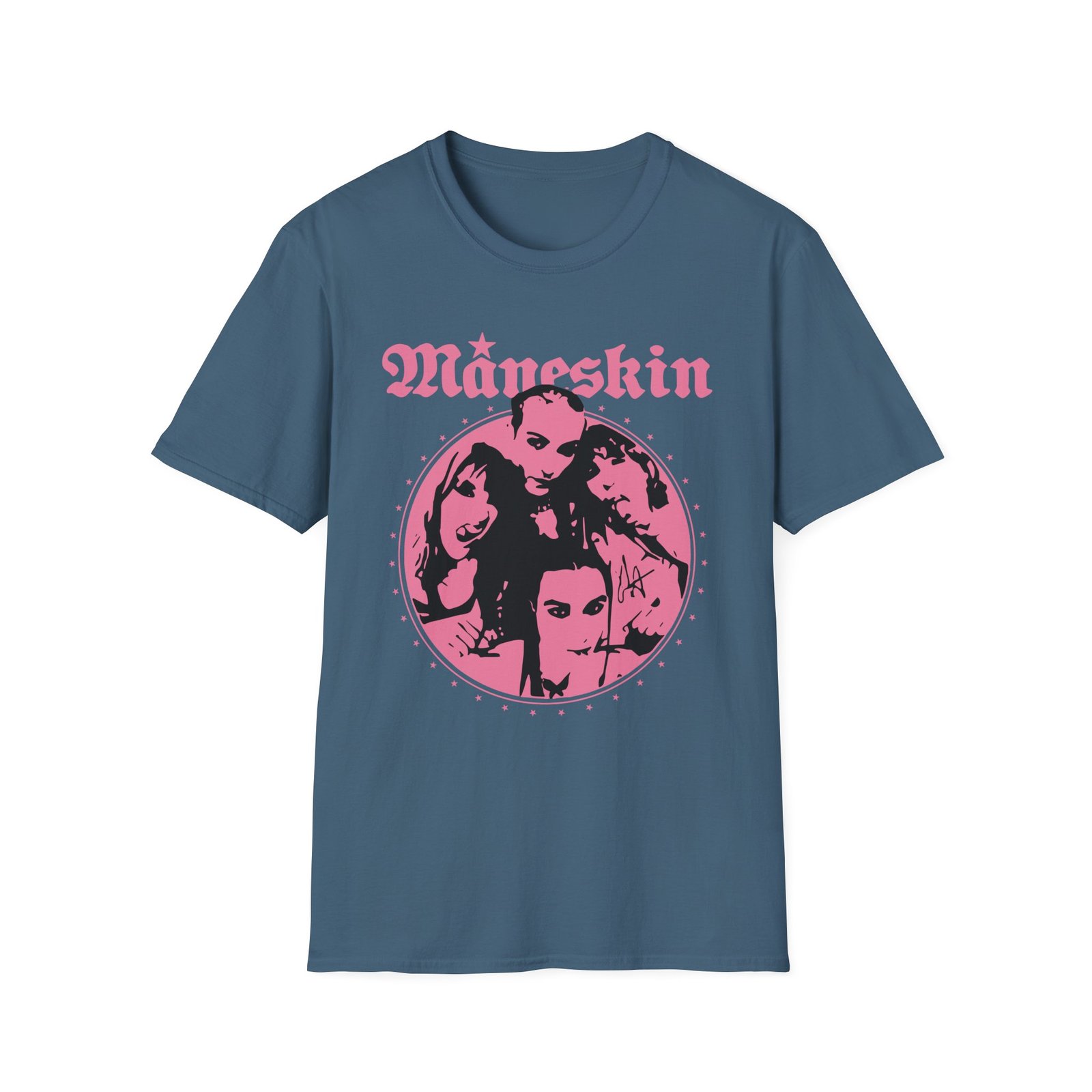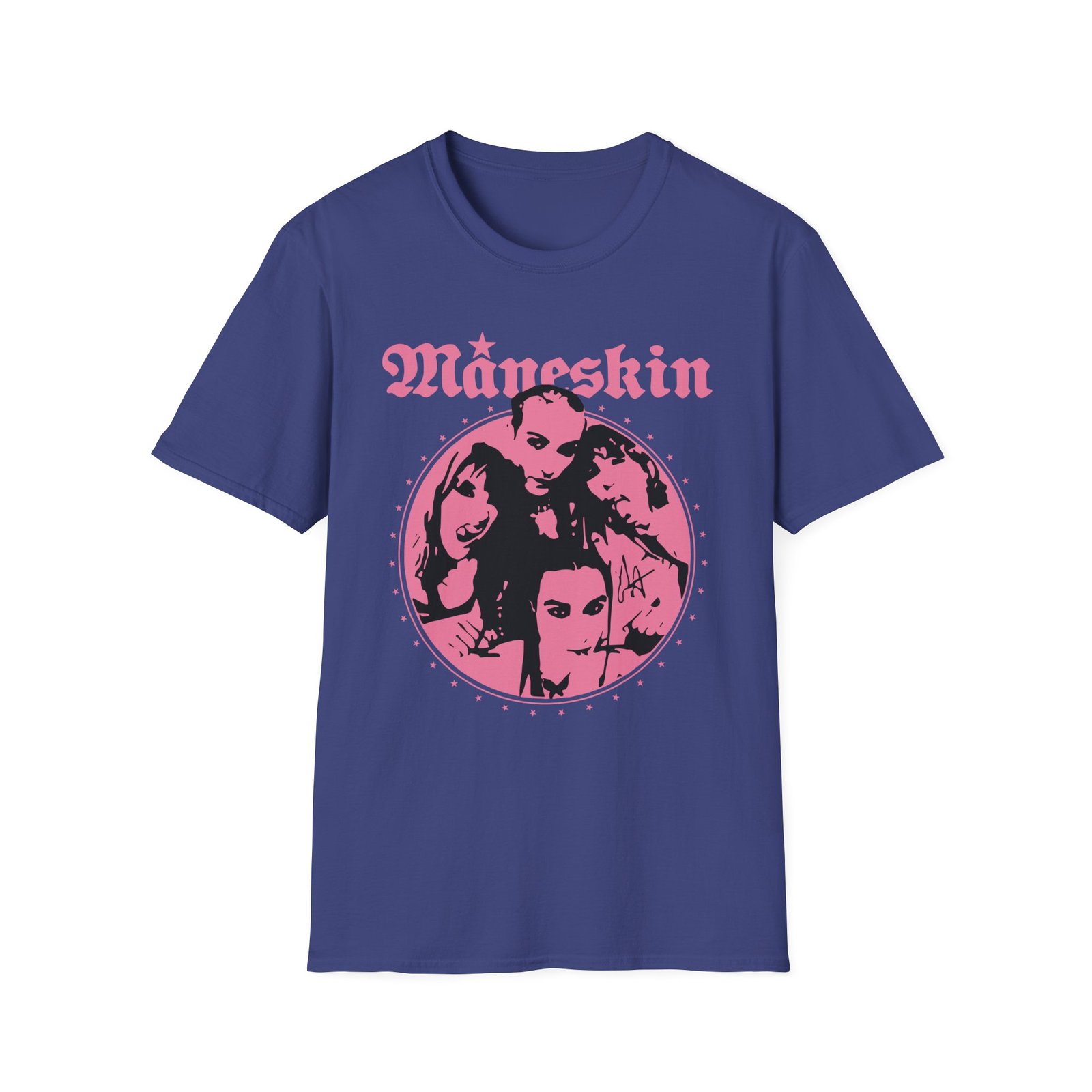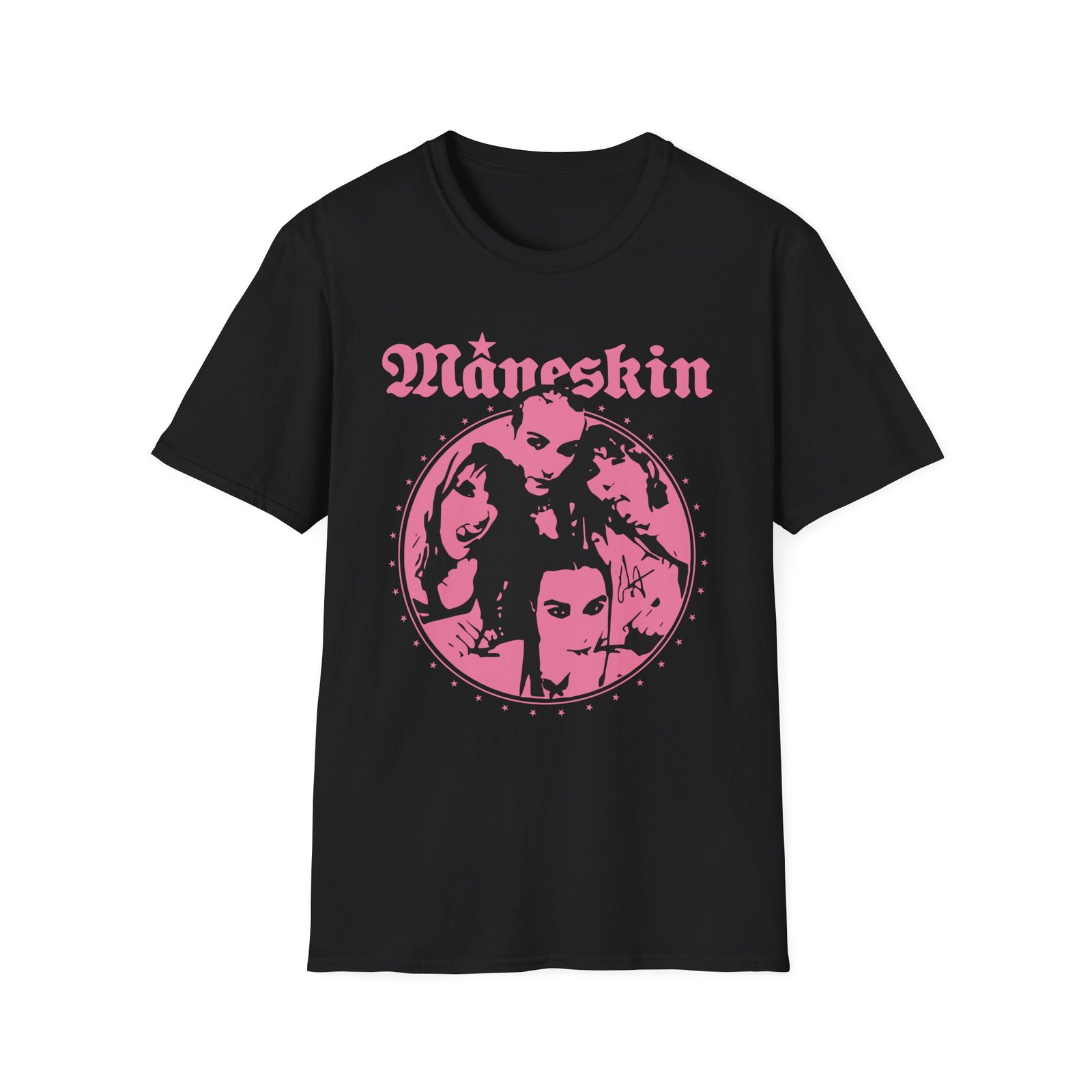 The Maneskin Pink Fisheye Band unisex soft-style t-shirt puts a new spin on casual comfort. Made from very soft materials, this tee is 100% cotton for solid colors. Heather colors and sports grey include polyester. The shoulders have twill tape for improved durability. There are no side seams. The collar is made with ribbed knitting to prevent curling damage.