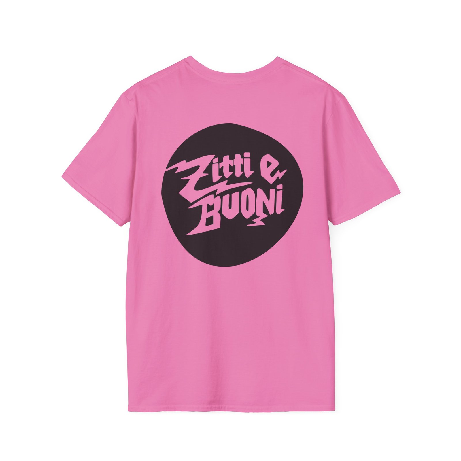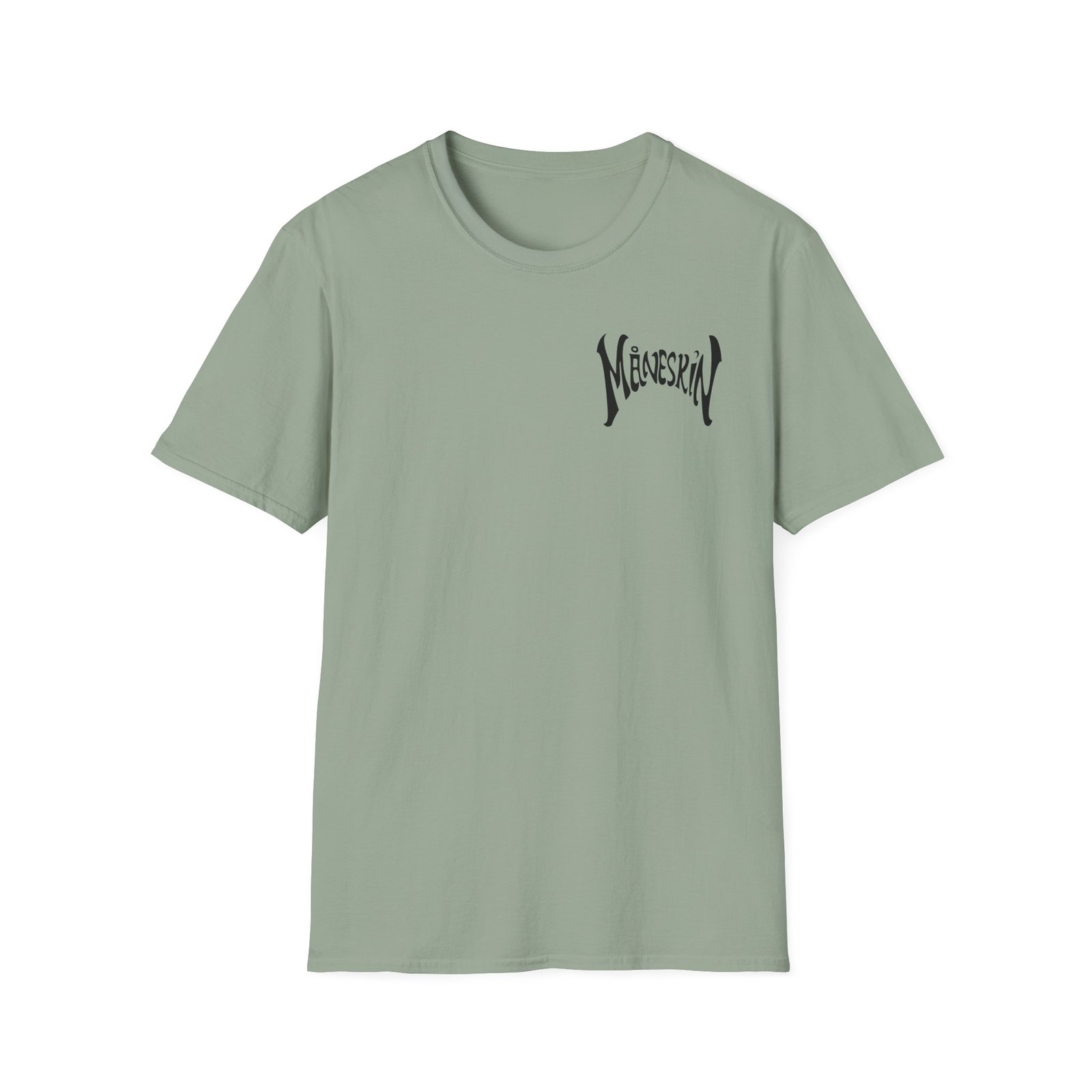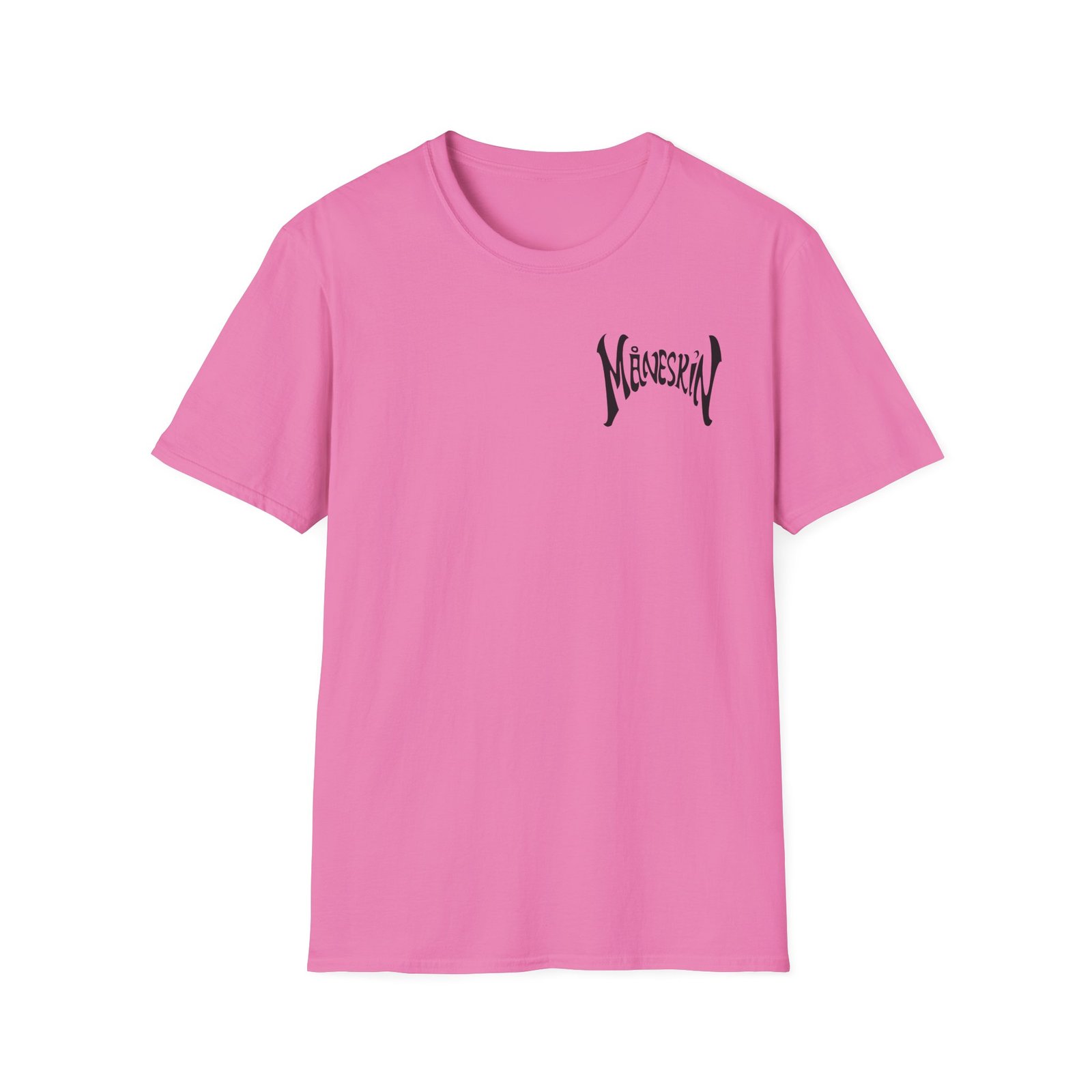 The Maneskin Pocket Logo & Zitti e Buoni Circle unisex soft-style t-shirt puts a new spin on casual comfort. Made from very soft materials, this tee is 100% cotton for solid colors. Heather colors and sports grey include polyester. The shoulders have twill tape for improved durability. There are no side seams. The collar is made with ribbed knitting to prevent curling damage.