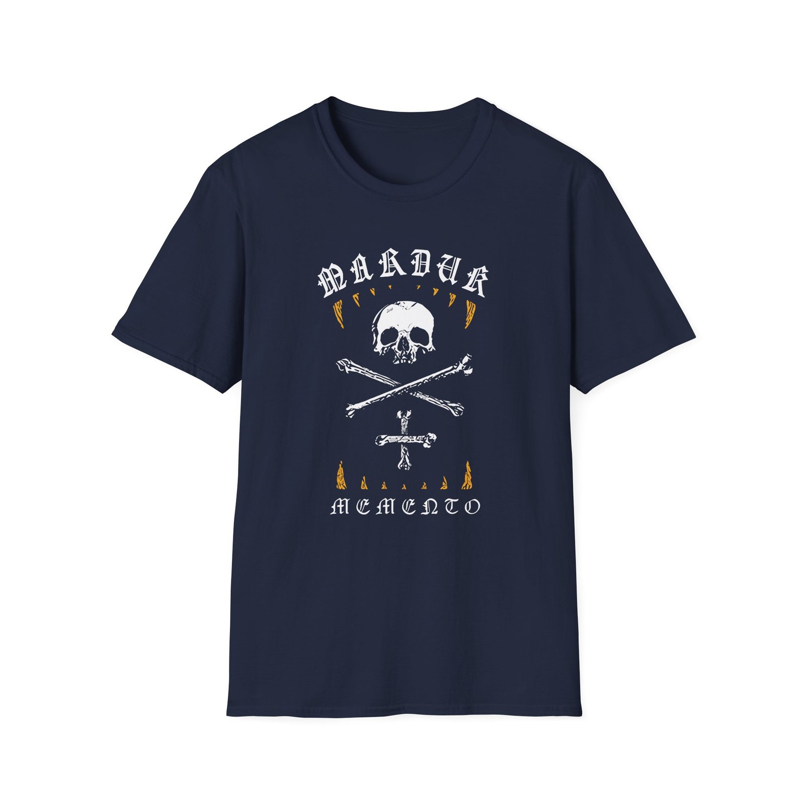 The Marduk Memento Mori unisex soft-style t-shirt puts a new spin on casual comfort. Made from very soft materials, this tee is 100% cotton for solid colors. Heather colors and sports grey include polyester. The shoulders have twill tape for improved durability. There are no side seams. The collar is made with ribbed knitting to prevent curling damage.