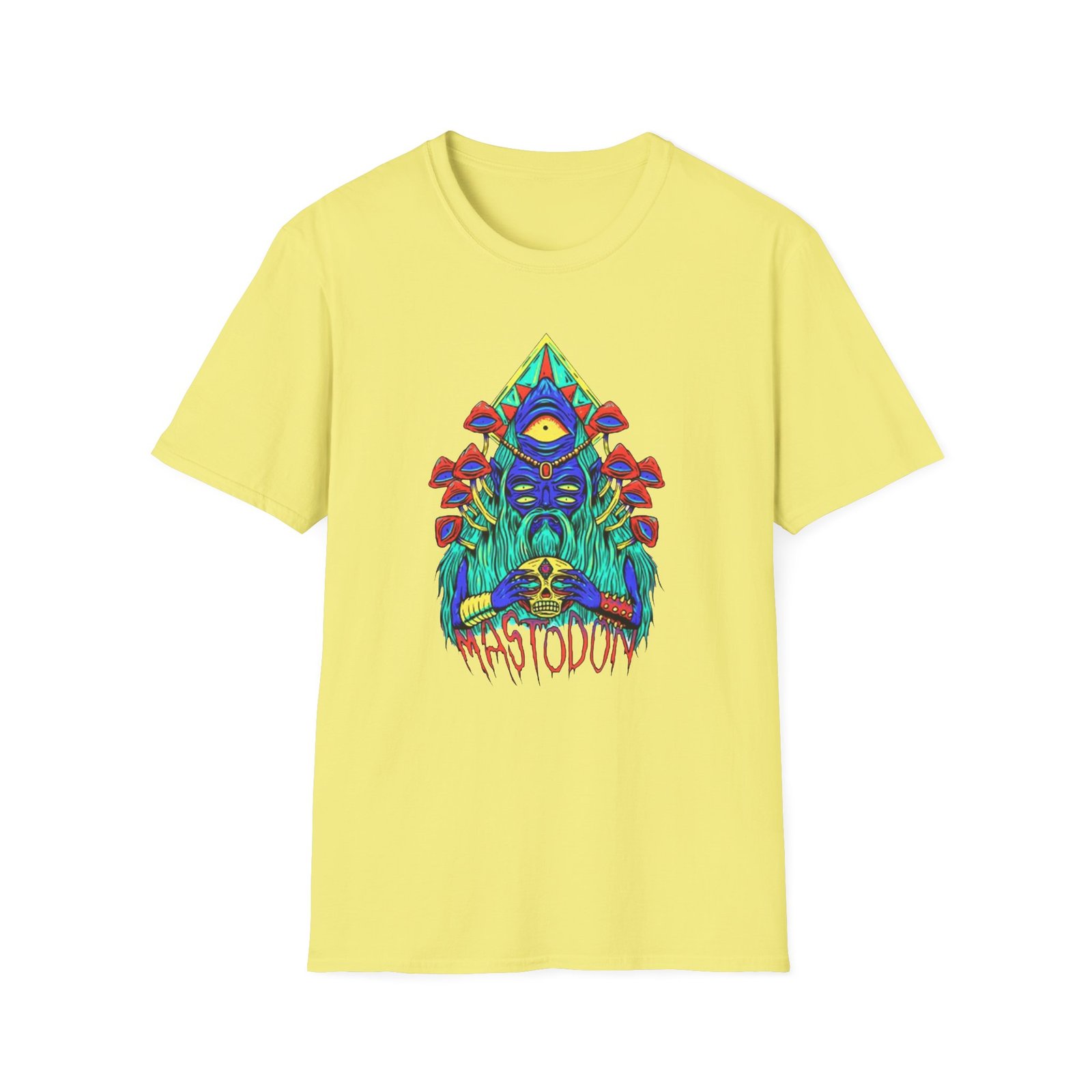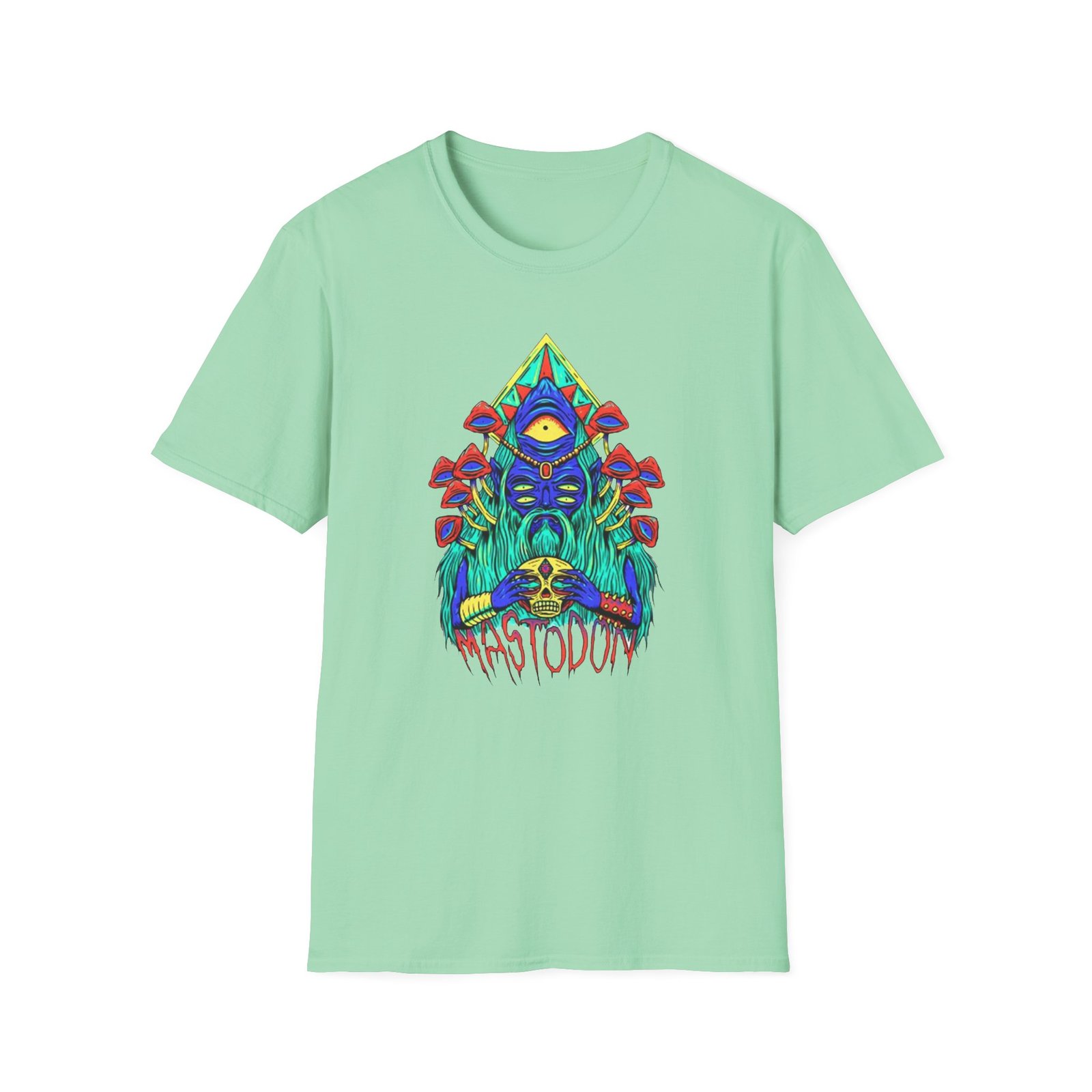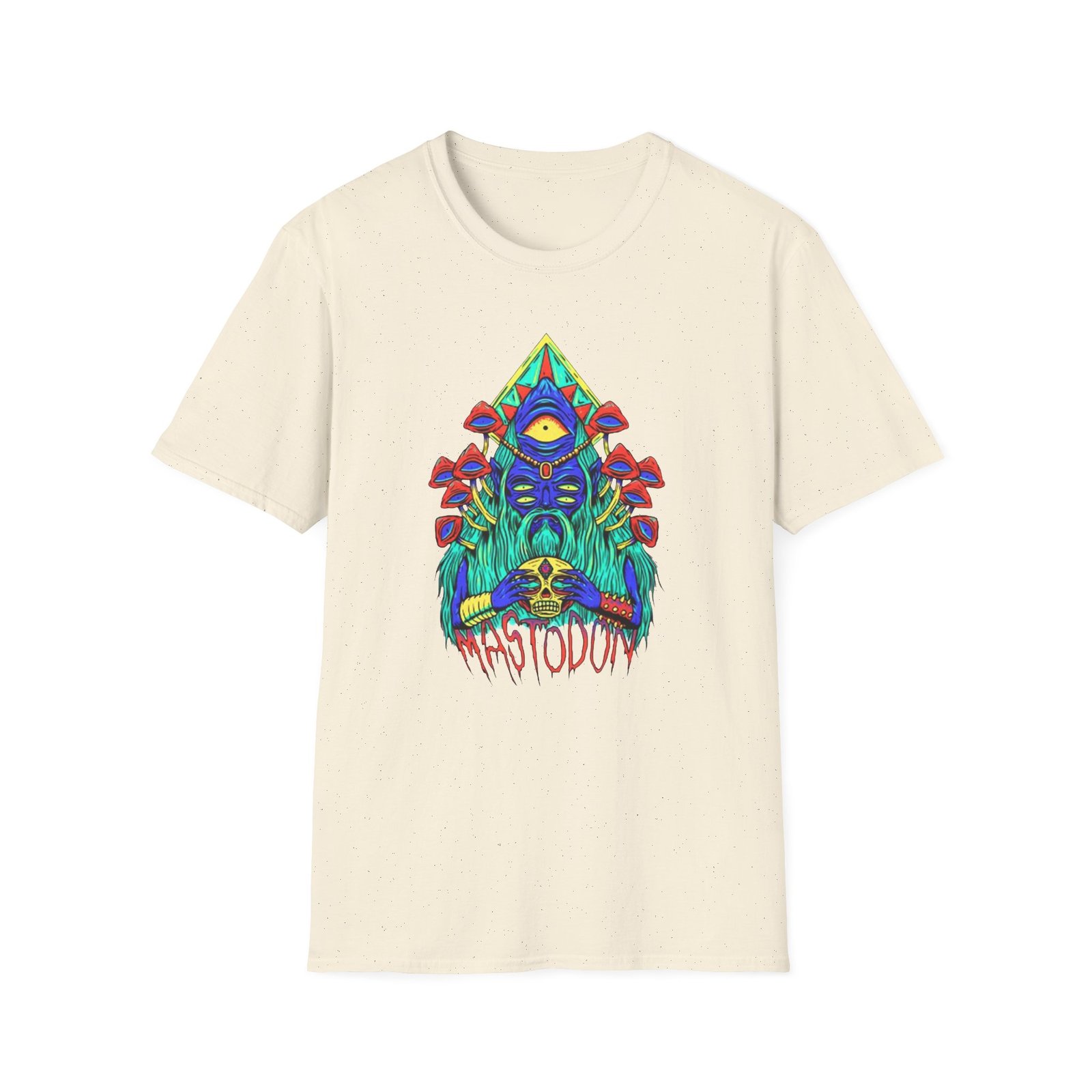 The Mastodon Mushroom Wizard Glow unisex soft-style t-shirt puts a new spin on casual comfort. Made from very soft materials, this tee is 100% cotton for solid colors. Heather colors and sports grey include polyester. The shoulders have twill tape for improved durability. There are no side seams. The collar is made with ribbed knitting to prevent curling damage.