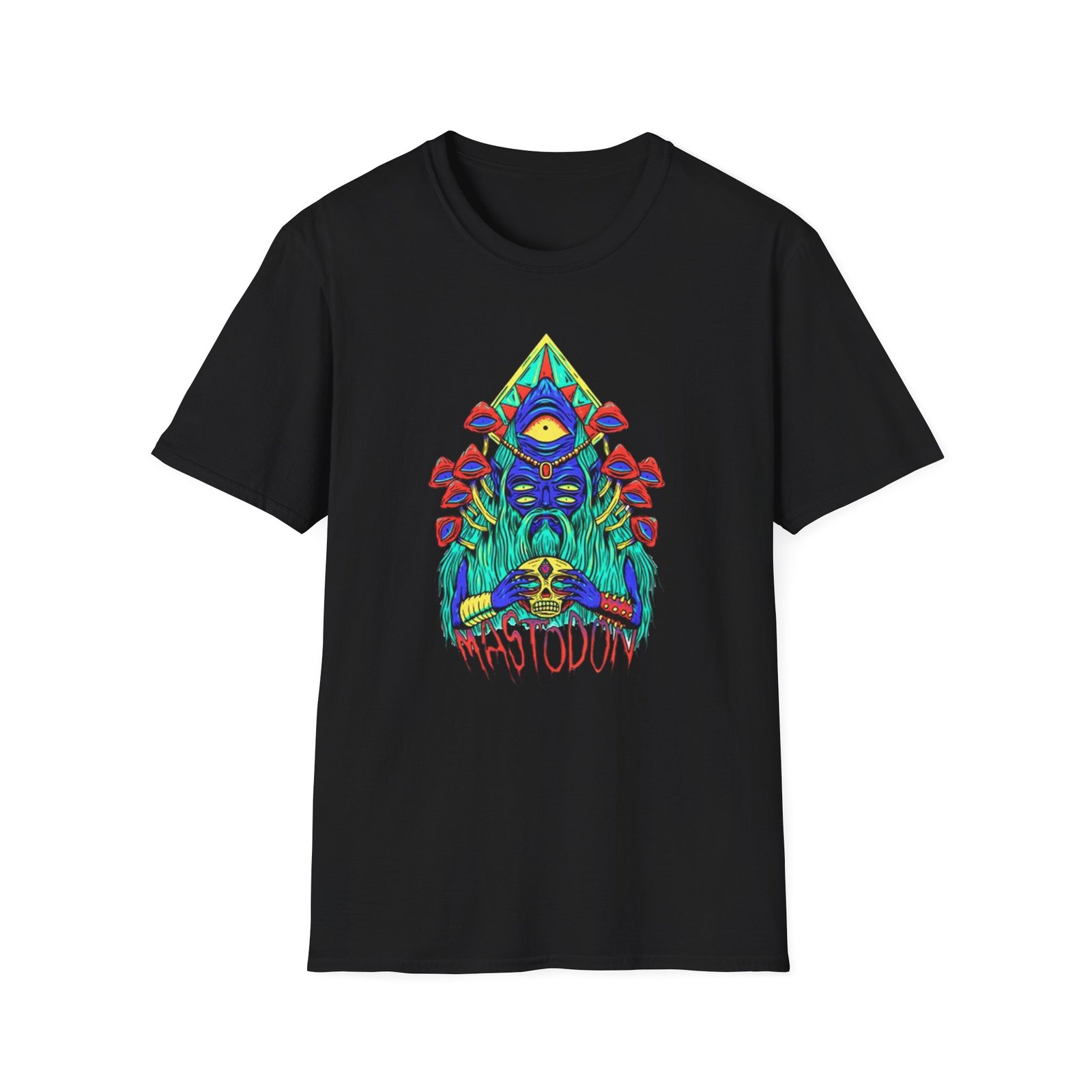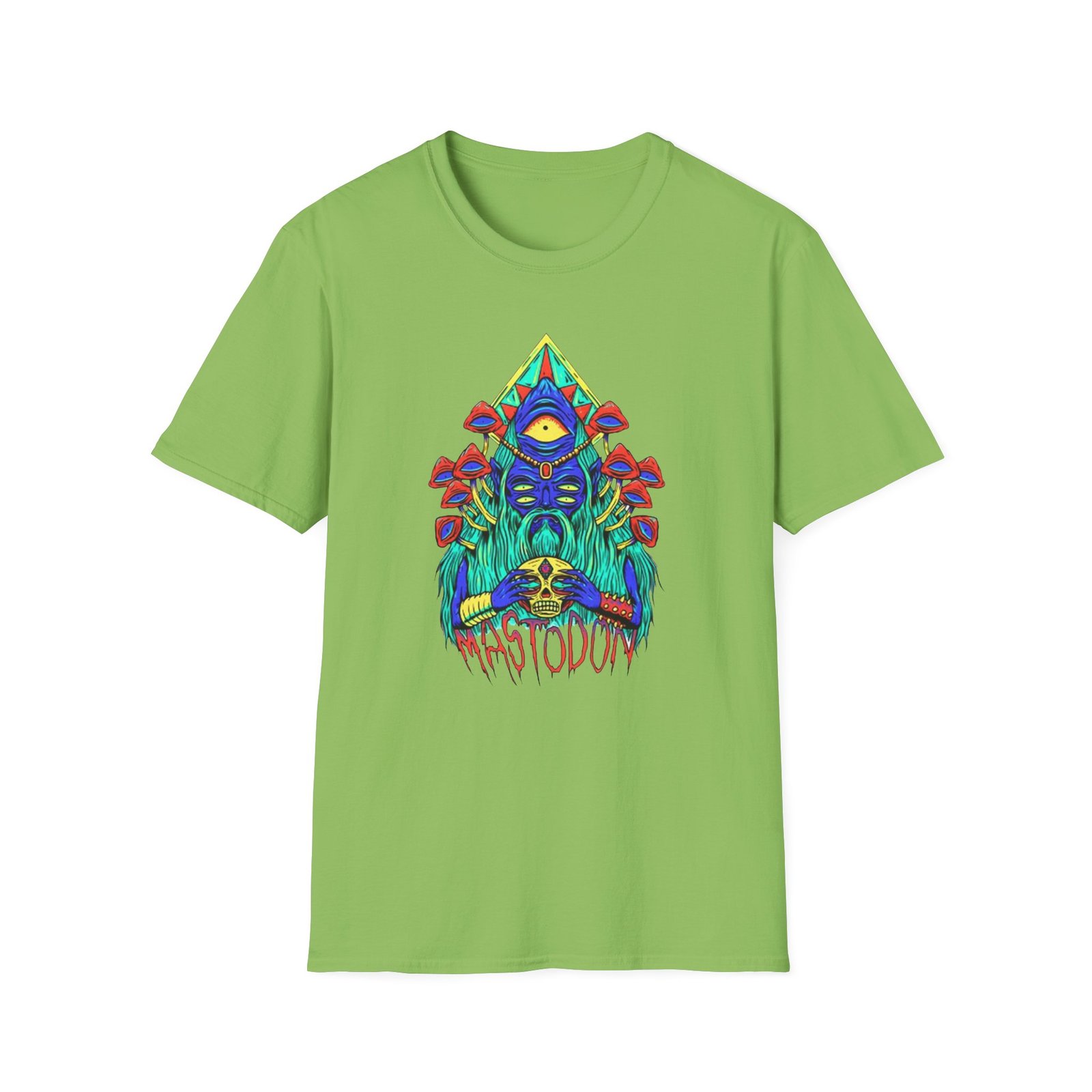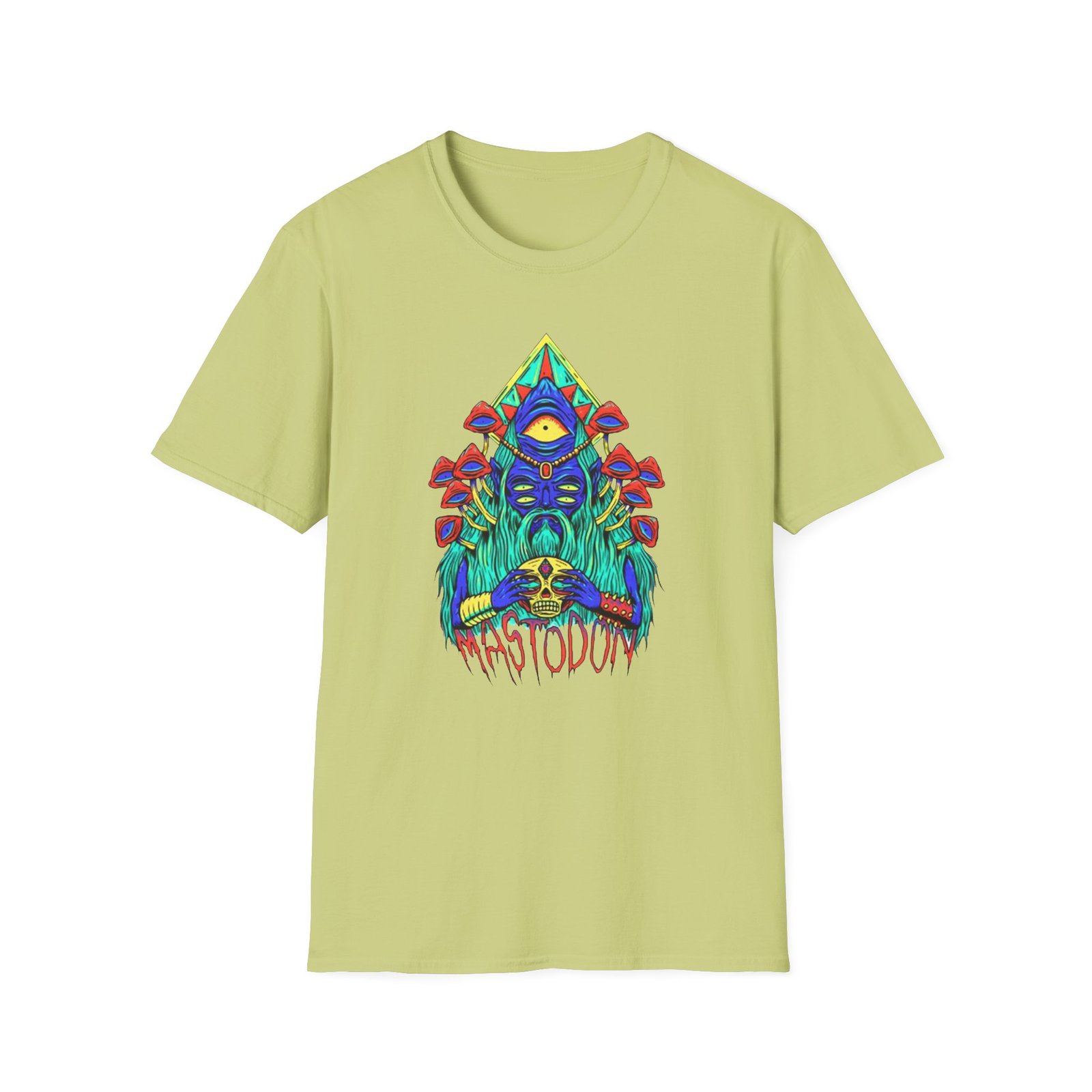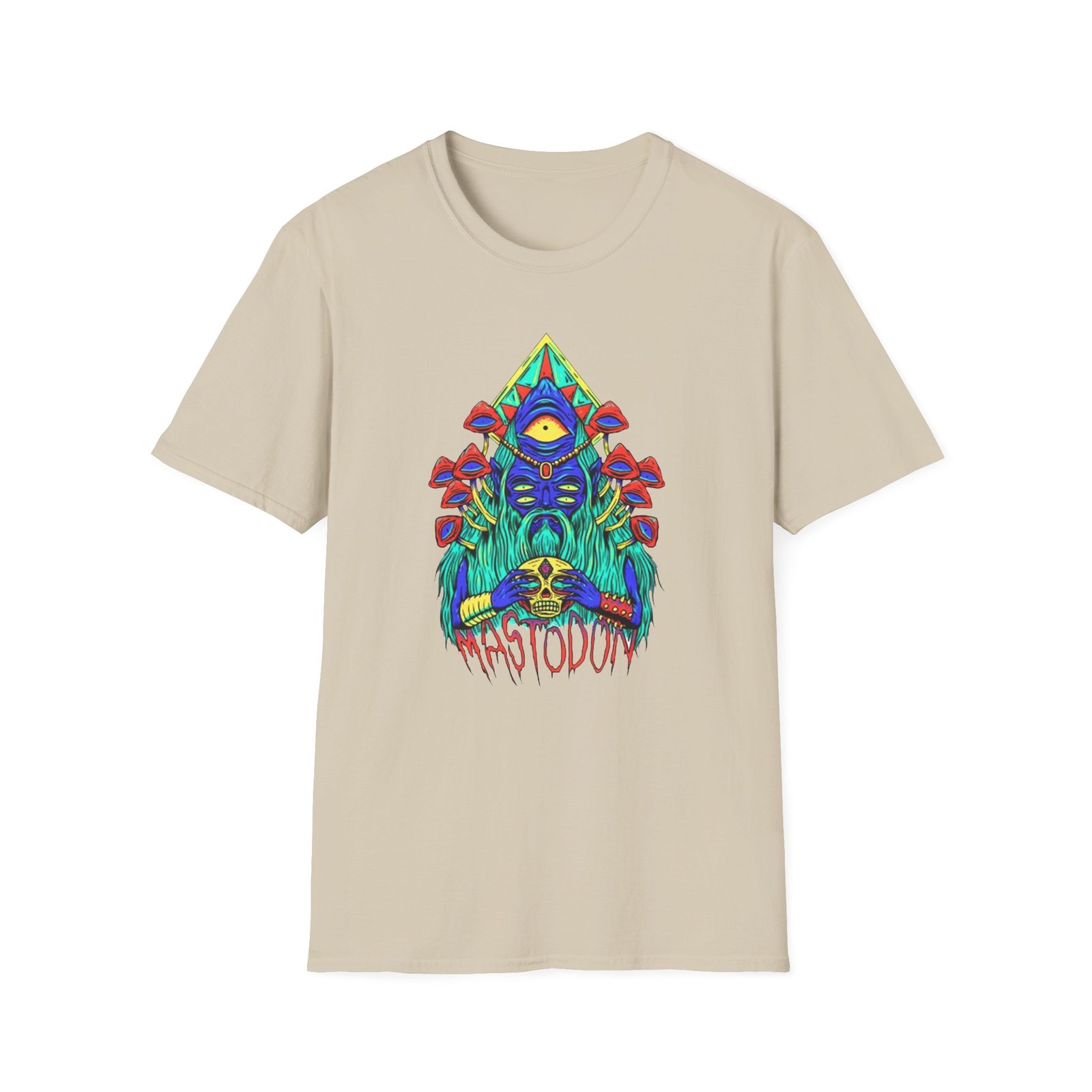 The Mastodon Mushroom Wizard Glow unisex soft-style t-shirt puts a new spin on casual comfort. Made from very soft materials, this tee is 100% cotton for solid colors. Heather colors and sports grey include polyester. The shoulders have twill tape for improved durability. There are no side seams. The collar is made with ribbed knitting to prevent curling damage.