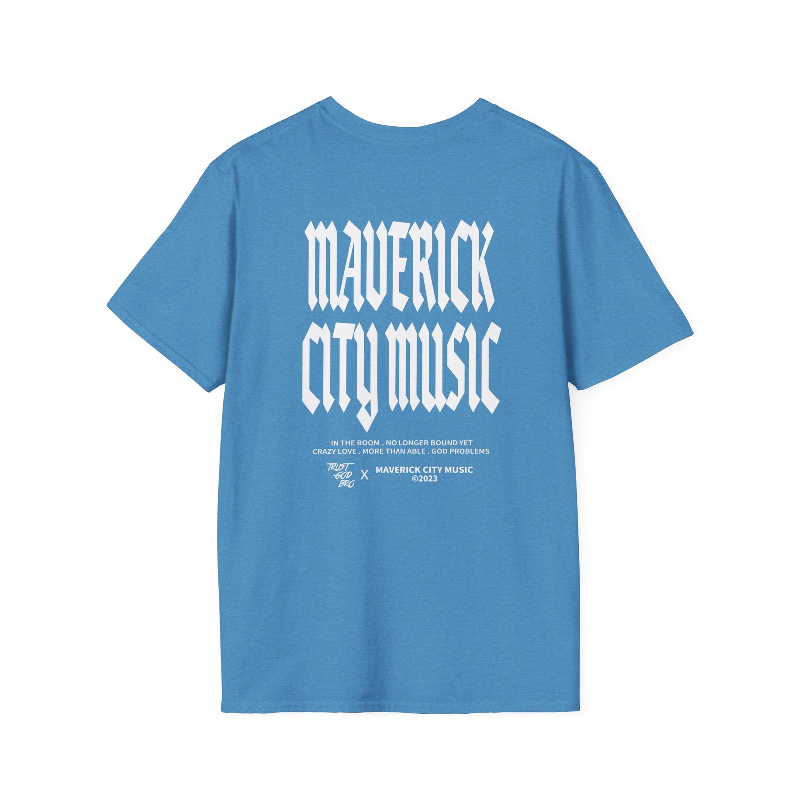 The Maverick City Music X Trustgodbro unisex soft-style t-shirt puts a new spin on casual comfort. Made from very soft materials, this tee is 100% cotton for solid colors. Heather colors and sports grey include polyester. The shoulders have twill tape for improved durability. There are no side seams. The collar is made with ribbed knitting to prevent curling damage.