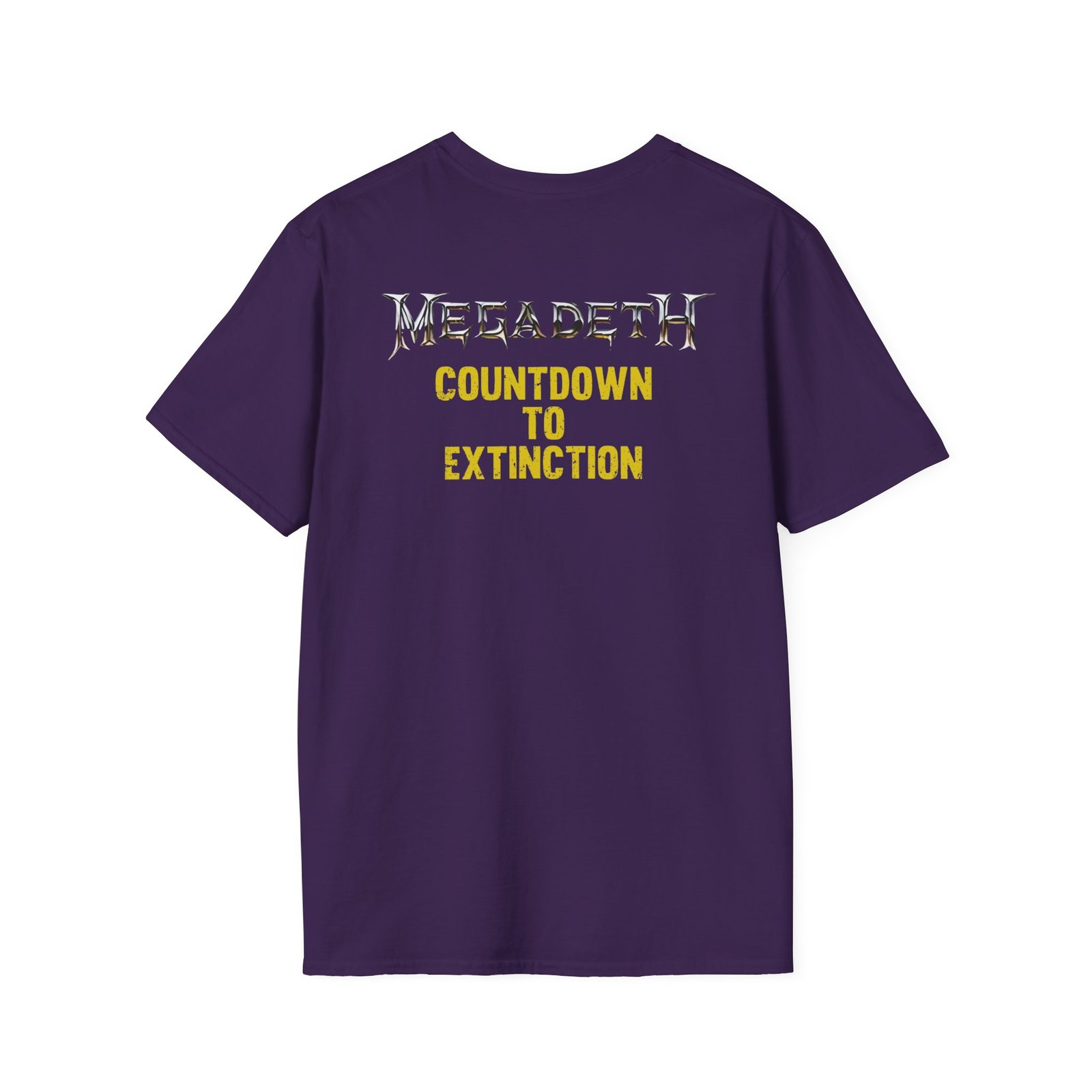 The Megadeth Countdown to Extinction Unisex Softstyle T-Shirt puts a new spin on casual comfort. Made from very soft materials, this tee is 100% cotton for solid colors. Heather colors and sports grey include polyester. The shoulders have twill tape for improved durability. There are no side seams. The collar is made with ribbed knitting to prevent curling damage.