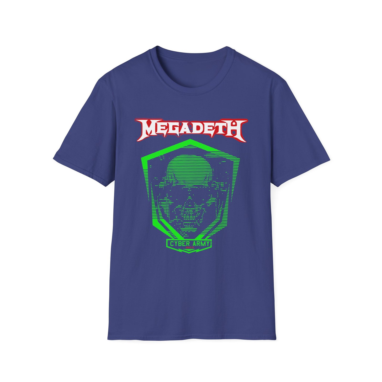 The Megadeth Cyber Army Unisex Softstyle T-Shirt puts a new spin on casual comfort. Made from very soft materials, this tee is 100% cotton for solid colors. Heather colors and sports grey include polyester. The shoulders have twill tape for improved durability. There are no side seams. The collar is made with ribbed knitting to prevent curling damage.