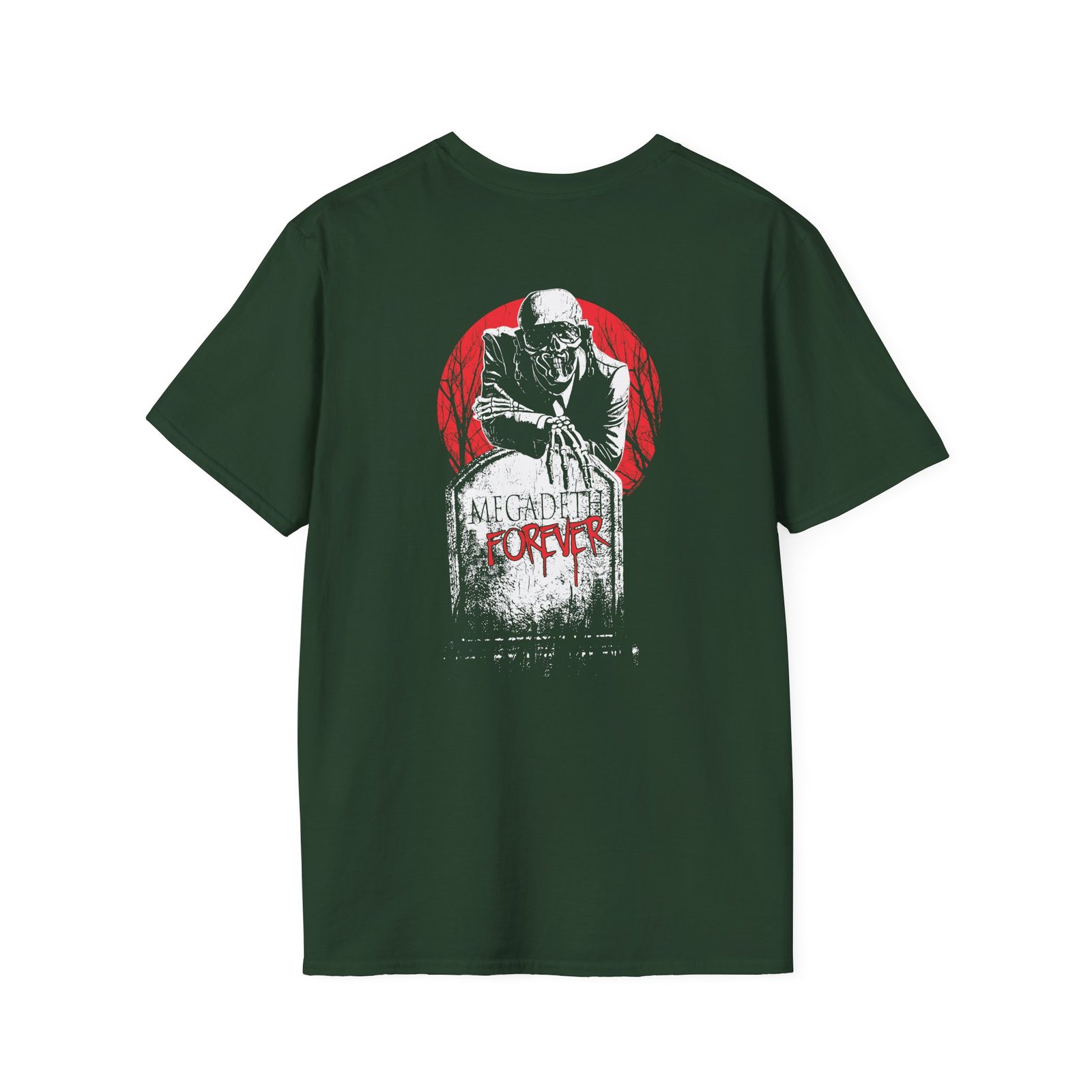 The Megadeth Tombstone Vic Unisex Softstyle T-Shirt puts a new spin on casual comfort. Made from very soft materials, this tee is 100% cotton for solid colors. Heather colors and sports grey include polyester. The shoulders have twill tape for improved durability. There are no side seams. The collar is made with ribbed knitting to prevent curling damage.