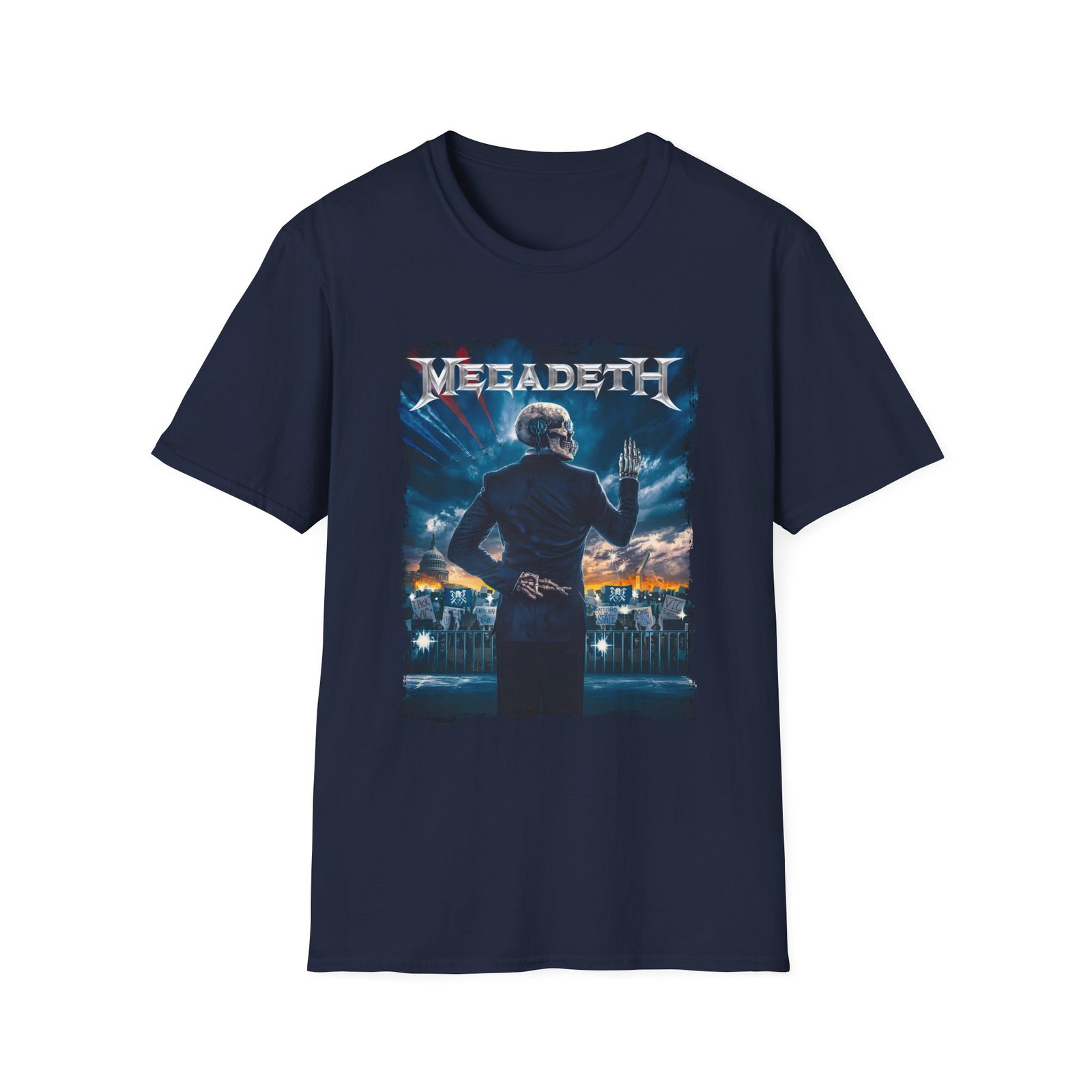 The Megadeth Vic Rally Unisex Softstyle T-Shirt puts a new spin on casual comfort. Made from very soft materials, this tee is 100% cotton for solid colors. Heather colors and sports grey include polyester. The shoulders have twill tape for improved durability. There are no side seams. The collar is made with ribbed knitting to prevent curling damage.