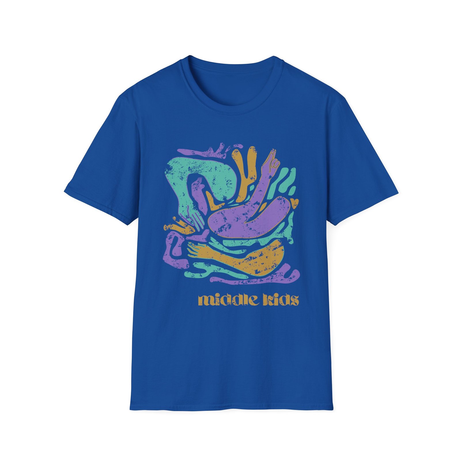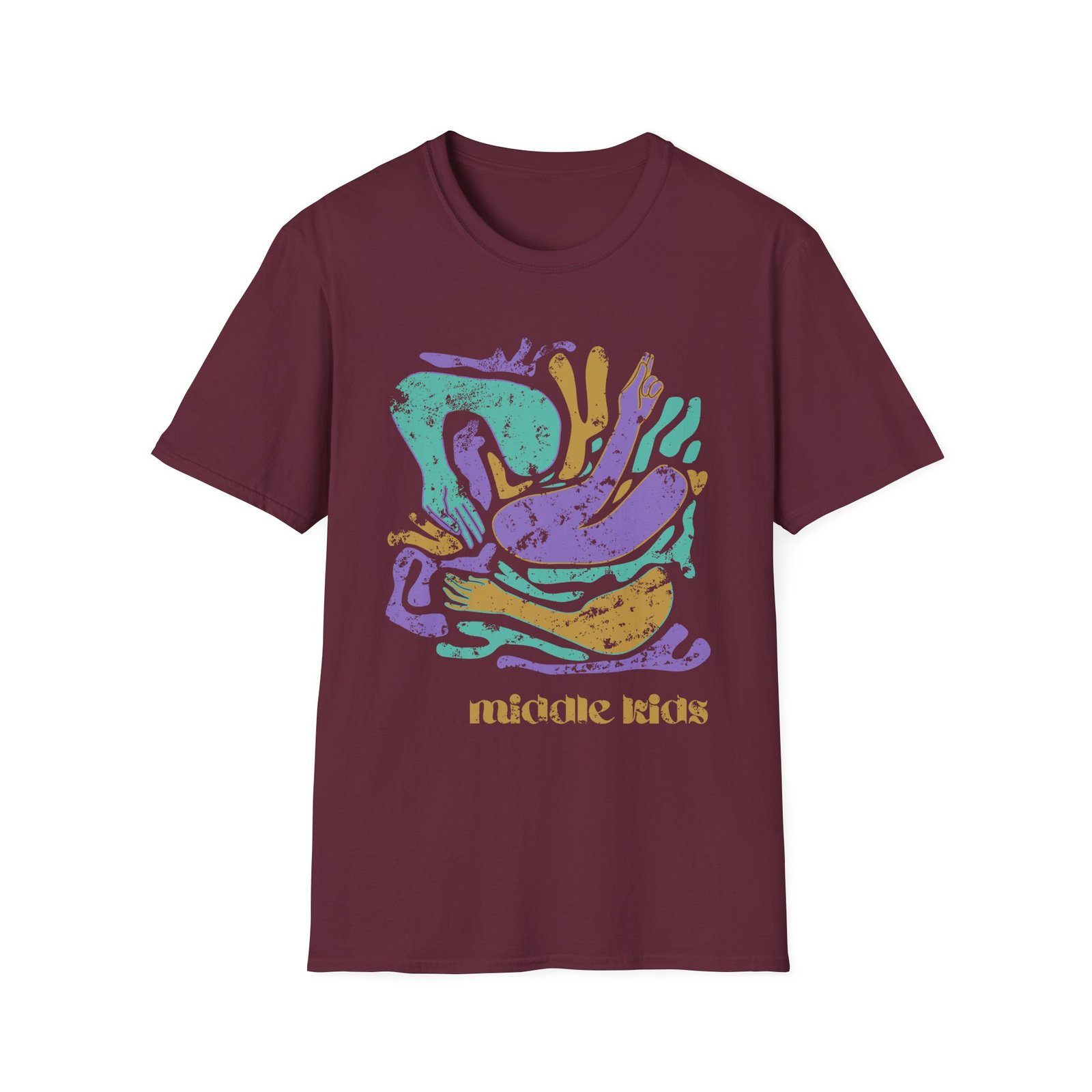 The Middle Kids Live unisex soft-style t-shirt puts a new spin on casual comfort. Made from very soft materials, this tee is 100% cotton for solid colors. Heather colors and sports grey include polyester. The shoulders have twill tape for improved durability. There are no side seams. The collar is made with ribbed knitting to prevent curling damage.