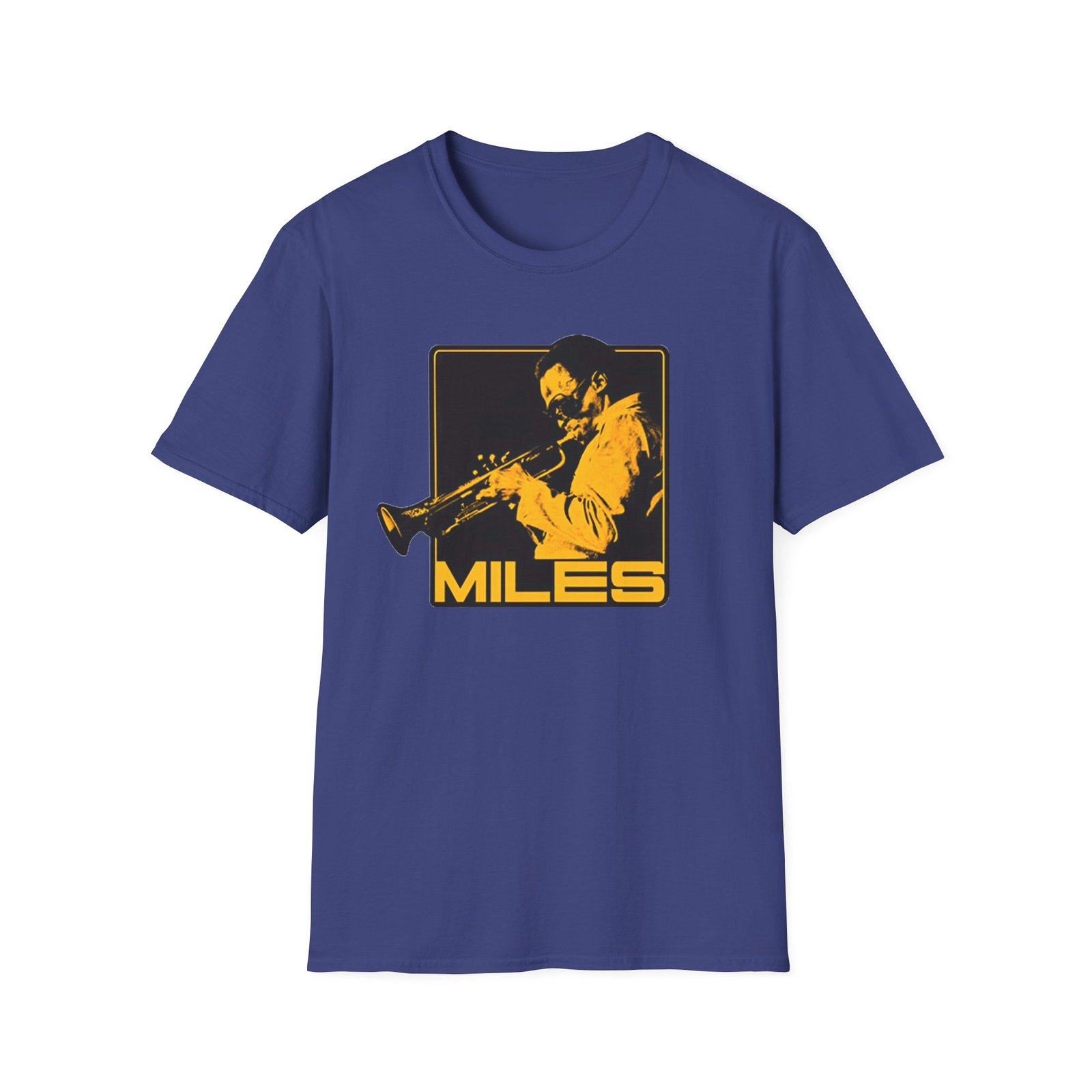 The Miles Davis Shades Of Miles unisex soft-style t-shirt puts a new spin on casual comfort. Made from very soft materials, this tee is 100% cotton for solid colors. Heather colors and sports grey include polyester. The shoulders have twill tape for improved durability. There are no side seams. The collar is made with ribbed knitting to prevent curling damage.