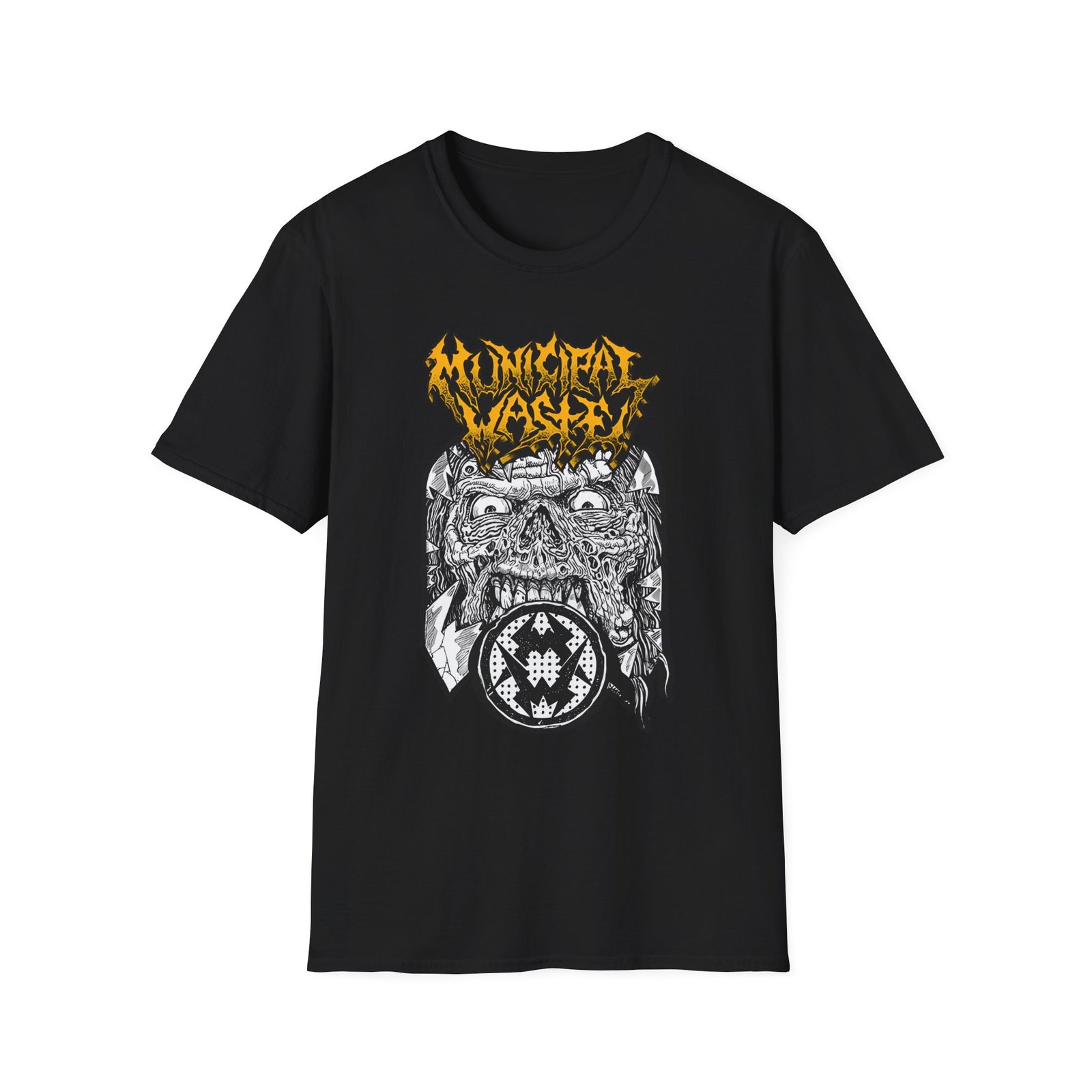 The Municipal Waste Breakthrough unisex soft-style t-shirt puts a new spin on casual comfort. Made from very soft materials, this tee is 100% cotton for solid colors. Heather colors and sports grey include polyester. The shoulders have twill tape for improved durability. There are no side seams. The collar is made with ribbed knitting to prevent curling damage.
