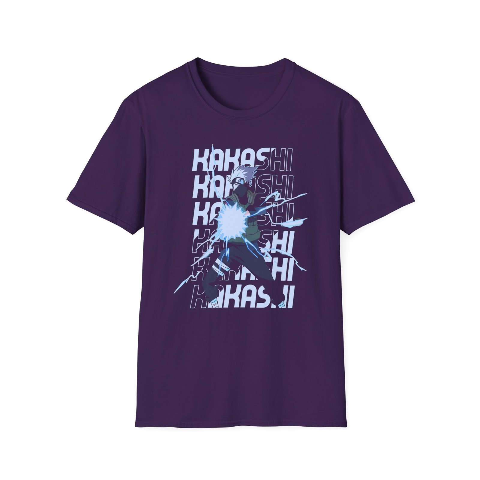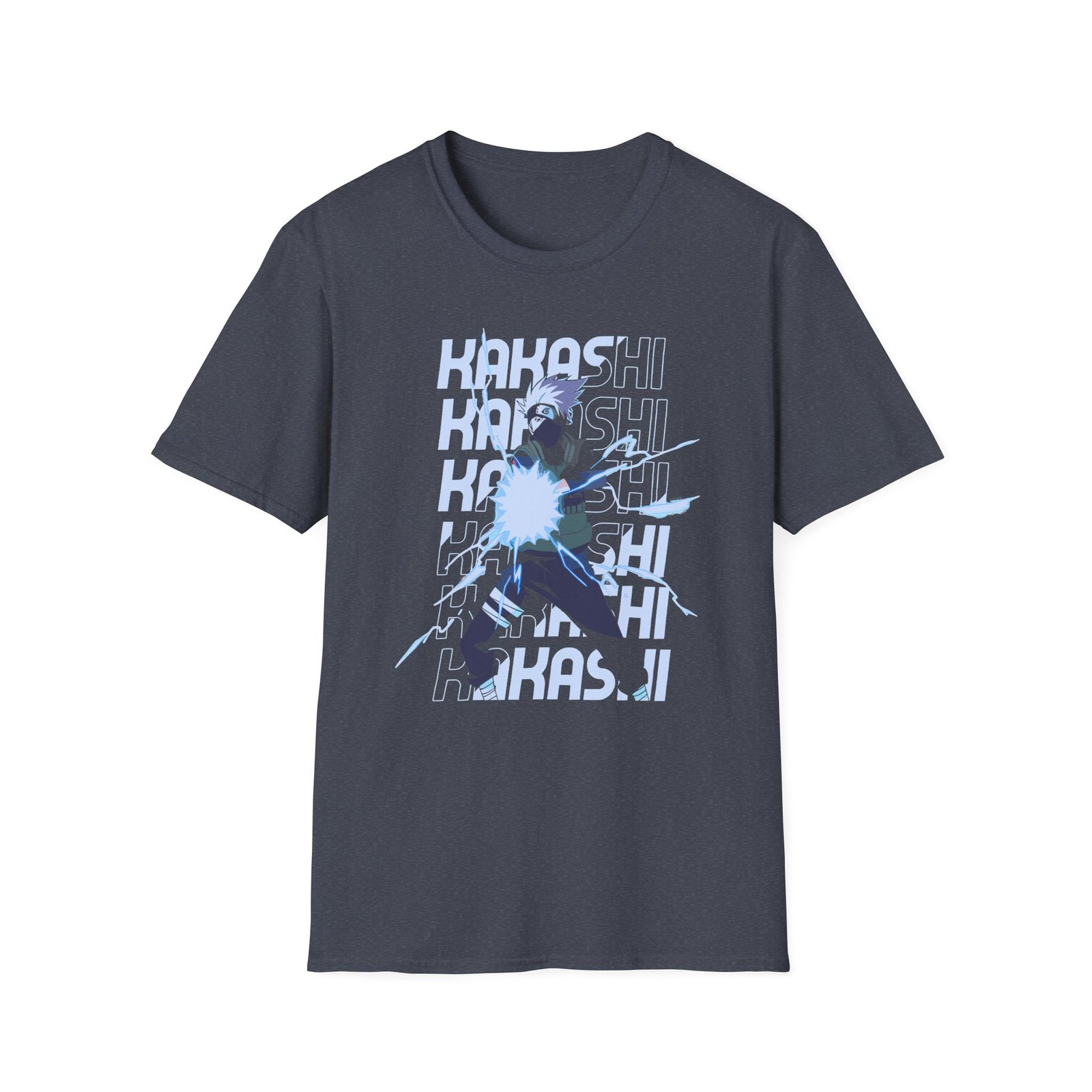 The Naruto Kakashi unisex soft-style t-shirt puts a new spin on casual comfort. Made from very soft materials, this tee is 100% cotton for solid colors. Heather colors and sports grey include polyester. The shoulders have twill tape for improved durability. There are no side seams. The collar is made with ribbed knitting to prevent curling damage.