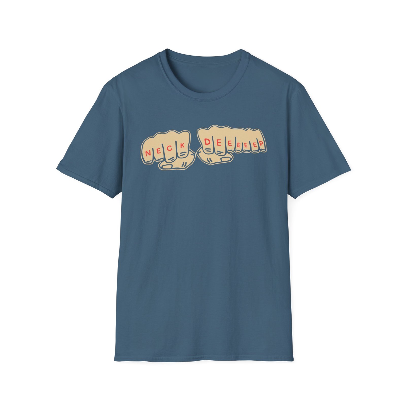 The Neck Deep Fist unisex soft-style t-shirt puts a new spin on casual comfort. Made from very soft materials, this tee is 100% cotton for solid colors. Heather colors and sports grey include polyester. The shoulders have twill tape for improved durability. There are no side seams. The collar is made with ribbed knitting to prevent curling damage.