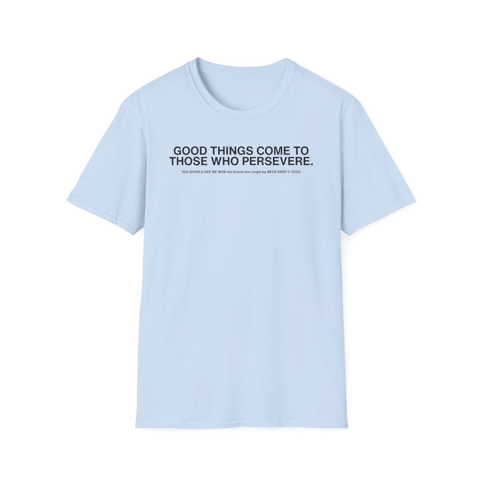 The Neck Deep Good Things unisex soft-style t-shirt puts a new spin on casual comfort. Made from very soft materials, this tee is 100% cotton for solid colors. Heather colors and sports grey include polyester. The shoulders have twill tape for improved durability. There are no side seams. The collar is made with ribbed knitting to prevent curling damage.
