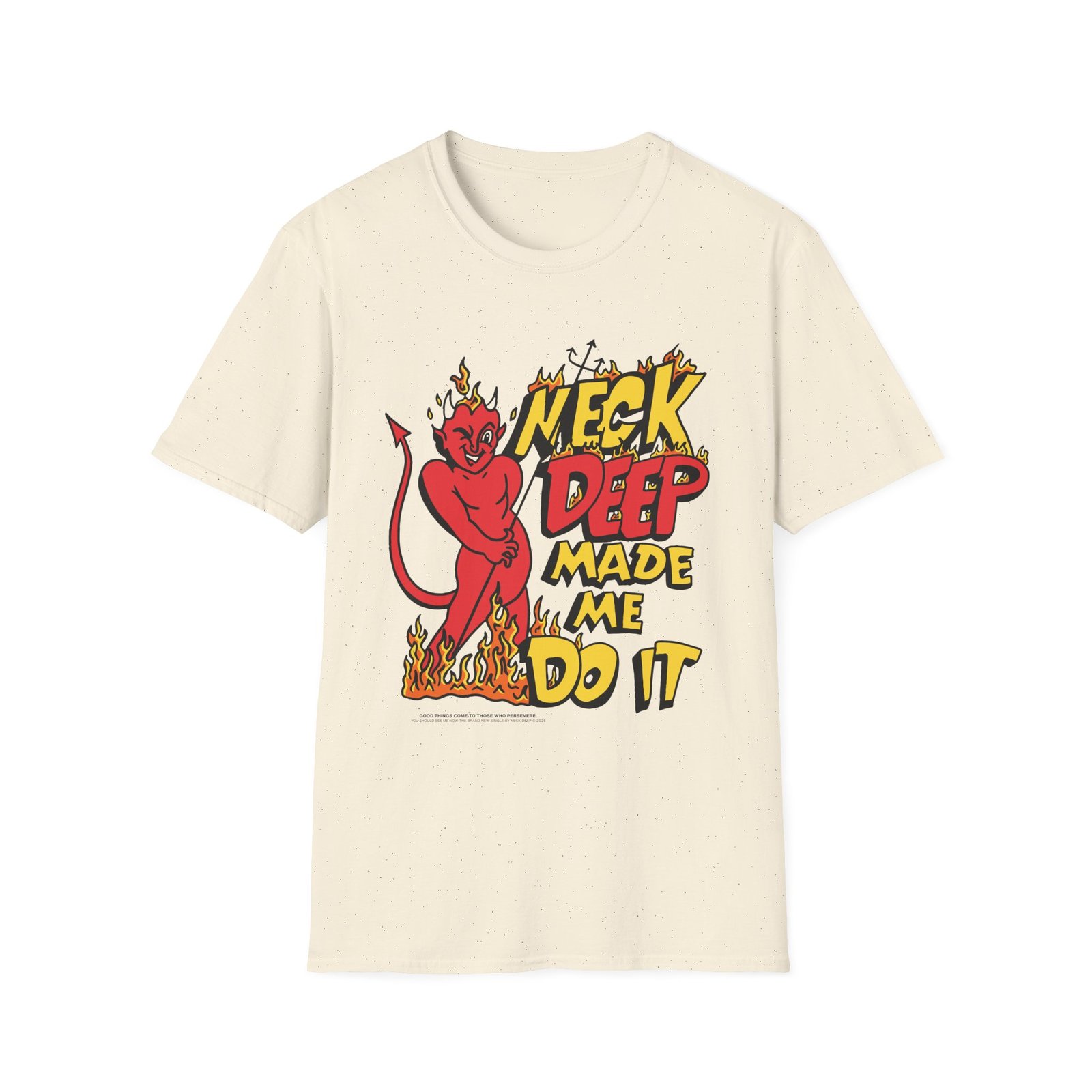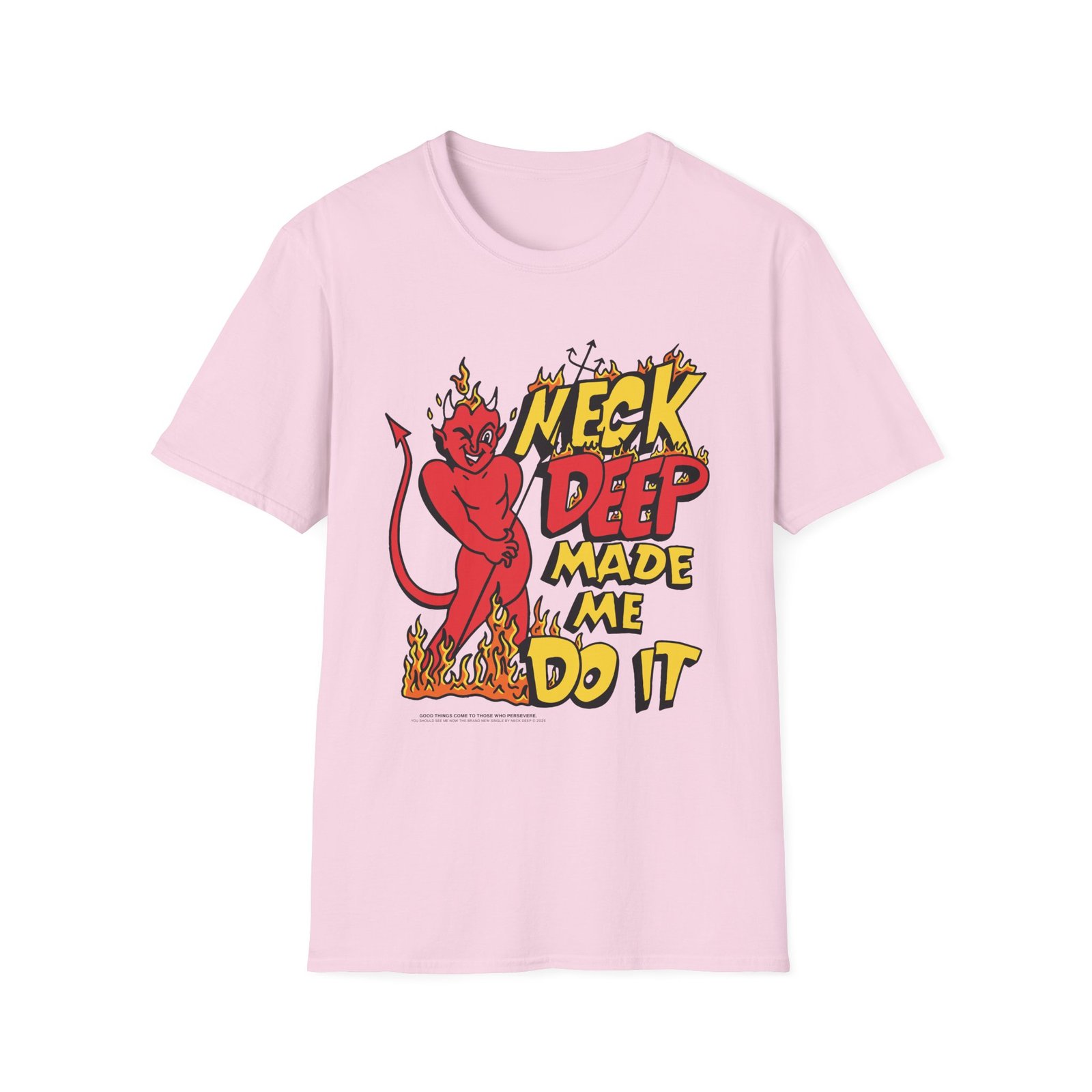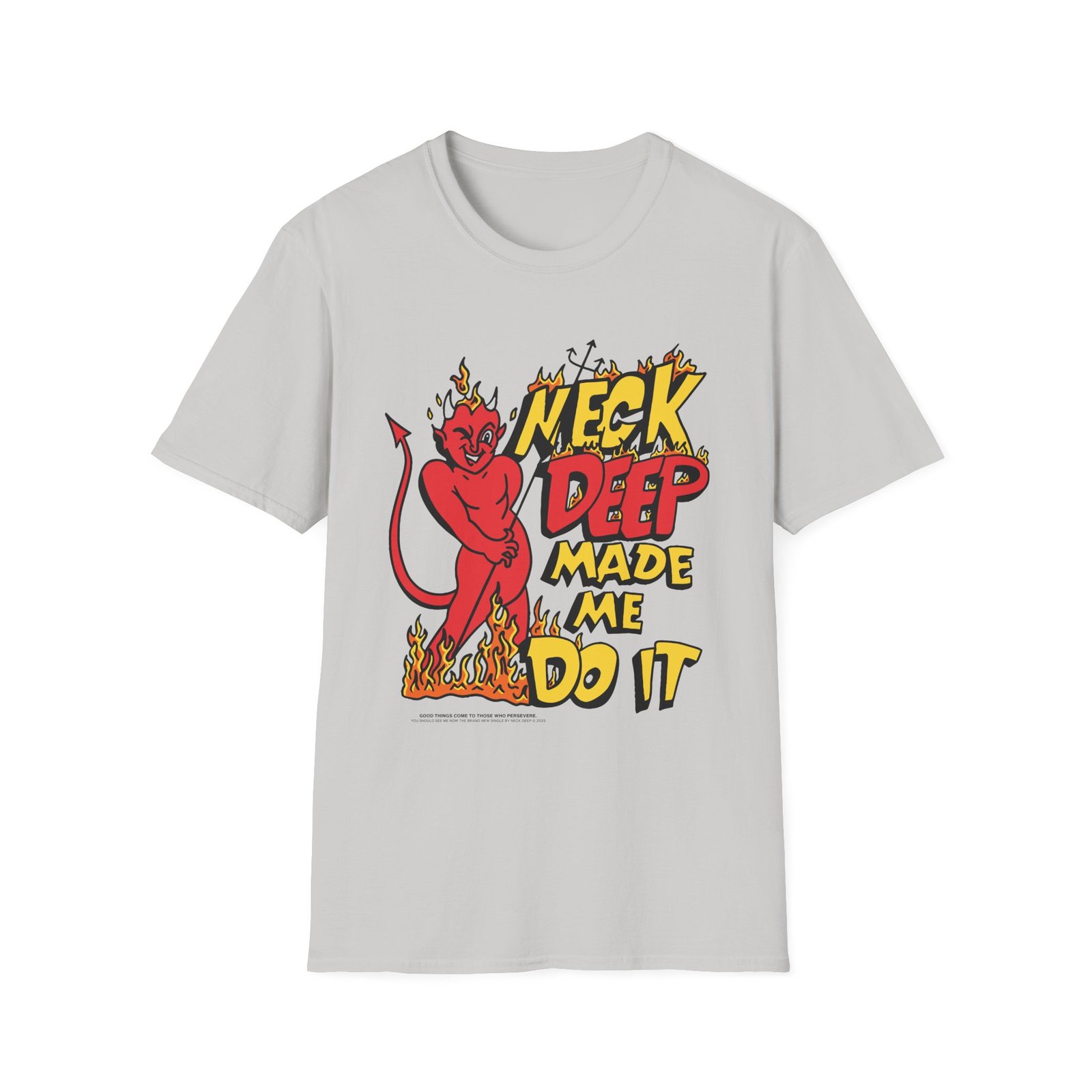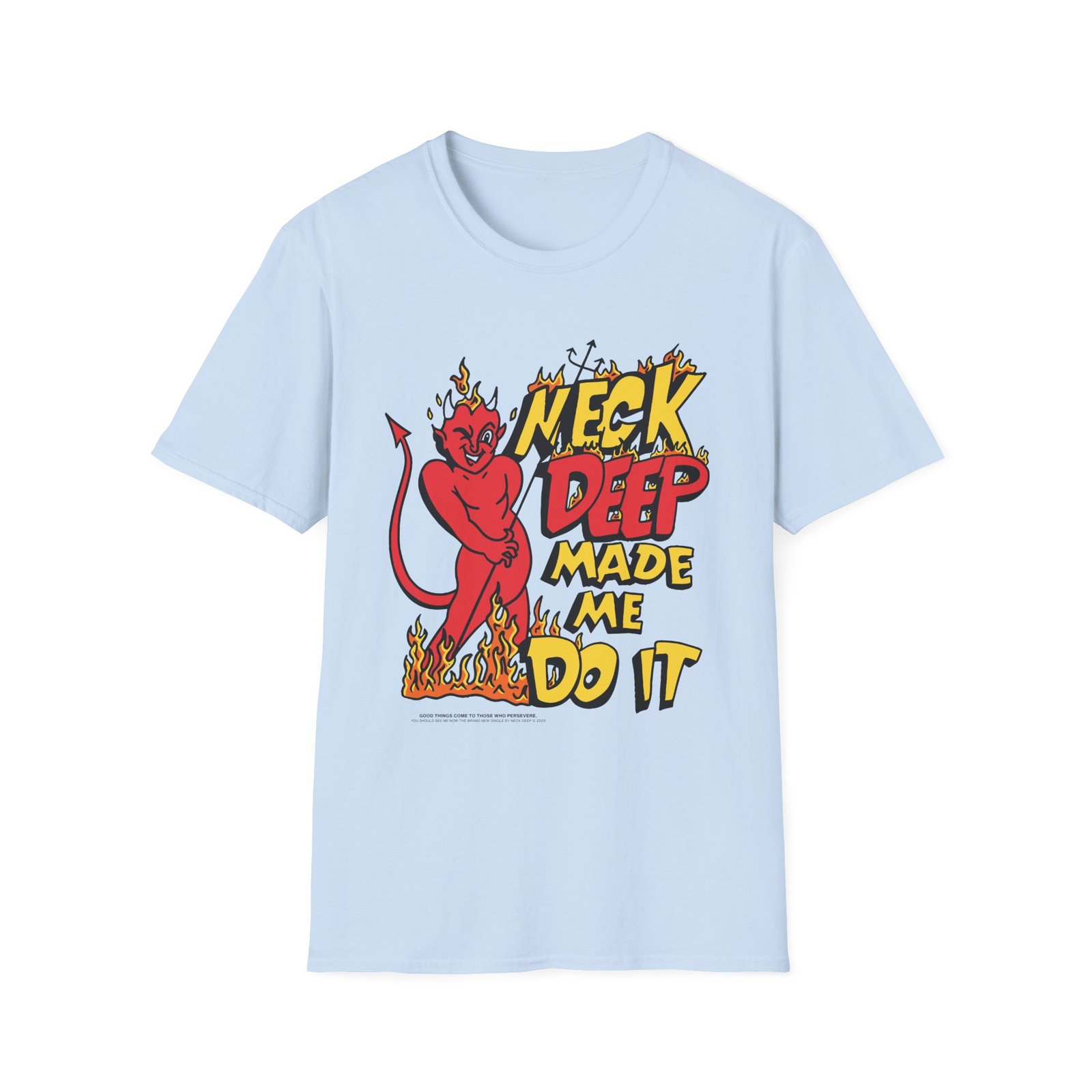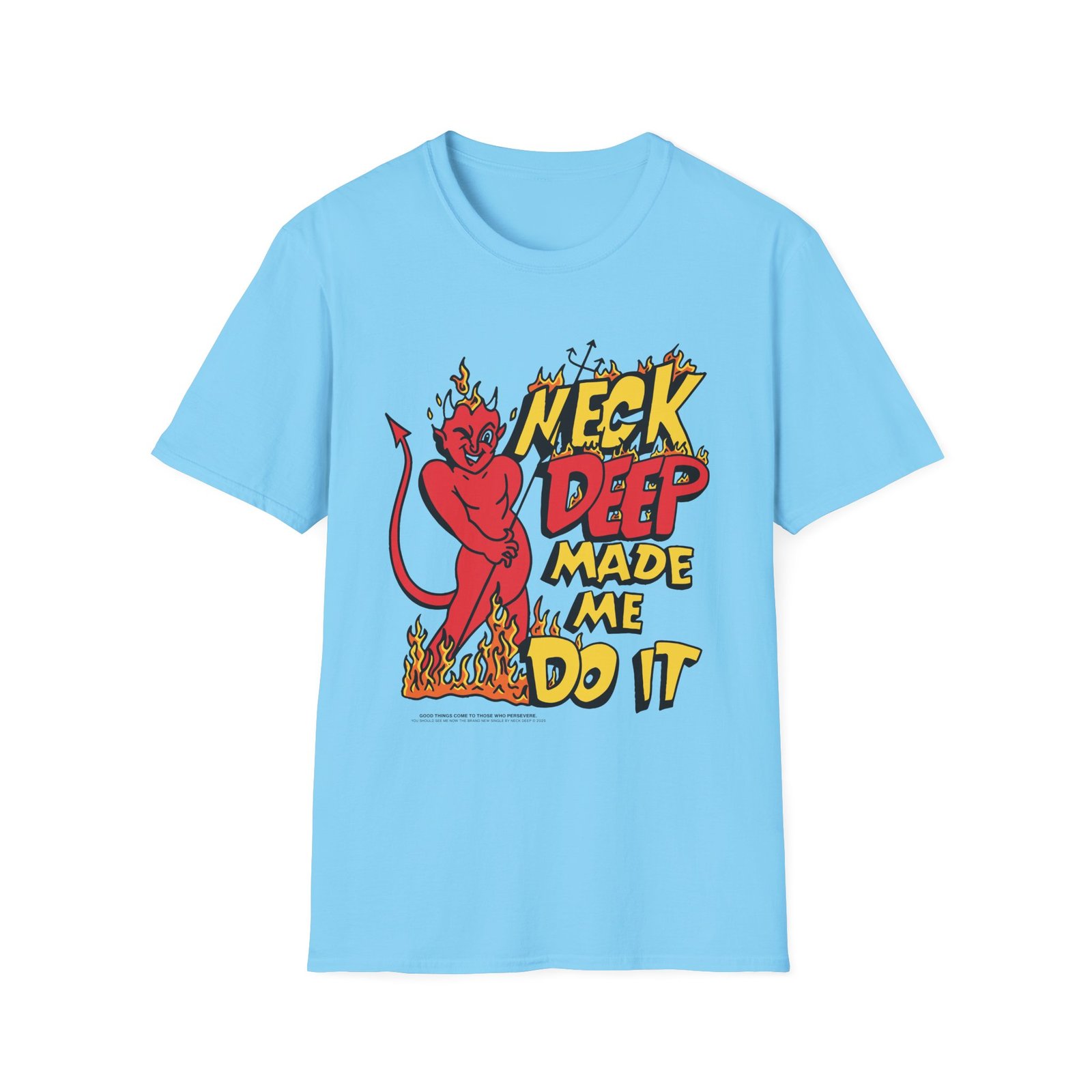 The Neck Deep Made Me Do It unisex soft-style t-shirt puts a new spin on casual comfort. Made from very soft materials, this tee is 100% cotton for solid colors. Heather colors and sports grey include polyester. The shoulders have twill tape for improved durability. There are no side seams. The collar is made with ribbed knitting to prevent curling damage.