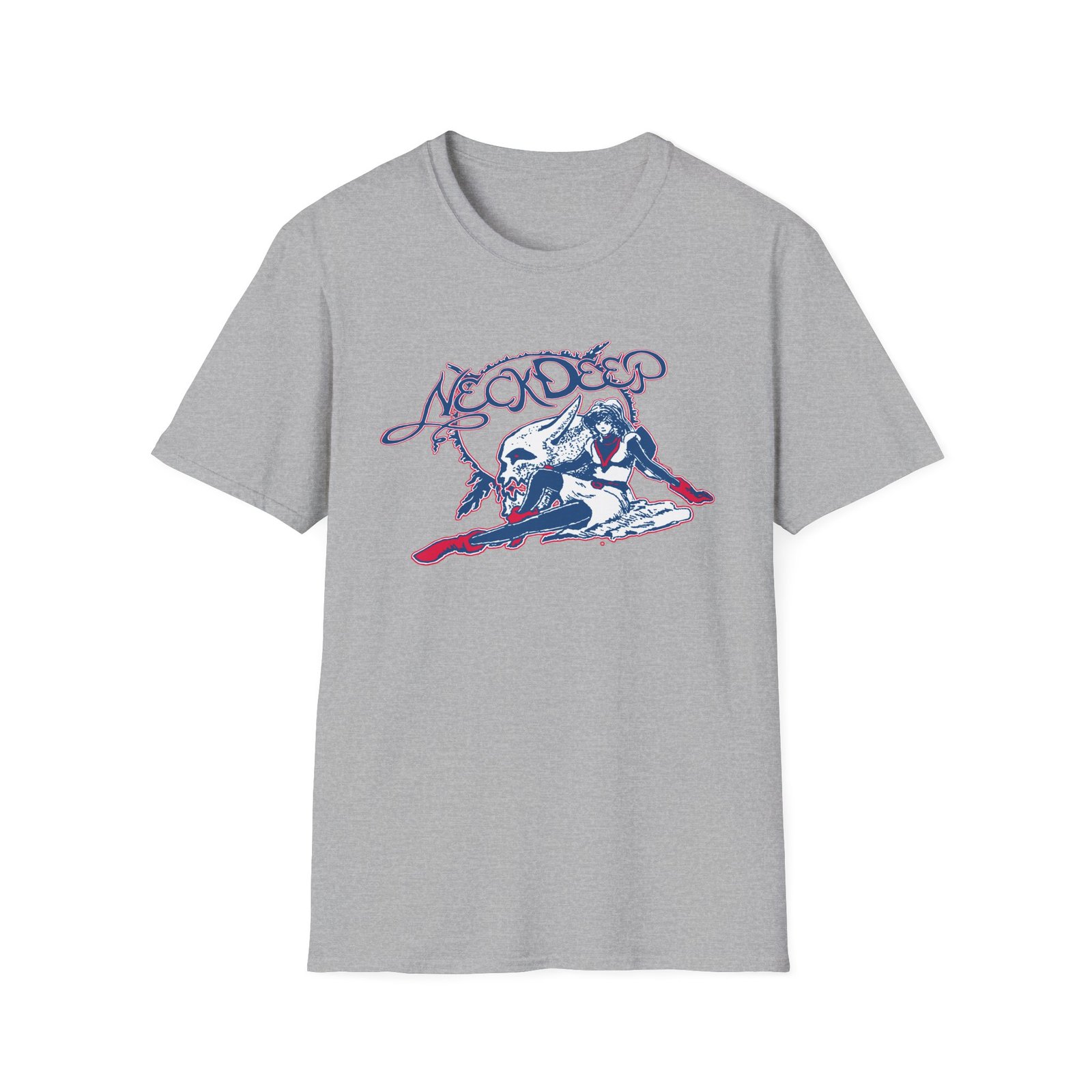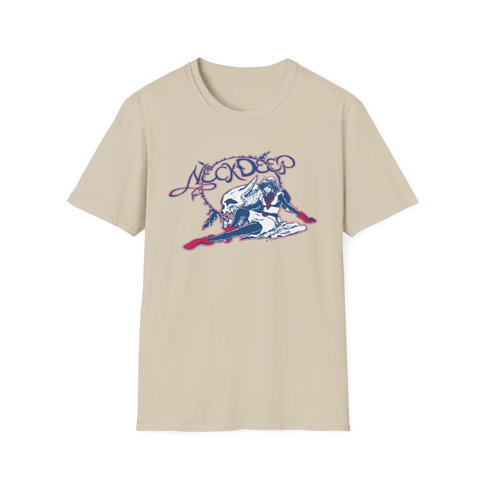 The Neck Deep Sailor unisex soft-style t-shirt puts a new spin on casual comfort. Made from very soft materials, this tee is 100% cotton for solid colors. Heather colors and sports grey include polyester. The shoulders have twill tape for improved durability. There are no side seams. The collar is made with ribbed knitting to prevent curling damage.