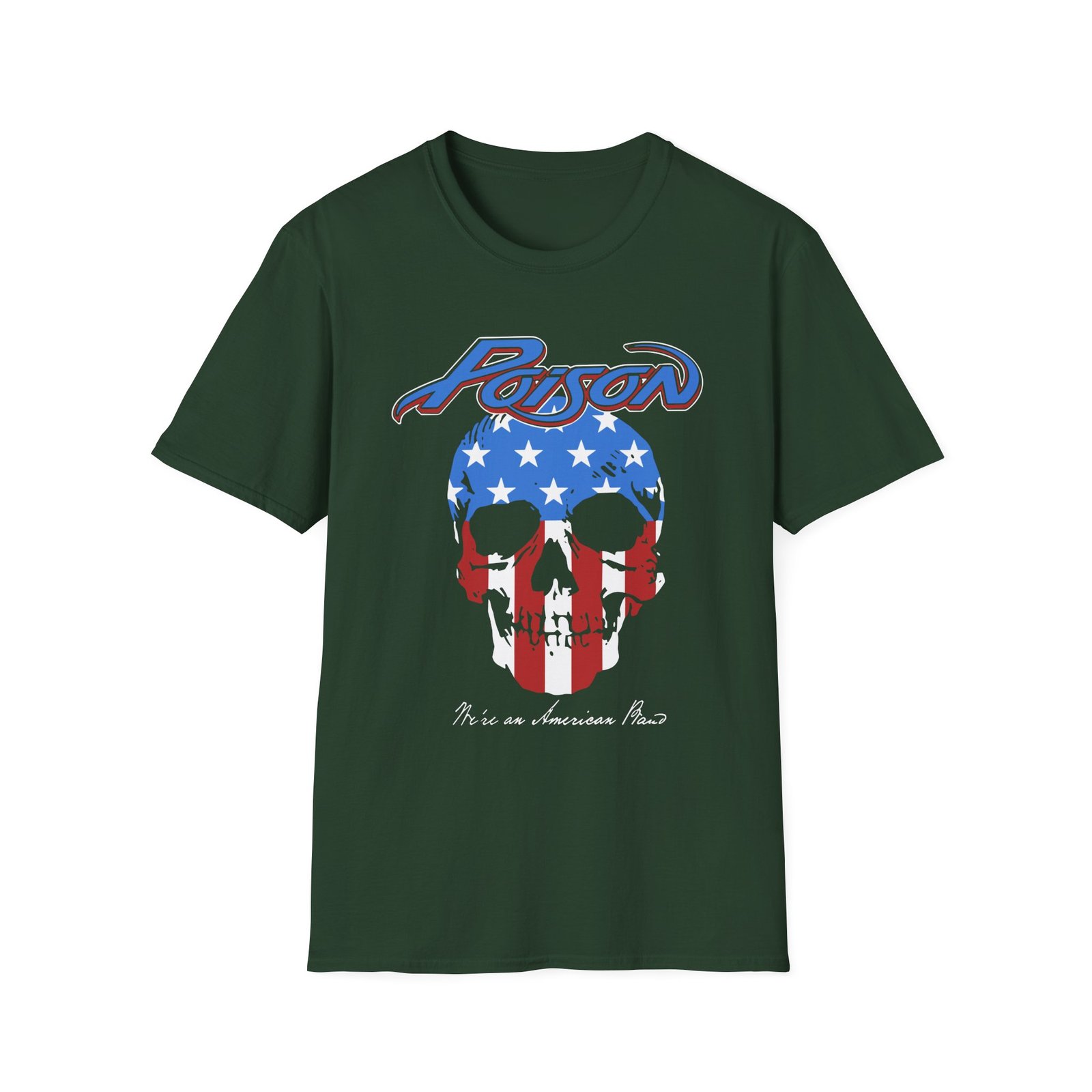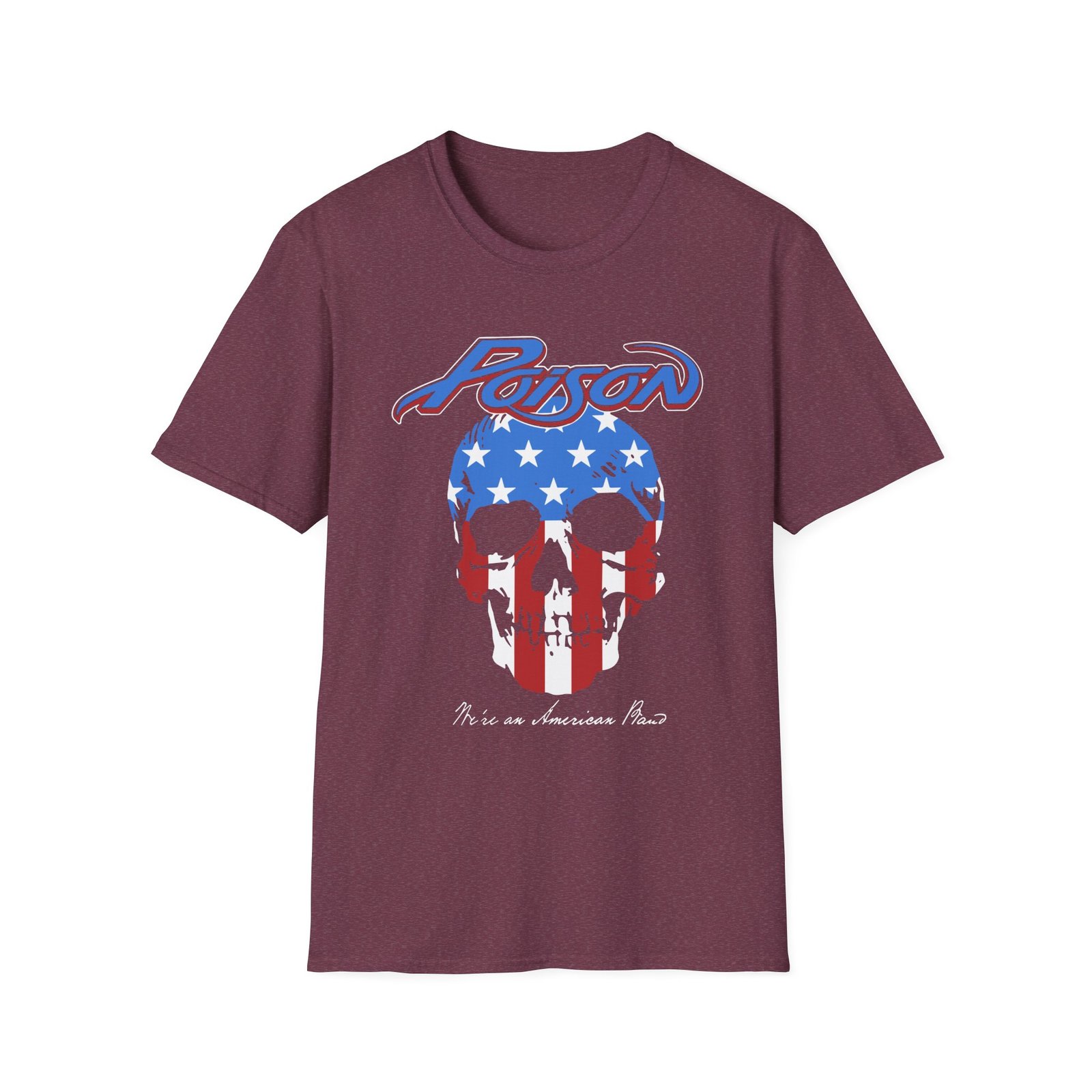The Poison American Band unisex soft-style t-shirt puts a new spin on casual comfort. Made from very soft materials, this tee is 100% cotton for solid colors. Heather colors and sports grey include polyester. The shoulders have twill tape for improved durability. There are no side seams. The collar is made with ribbed knitting to prevent curling damage.