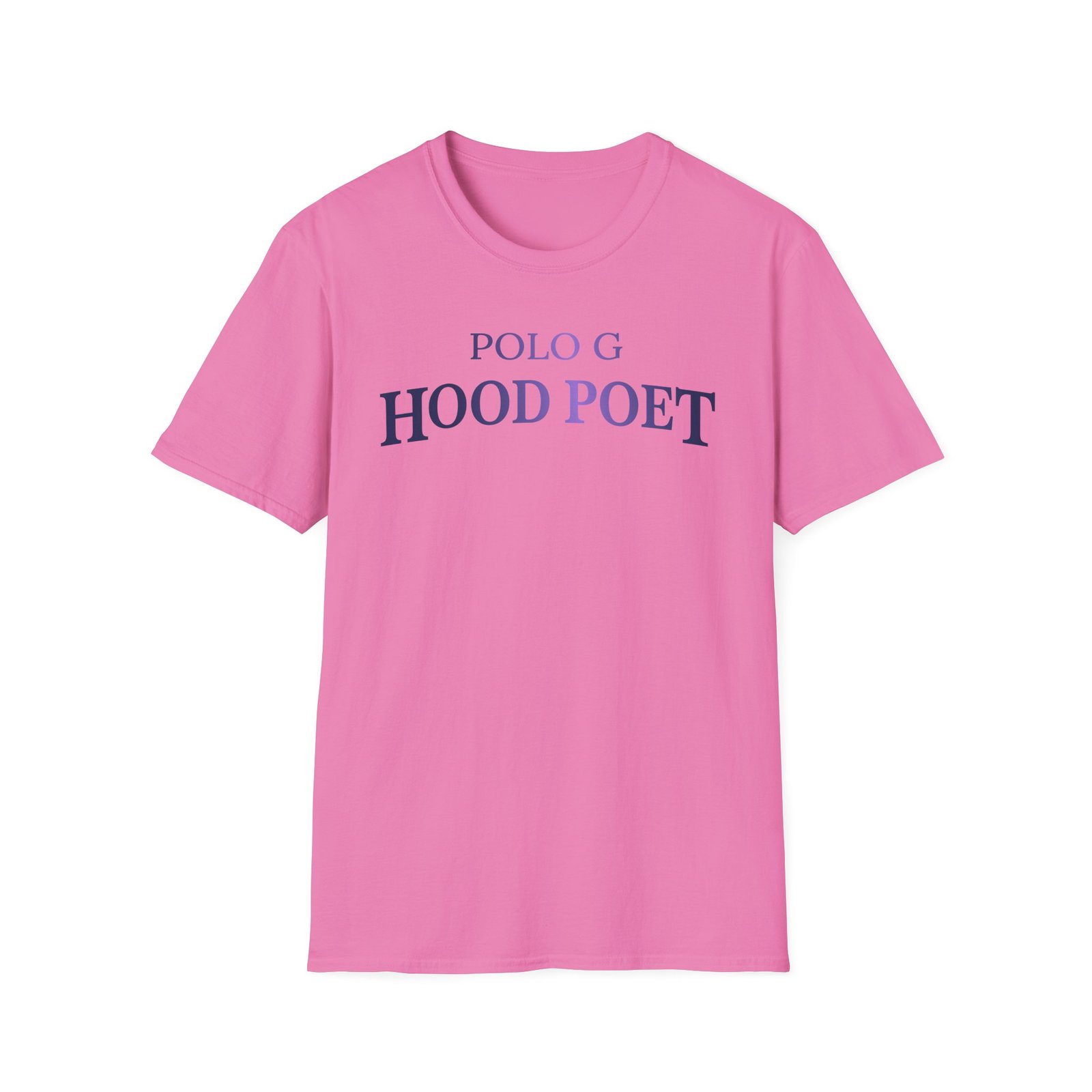 The Polo G Hood Poet unisex soft-style t-shirt puts a new spin on casual comfort. Made from very soft materials, this tee is 100% cotton for solid colors. Heather colors and sports grey include polyester. The shoulders have twill tape for improved durability. There are no side seams. The collar is made with ribbed knitting to prevent curling damage.
