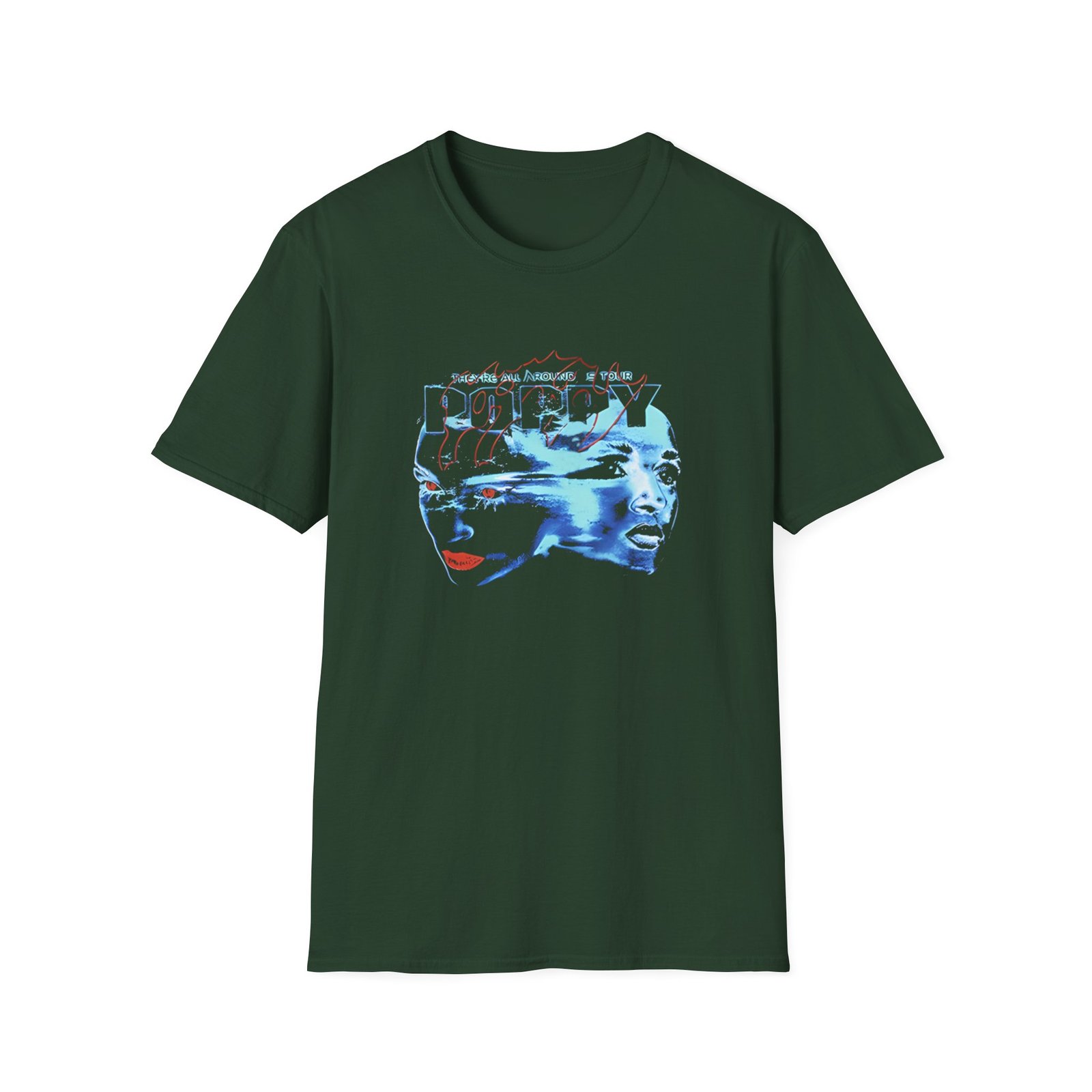 The Poppy They Are All Around Us Tour unisex soft-style t-shirt puts a new spin on casual comfort. Made from very soft materials, this tee is 100% cotton for solid colors. Heather colors and sports grey include polyester. The shoulders have twill tape for improved durability. There are no side seams. The collar is made with ribbed knitting to prevent curling damage.