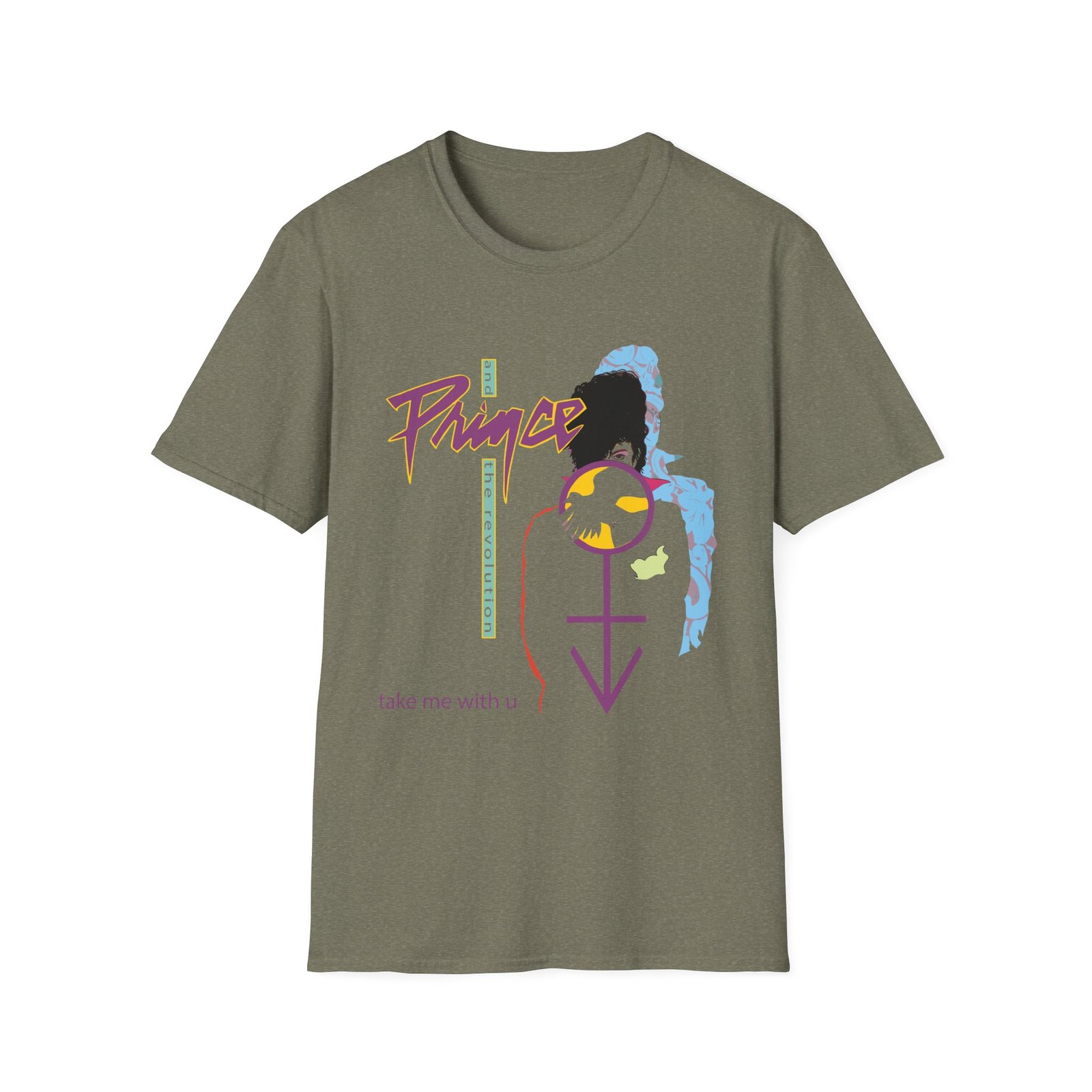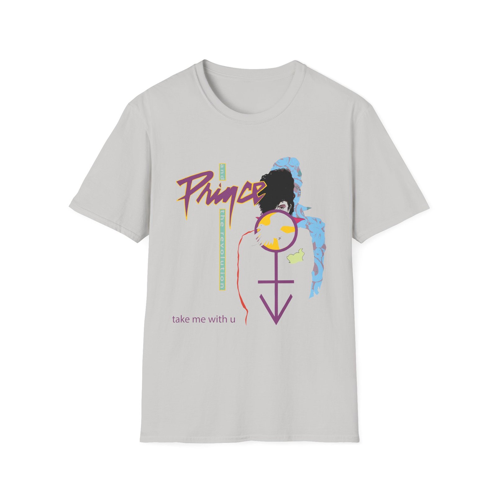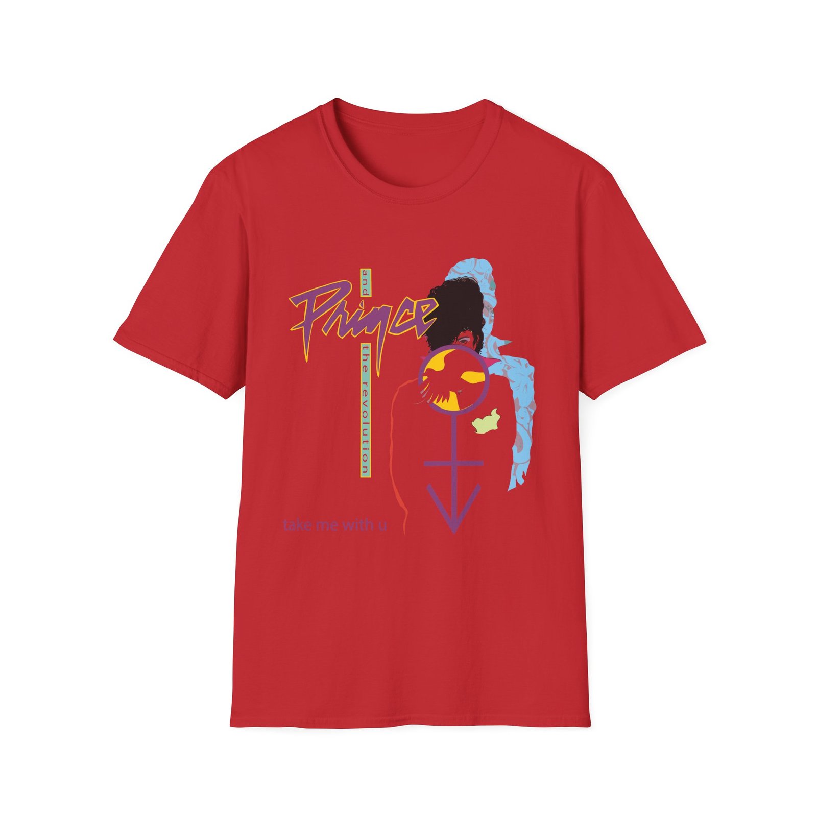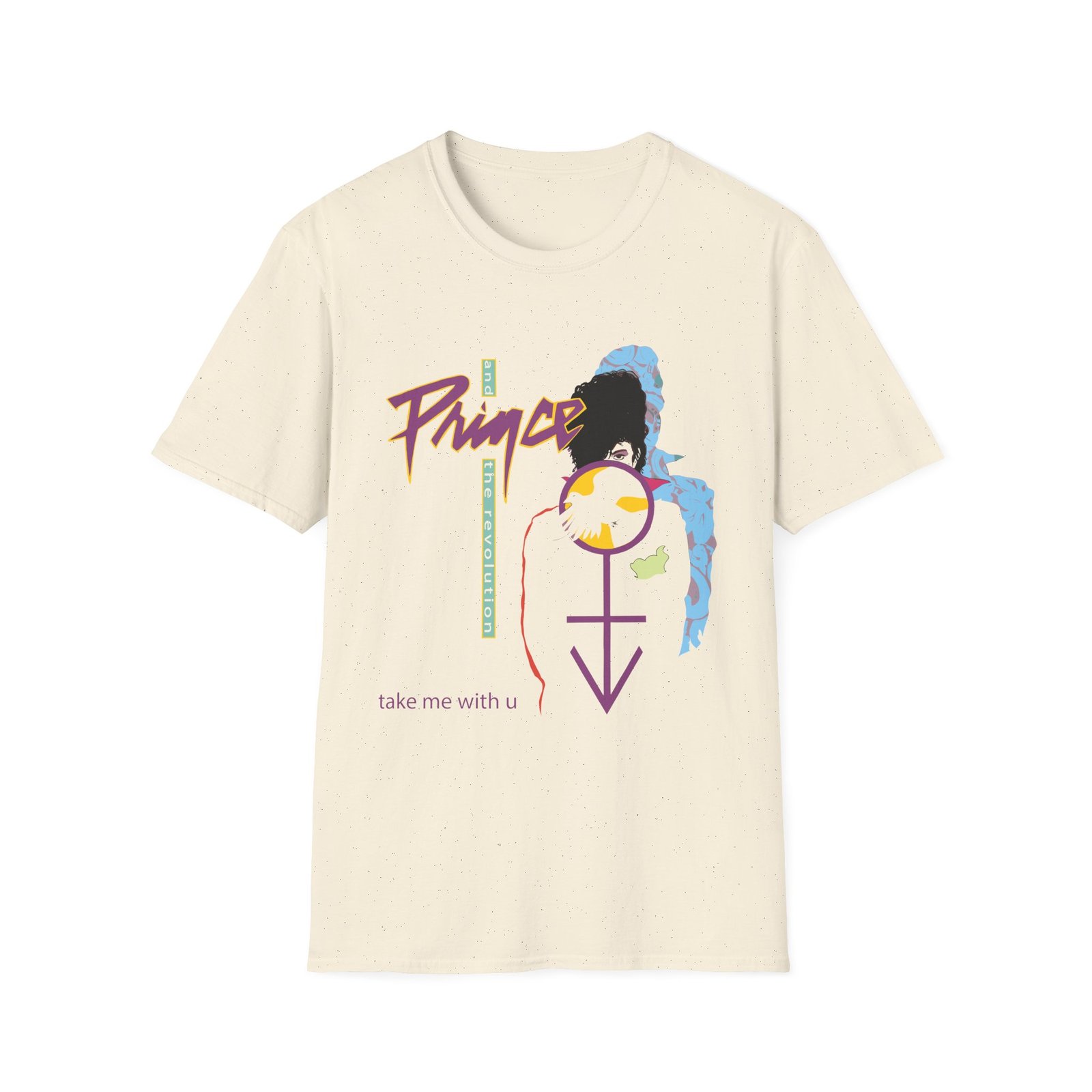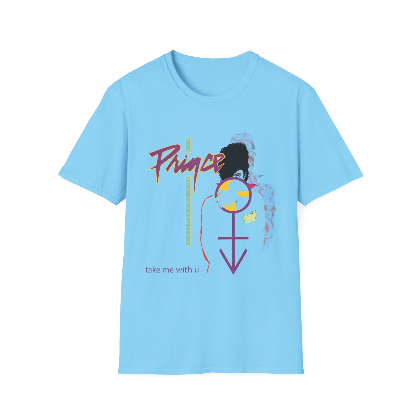 The Prince Take Me With U unisex soft-style t-shirt puts a new spin on casual comfort. Made from very soft materials, this tee is 100% cotton for solid colors. Heather colors and sports grey include polyester. The shoulders have twill tape for improved durability. There are no side seams. The collar is made with ribbed knitting to prevent curling damage.