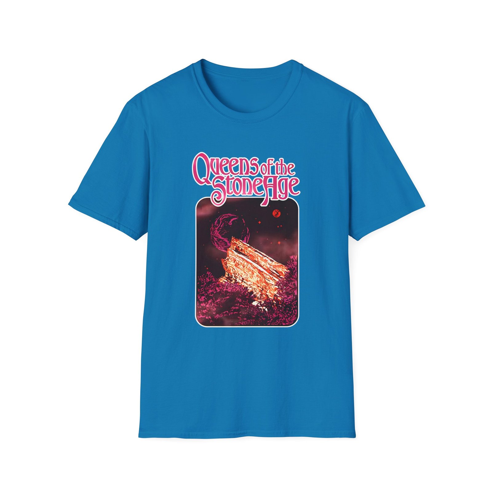 The Queens of the Stone Age Ascension unisex soft-style t-shirt puts a new spin on casual comfort. Made from very soft materials, this tee is 100% cotton for solid colors. Heather colors and sports grey include polyester. The shoulders have twill tape for improved durability. There are no side seams. The collar is made with ribbed knitting to prevent curling damage.