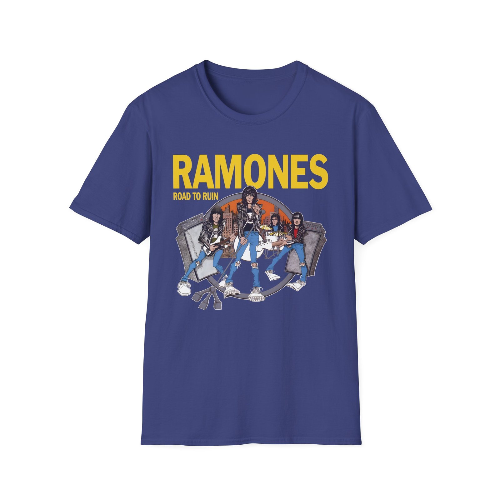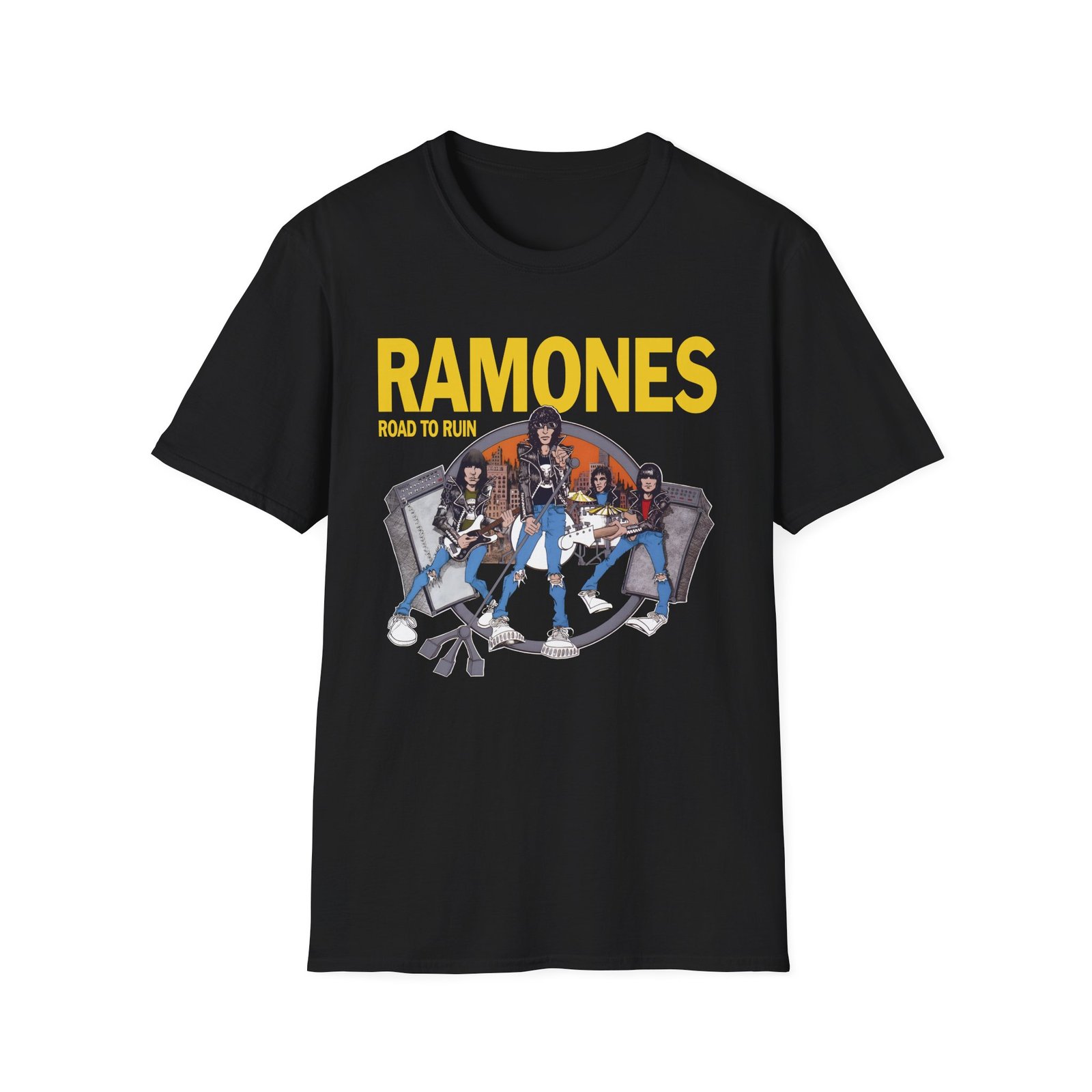 The Ramones Ramones I Wanna Be Sedated unisex soft-style t-shirt puts a new spin on casual comfort. Made from very soft materials, this tee is 100% cotton for solid colors. Heather colors and sports grey include polyester. The shoulders have twill tape for improved durability. There are no side seams. The collar is made with ribbed knitting to prevent curling damage.