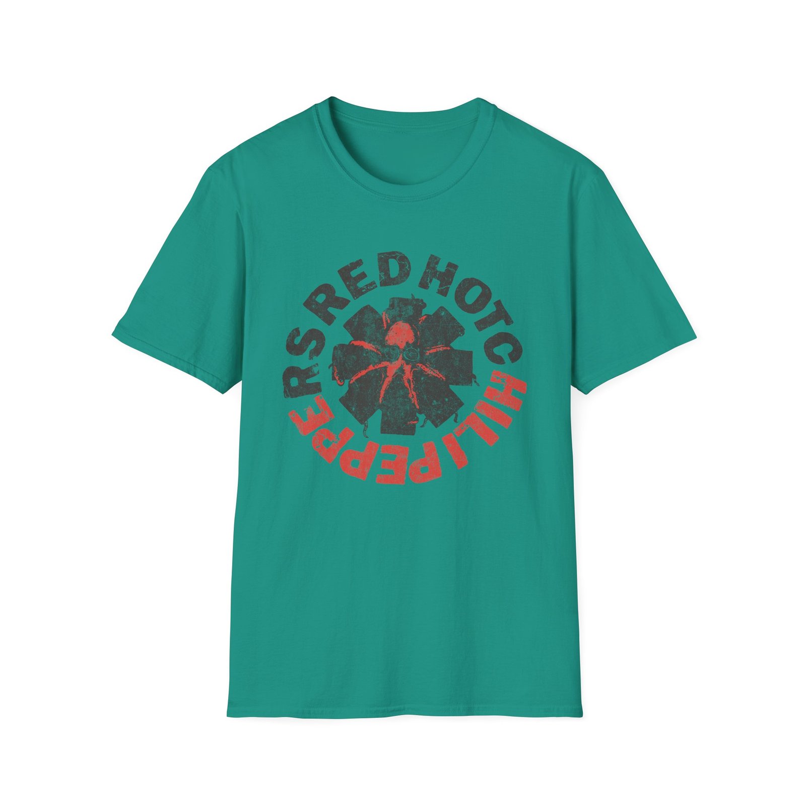 The Red Hot Chili Peppers Octopus Logo unisex soft-style t-shirt puts a new spin on casual comfort. Made from very soft materials, this tee is 100% cotton for solid colors. Heather colors and sports grey include polyester. The shoulders have twill tape for improved durability. There are no side seams. The collar is made with ribbed knitting to prevent curling damage.
