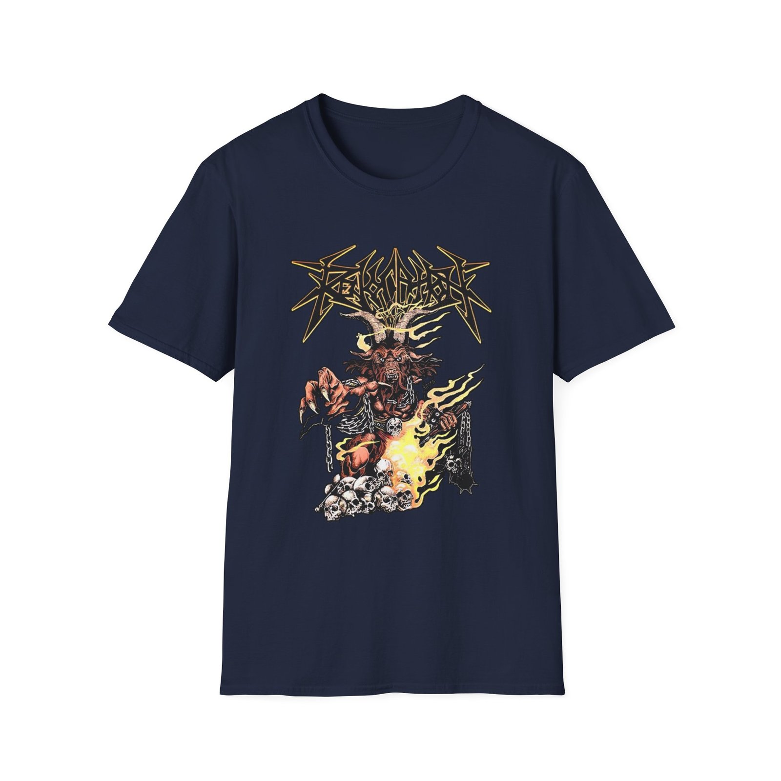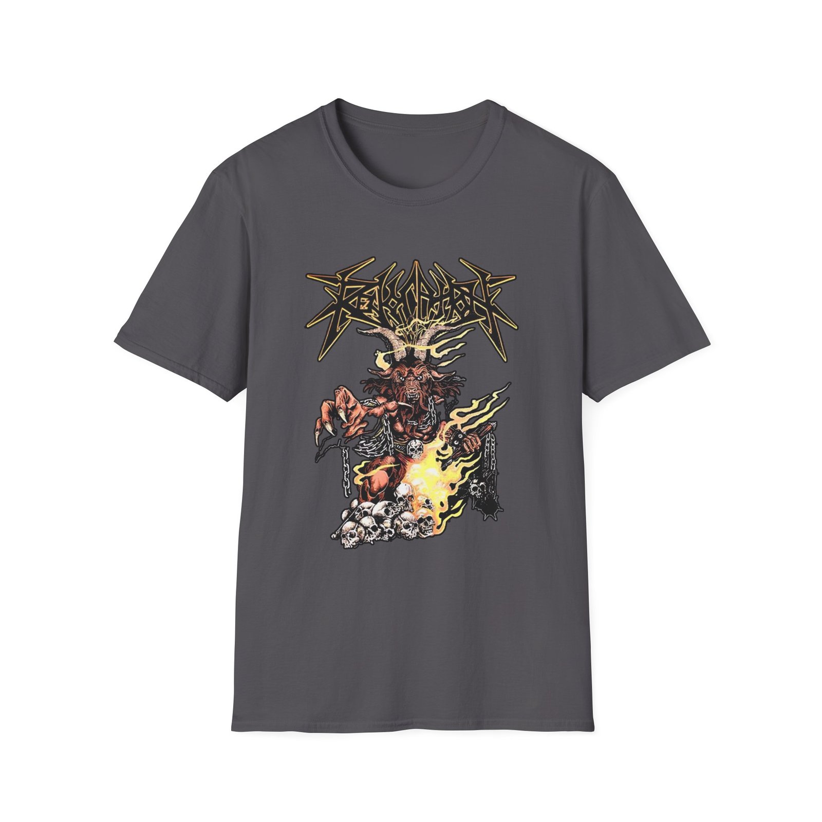 The Revocation Ram and Flail unisex soft-style t-shirt puts a new spin on casual comfort. Made from very soft materials, this tee is 100% cotton for solid colors. Heather colors and sports grey include polyester. The shoulders have twill tape for improved durability. There are no side seams. The collar is made with ribbed knitting to prevent curling damage.