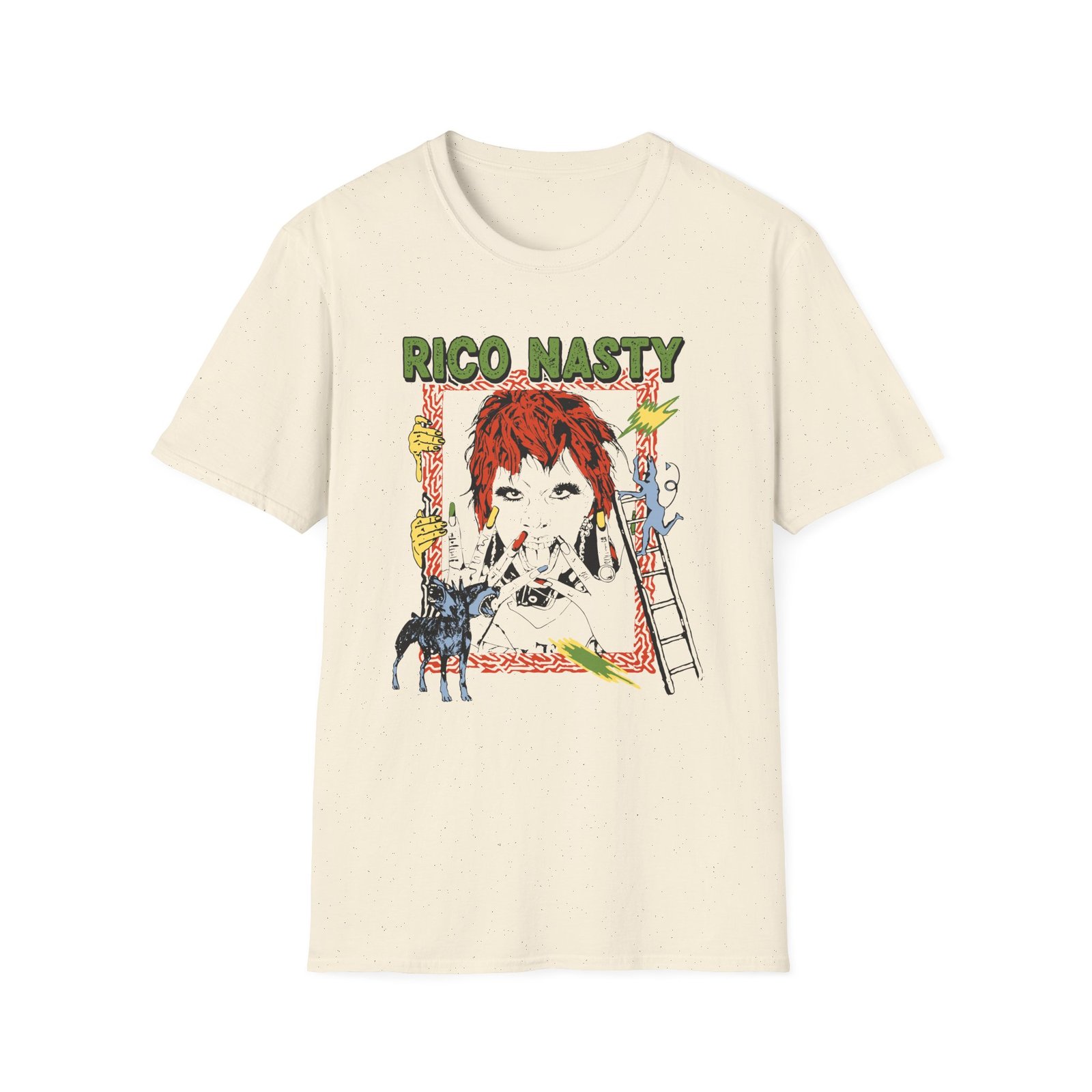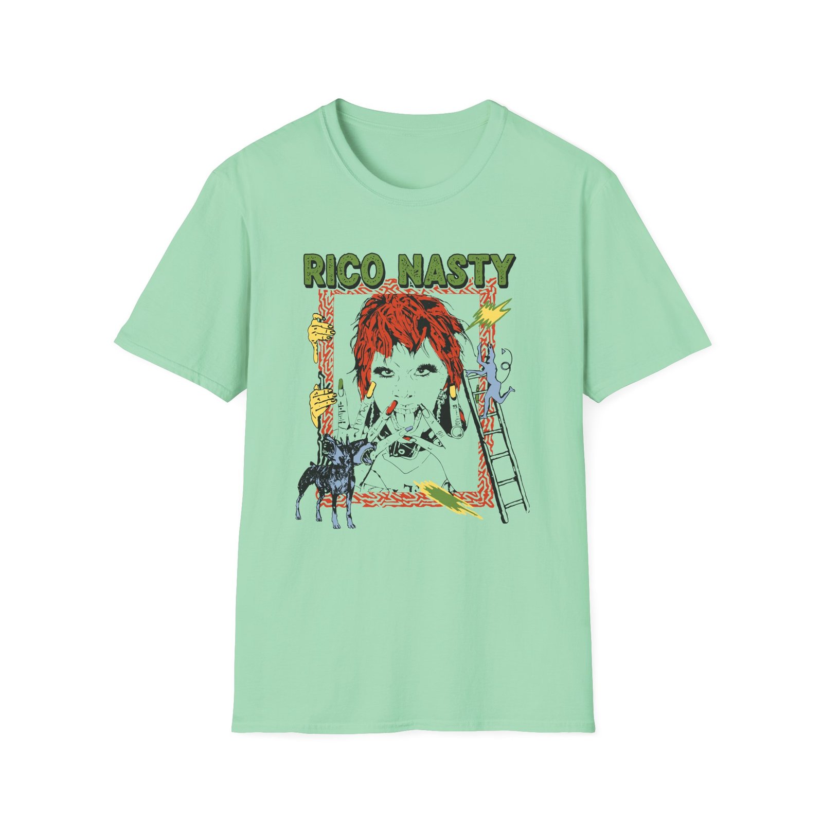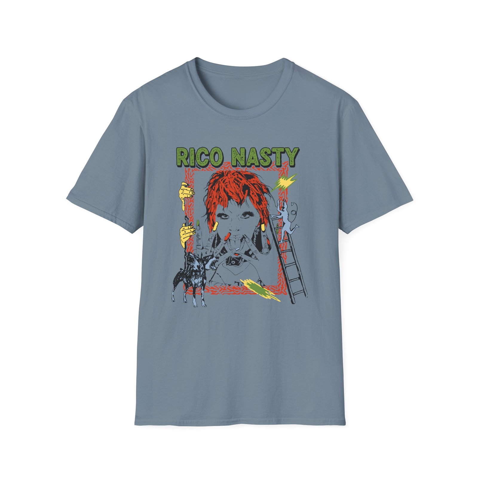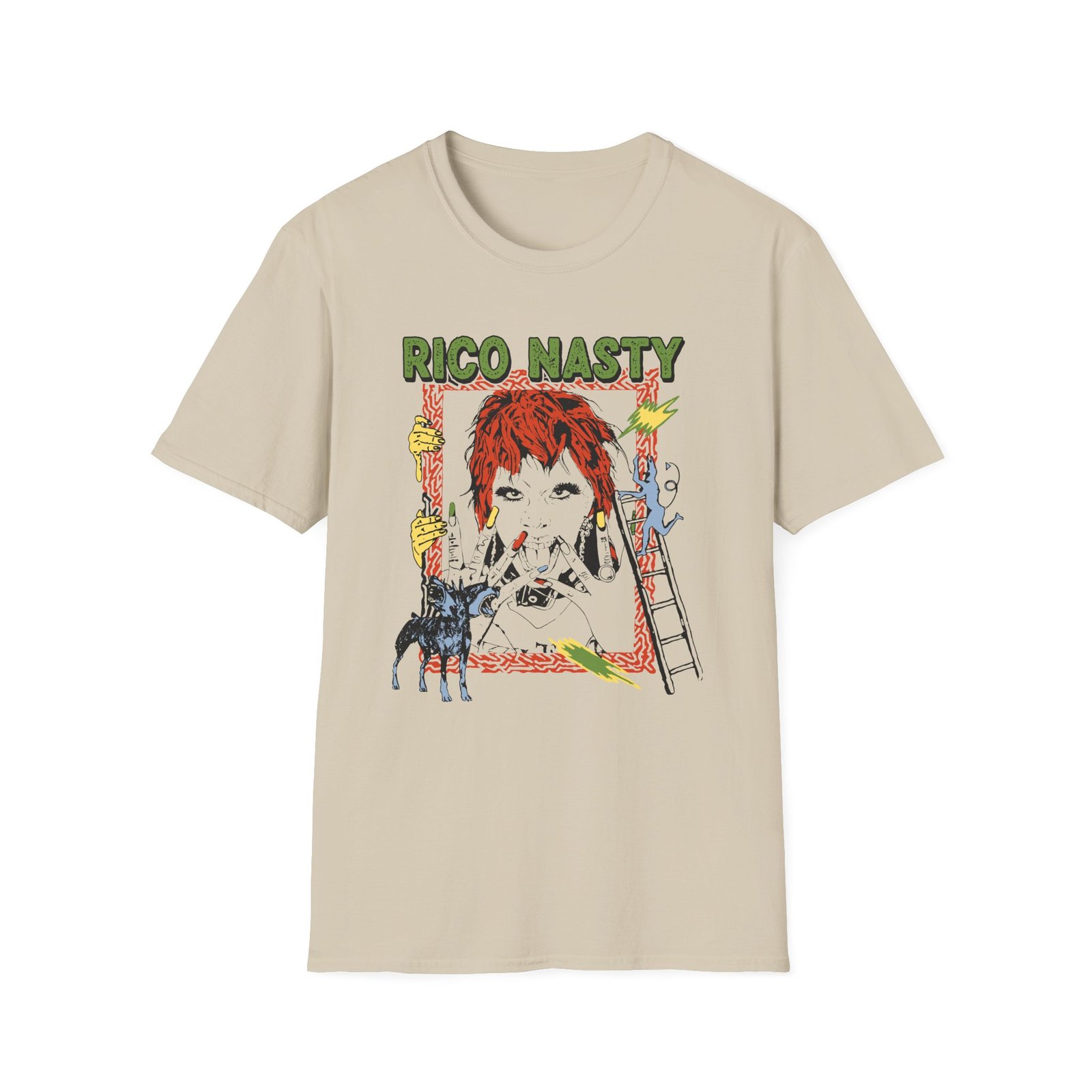 The Rico Nasty unisex soft-style t-shirt puts a new spin on casual comfort. Made from very soft materials, this tee is 100% cotton for solid colors. Heather colors and sports grey include polyester. The shoulders have twill tape for improved durability. There are no side seams. The collar is made with ribbed knitting to prevent curling damage.