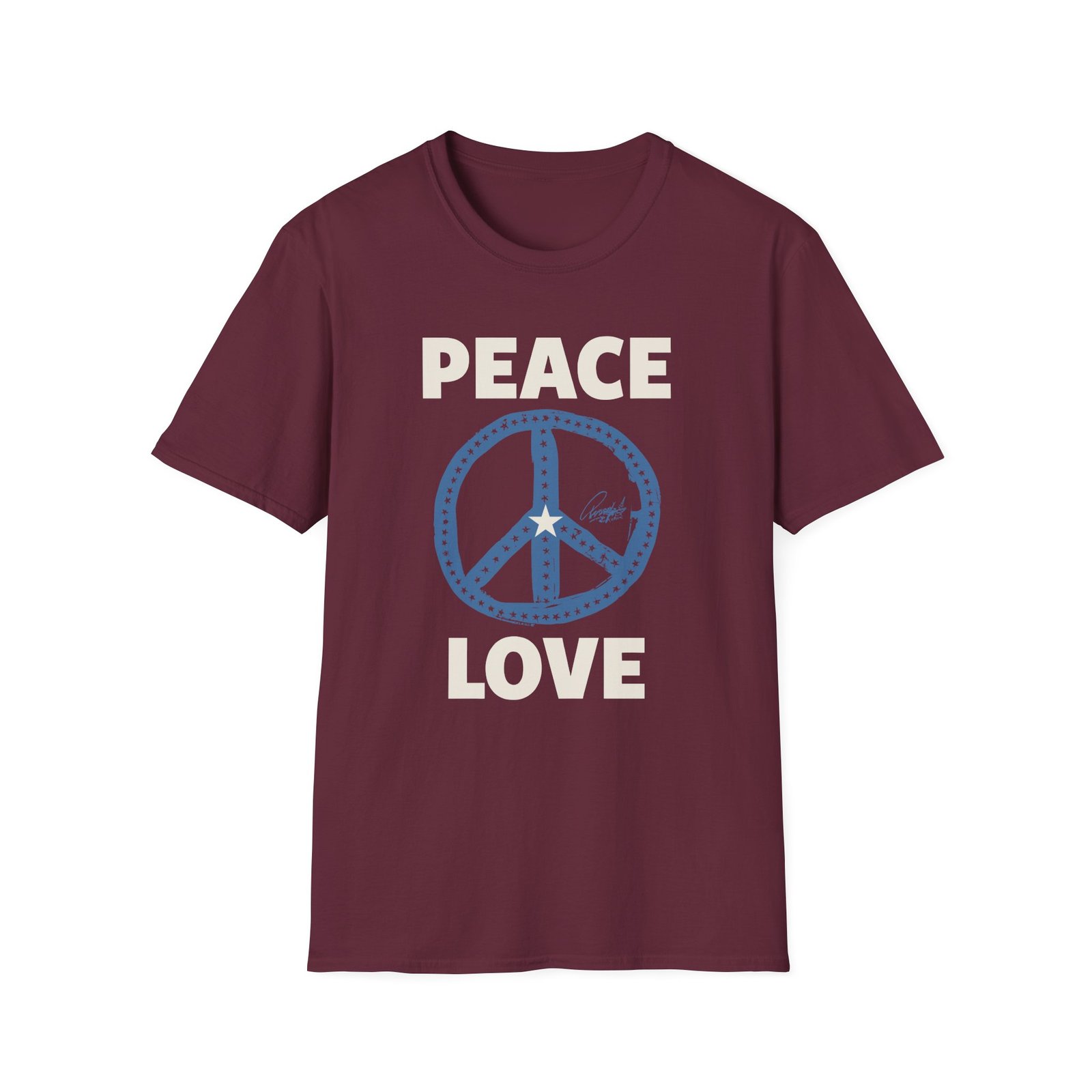 The Ringo Starr Peace Love Star Center unisex soft-style t-shirt puts a new spin on casual comfort. Made from very soft materials, this tee is 100% cotton for solid colors. Heather colors and sports grey include polyester. The shoulders have twill tape for improved durability. There are no side seams. The collar is made with ribbed knitting to prevent curling damage.
