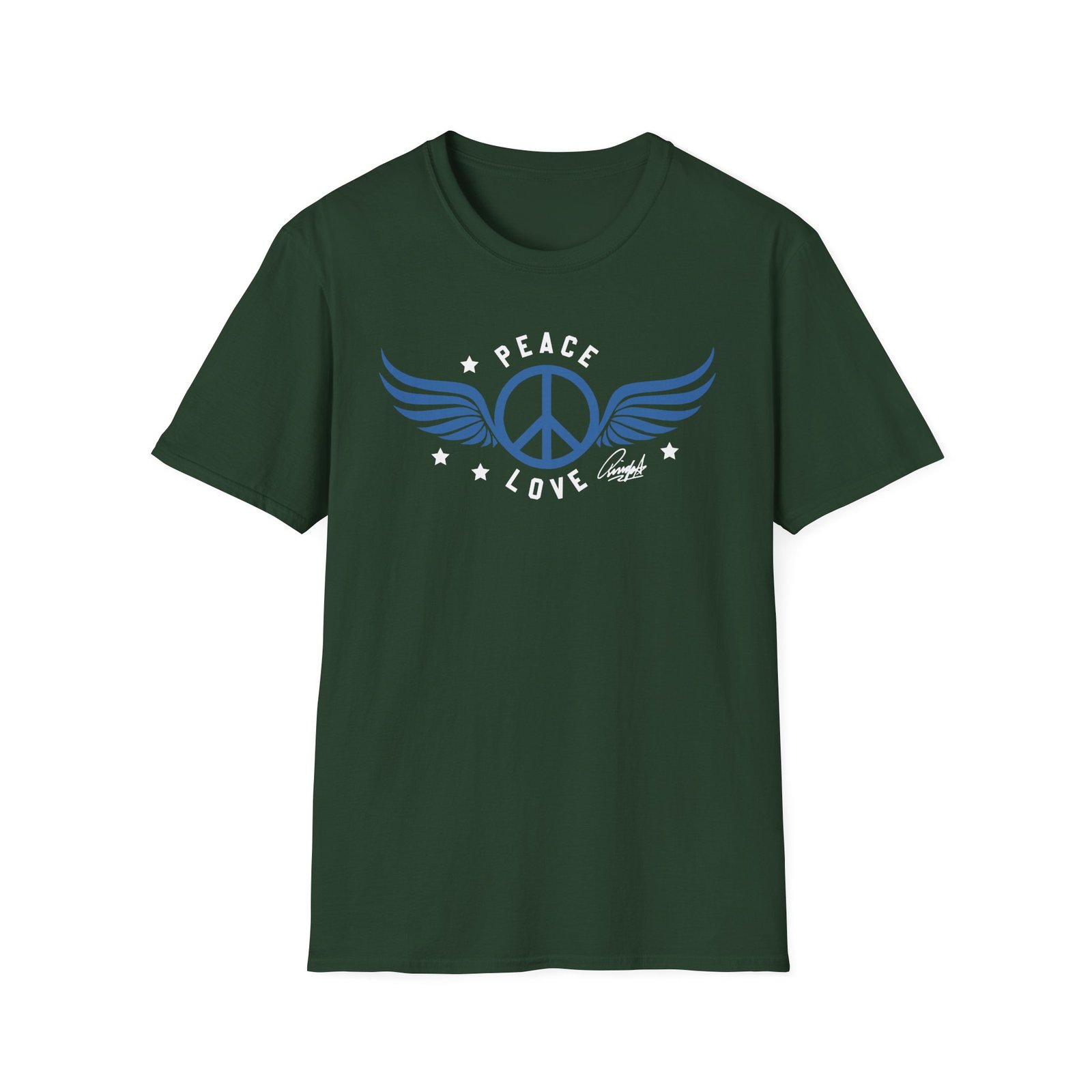 The Ringo Starr Peace Love unisex soft-style t-shirt puts a new spin on casual comfort. Made from very soft materials, this tee is 100% cotton for solid colors. Heather colors and sports grey include polyester. The shoulders have twill tape for improved durability. There are no side seams. The collar is made with ribbed knitting to prevent curling damage.