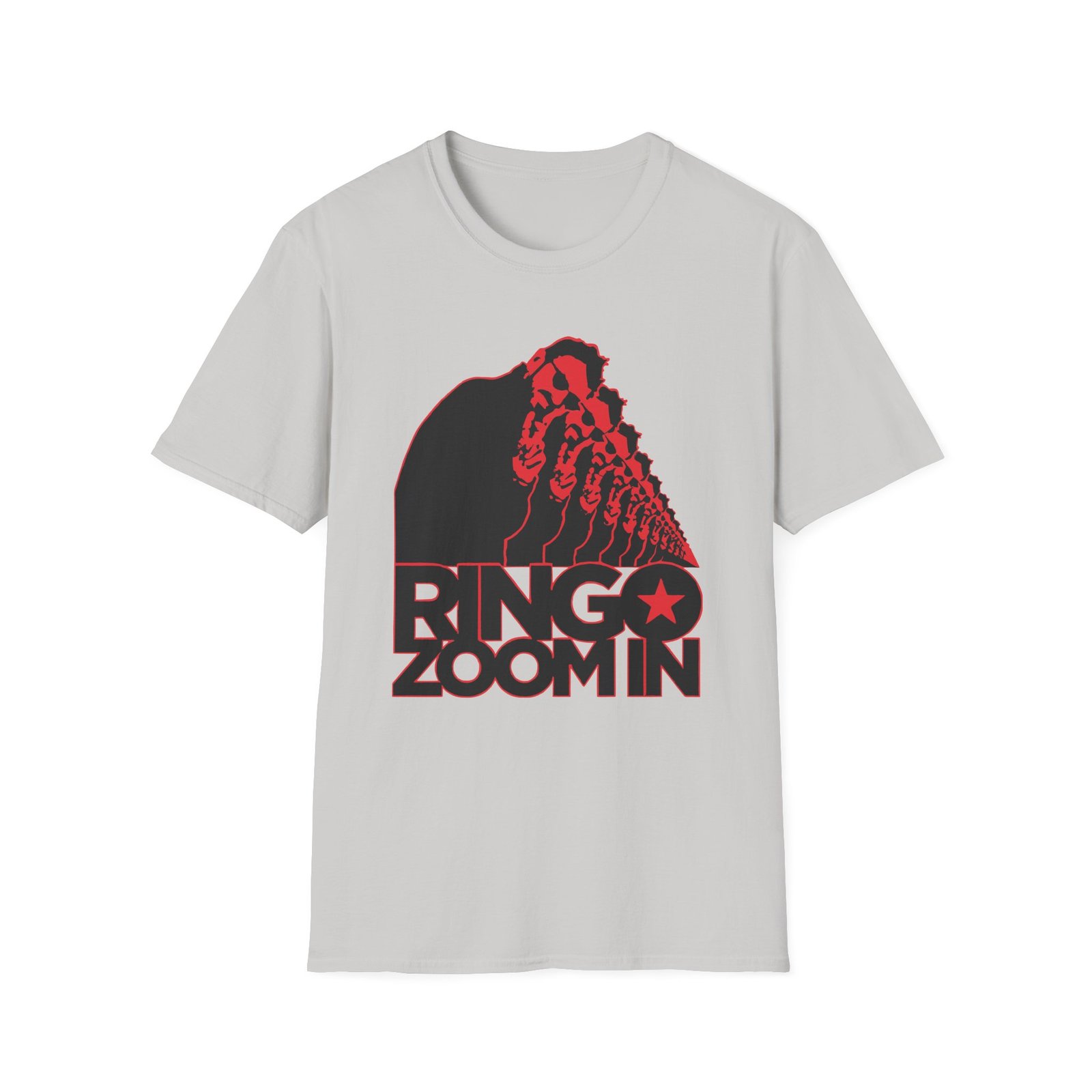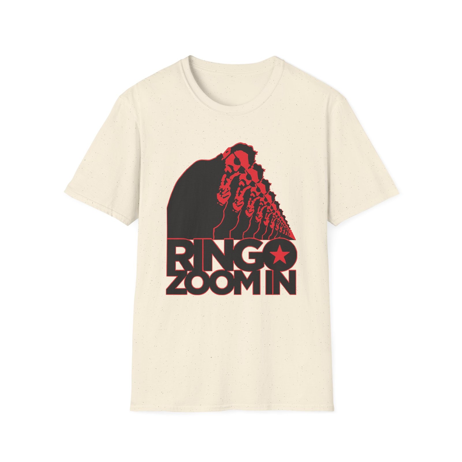The Ringo Starr Ringo Starr Zoom in on Repeat unisex soft-style t-shirt puts a new spin on casual comfort. Made from very soft materials, this tee is 100% cotton for solid colors. Heather colors and sports grey include polyester. The shoulders have twill tape for improved durability. There are no side seams. The collar is made with ribbed knitting to prevent curling damage.