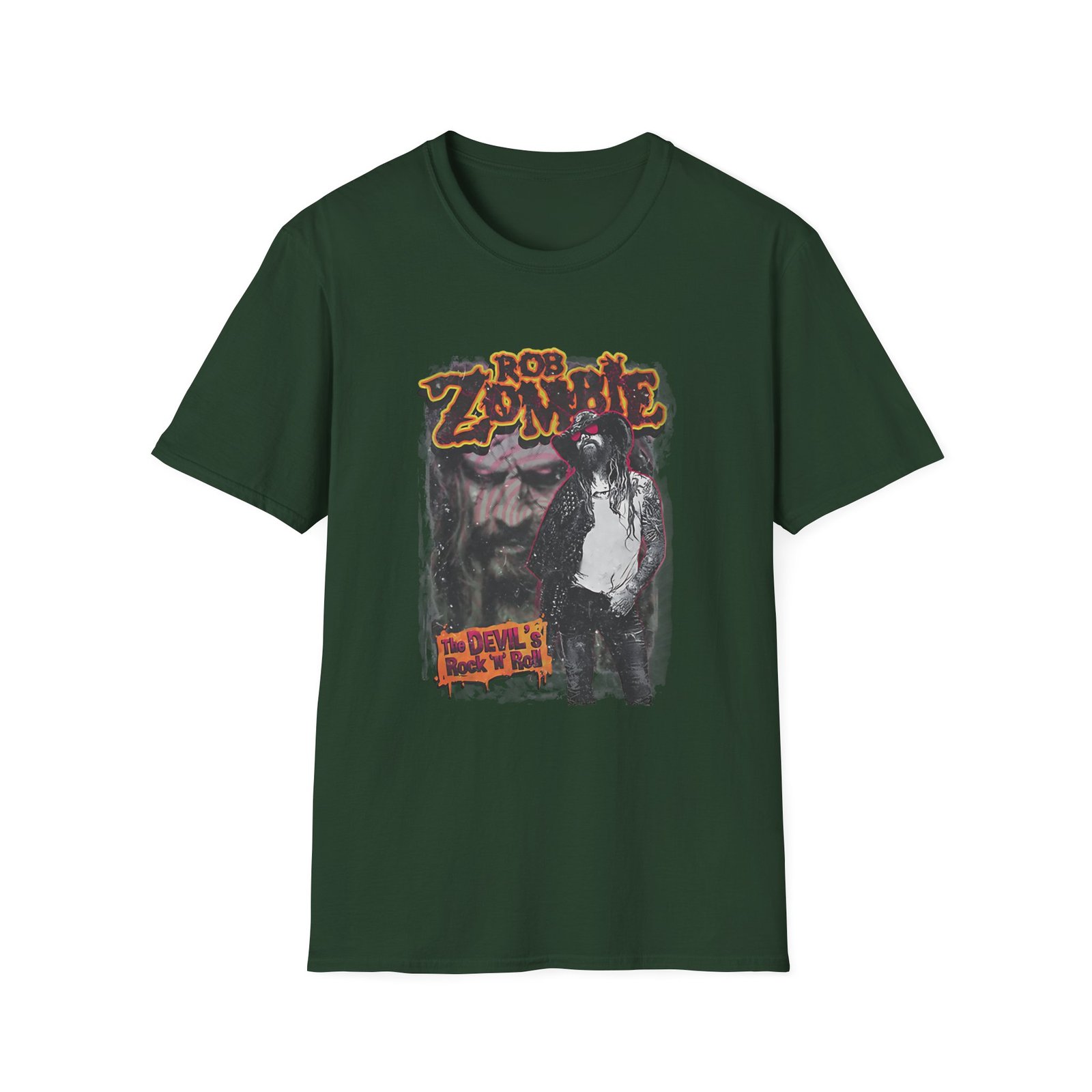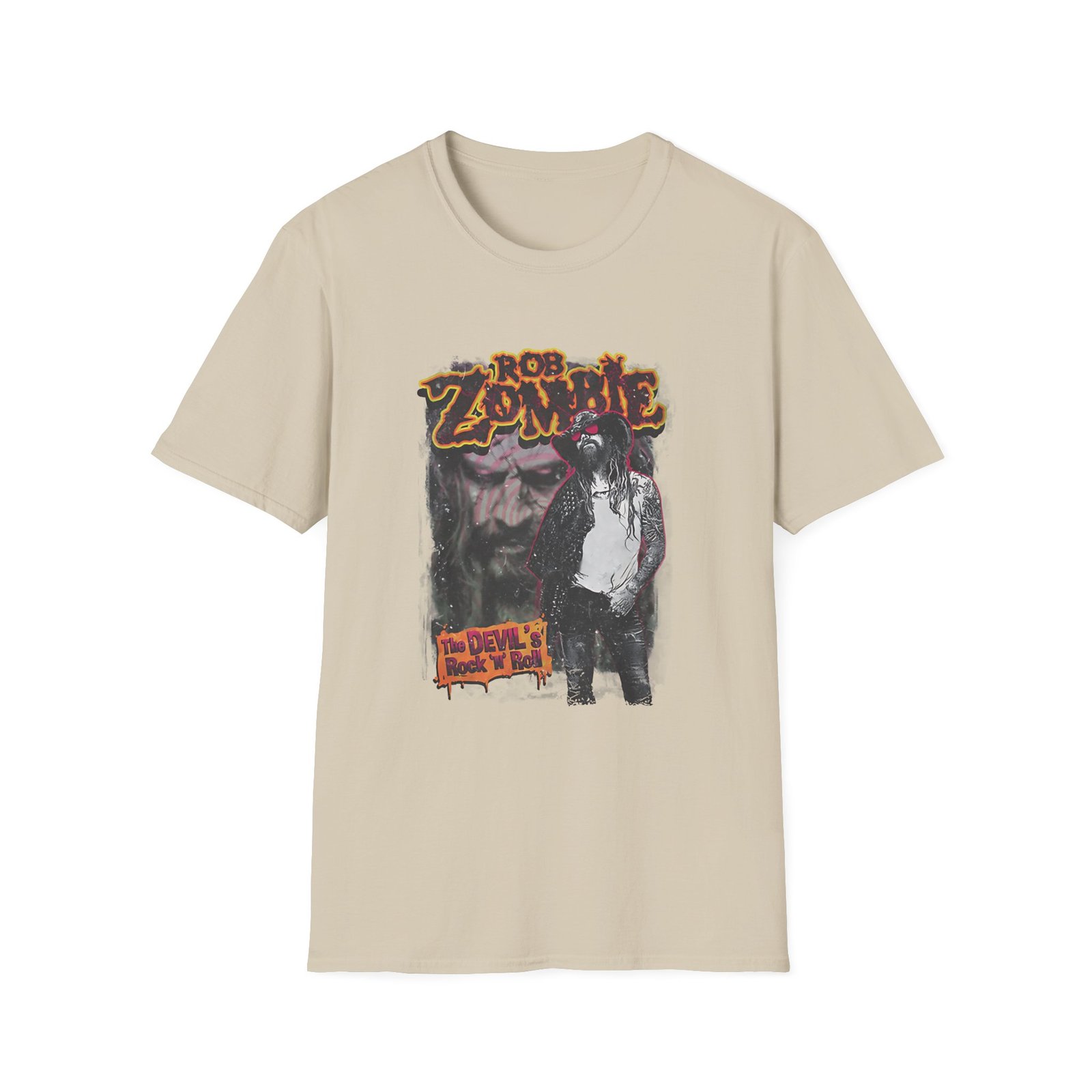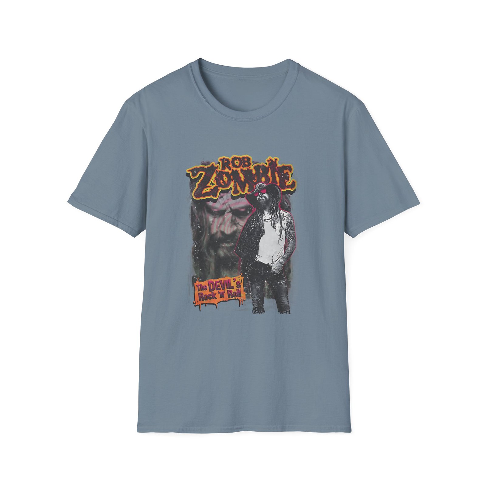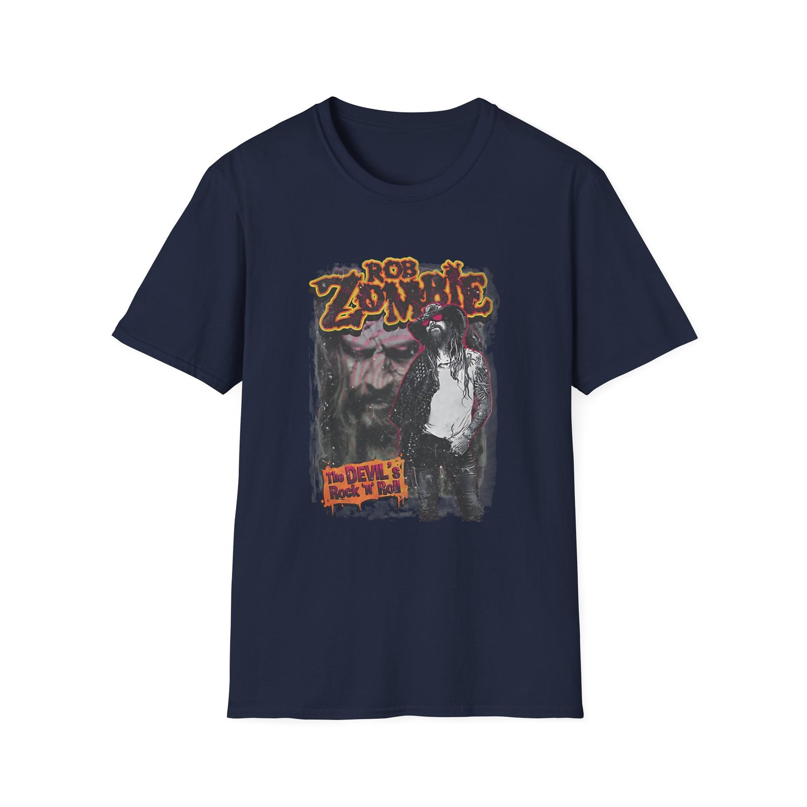 The Rob Zombie Devils Rock N Roll unisex soft-style t-shirt puts a new spin on casual comfort. Made from very soft materials, this tee is 100% cotton for solid colors. Heather colors and sports grey include polyester. The shoulders have twill tape for improved durability. There are no side seams. The collar is made with ribbed knitting to prevent curling damage.