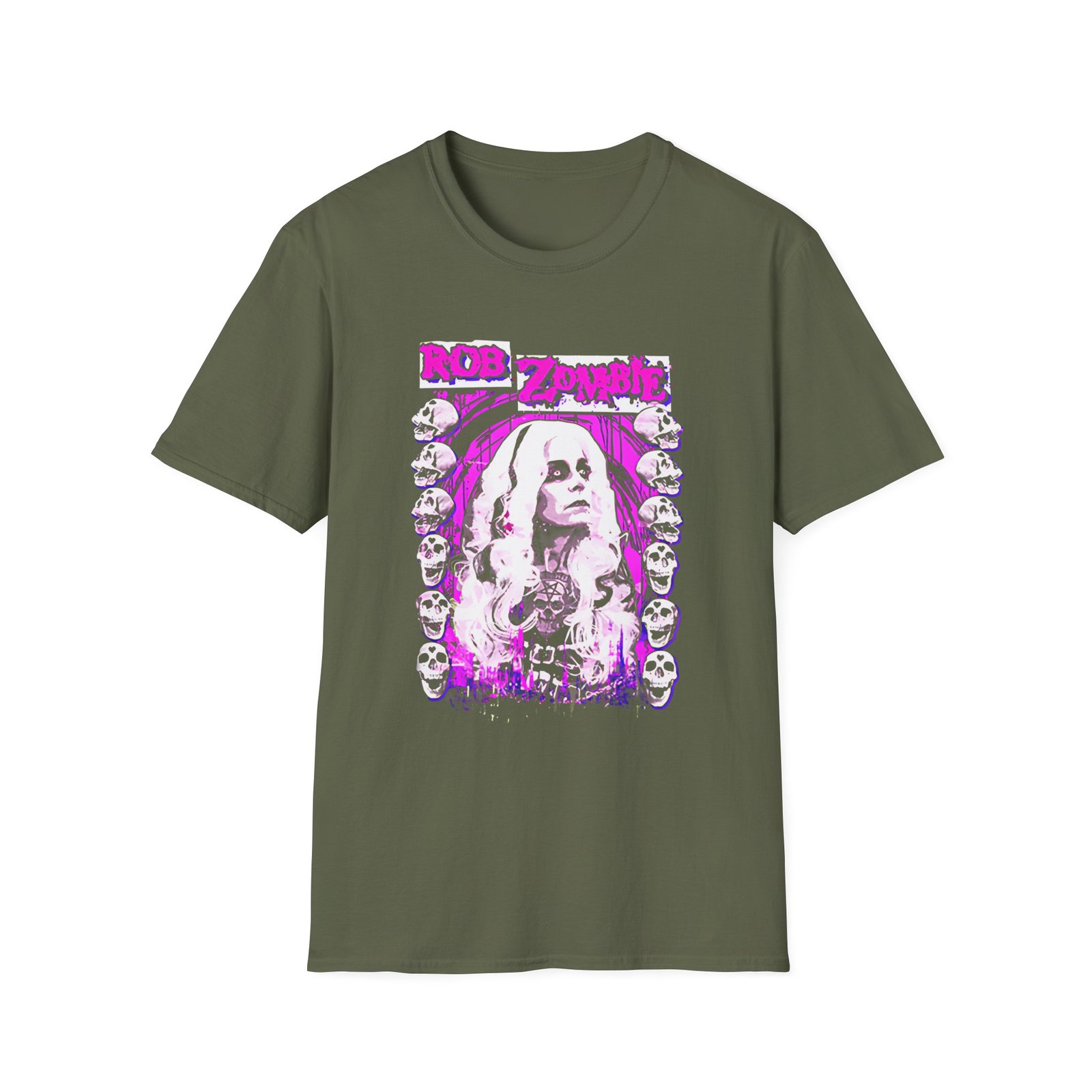 The Rob Zombie Sheri Mystery unisex soft-style t-shirt puts a new spin on casual comfort. Made from very soft materials, this tee is 100% cotton for solid colors. Heather colors and sports grey include polyester. The shoulders have twill tape for improved durability. There are no side seams. The collar is made with ribbed knitting to prevent curling damage.