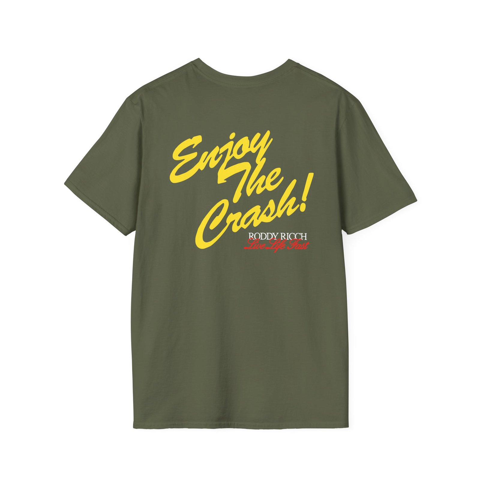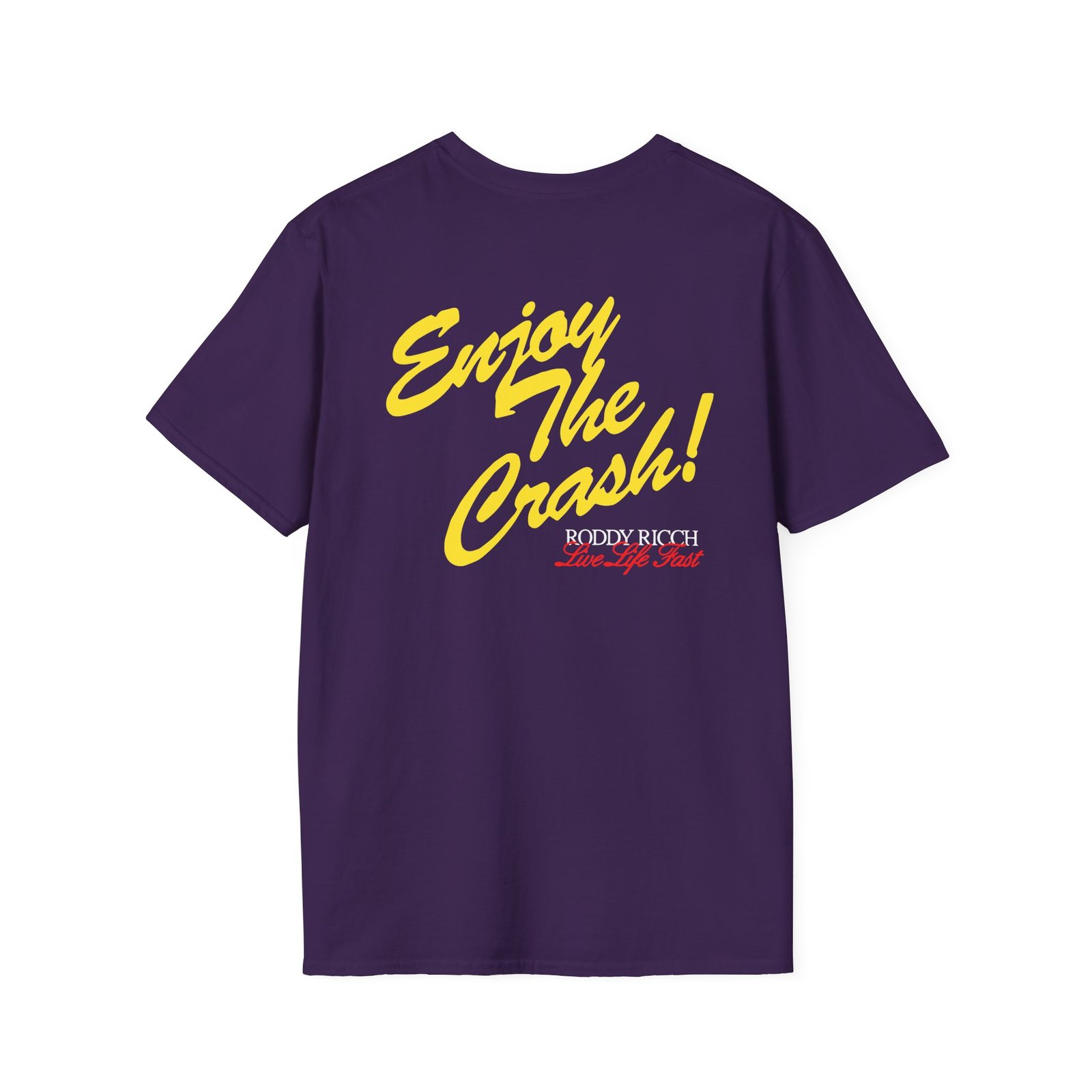 The Roddy Ricch Enjoy the Crash unisex soft-style t-shirt puts a new spin on casual comfort. Made from very soft materials, this tee is 100% cotton for solid colors. Heather colors and sports grey include polyester. The shoulders have twill tape for improved durability. There are no side seams. The collar is made with ribbed knitting to prevent curling damage.