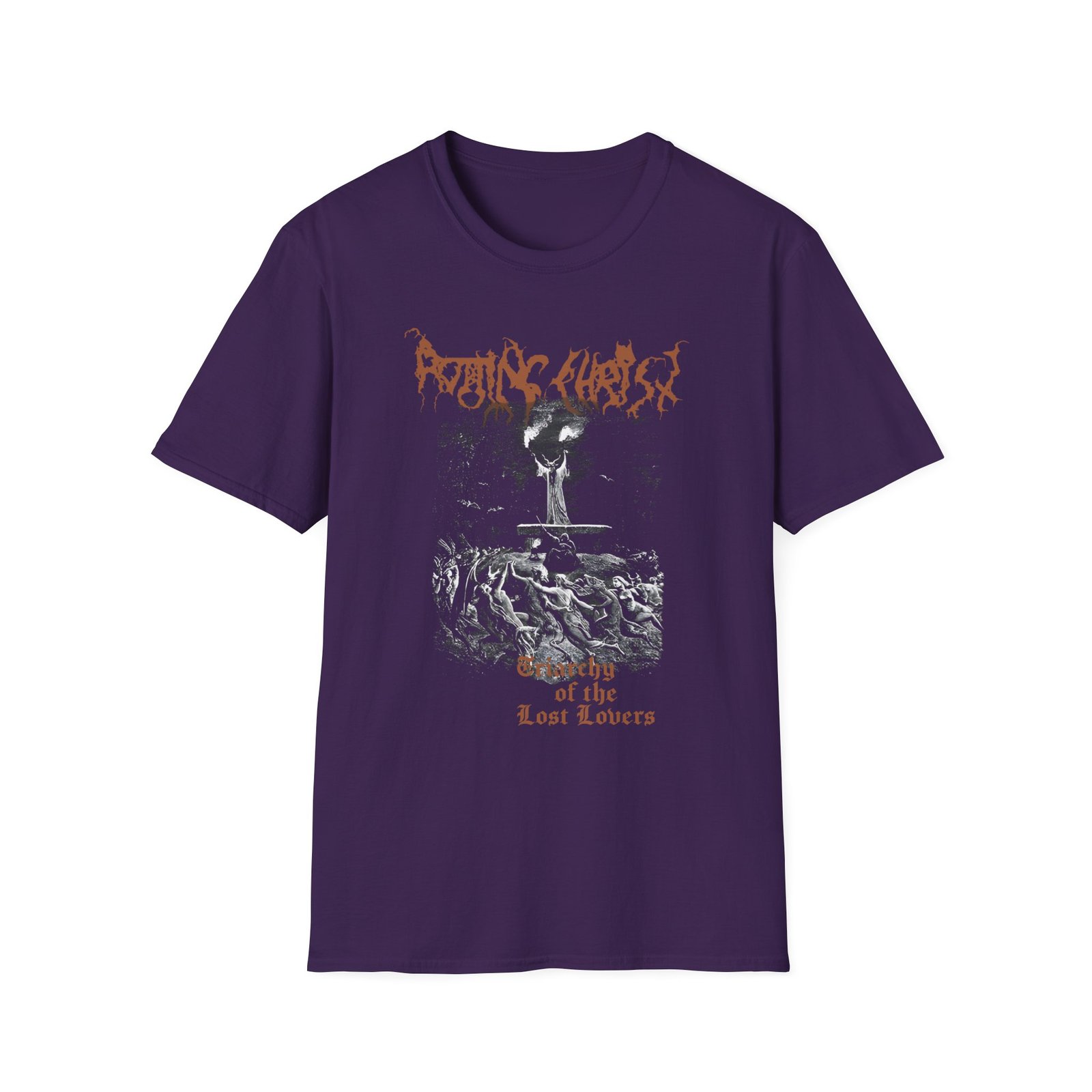 The Rotting Christ Triarchy of the Lost Lovers unisex soft-style t-shirt puts a new spin on casual comfort. Made from very soft materials, this tee is 100% cotton for solid colors. Heather colors and sports grey include polyester. The shoulders have twill tape for improved durability. There are no side seams. The collar is made with ribbed knitting to prevent curling damage.