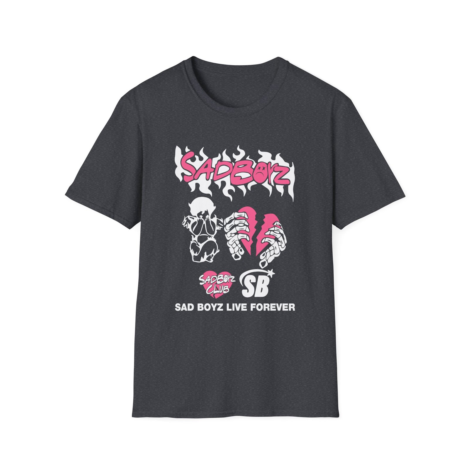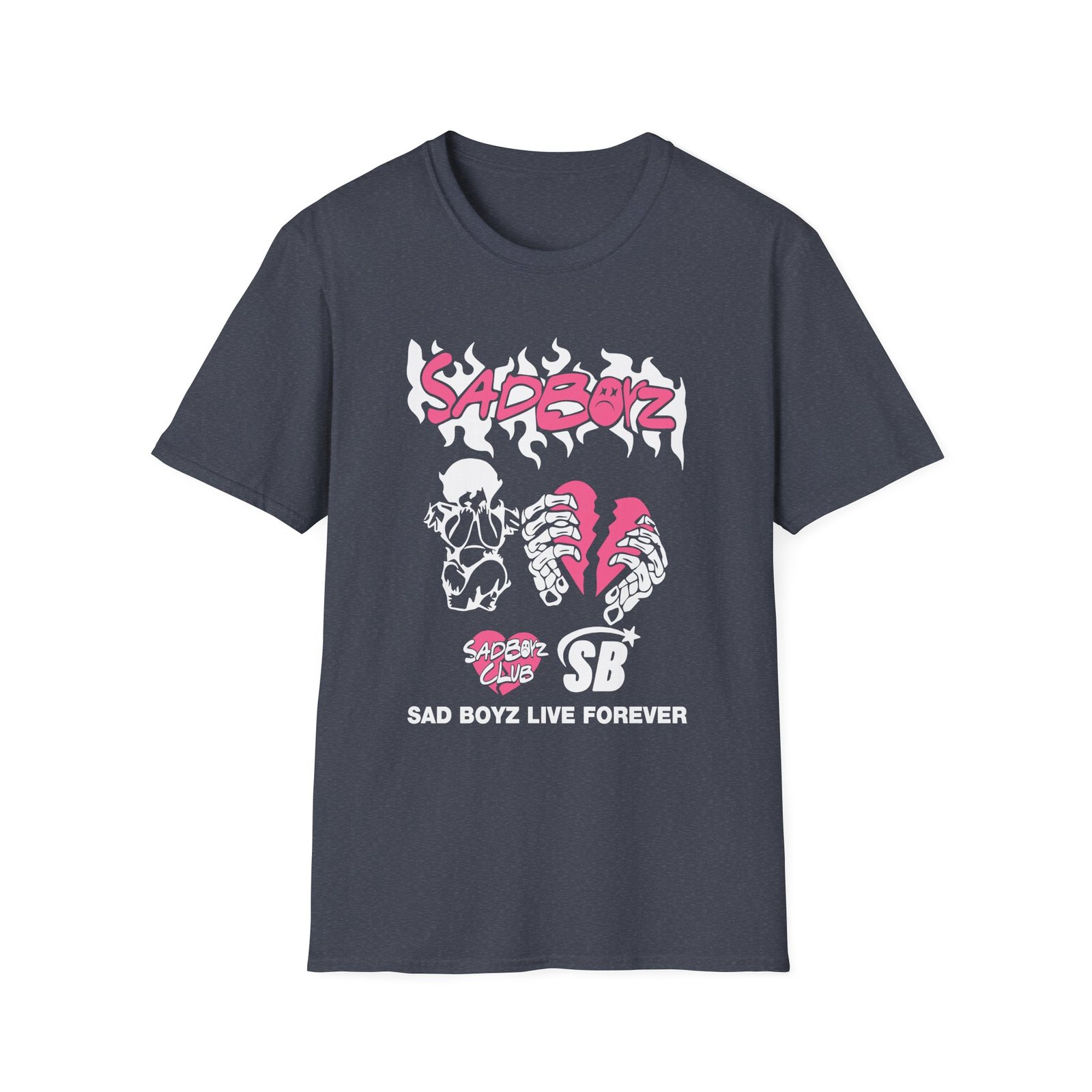 The Sad Boyz by Junior H Club unisex soft-style t-shirt puts a new spin on casual comfort. Made from very soft materials, this tee is 100% cotton for solid colors. Heather colors and sports grey include polyester. The shoulders have twill tape for improved durability. There are no side seams. The collar is made with ribbed knitting to prevent curling damage.