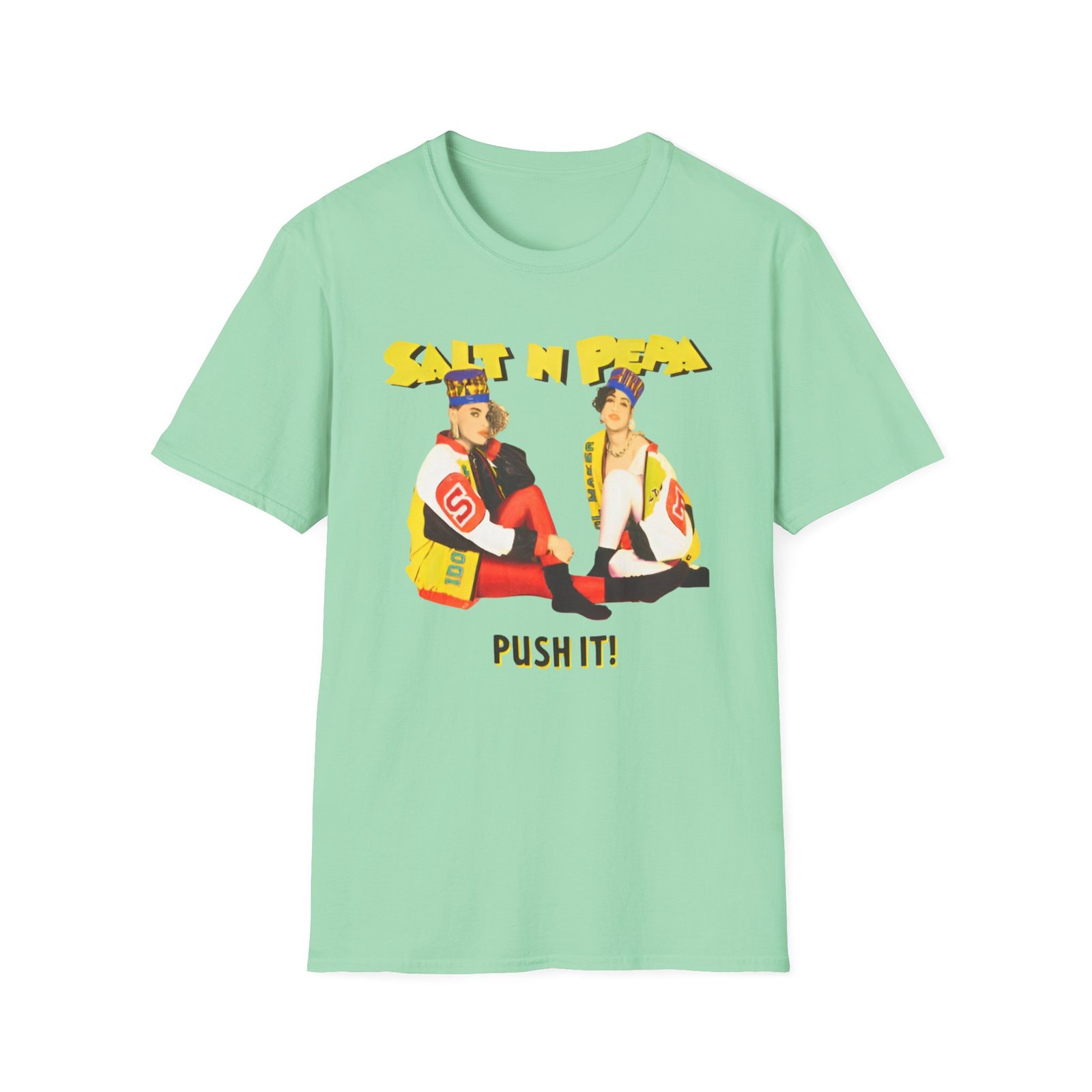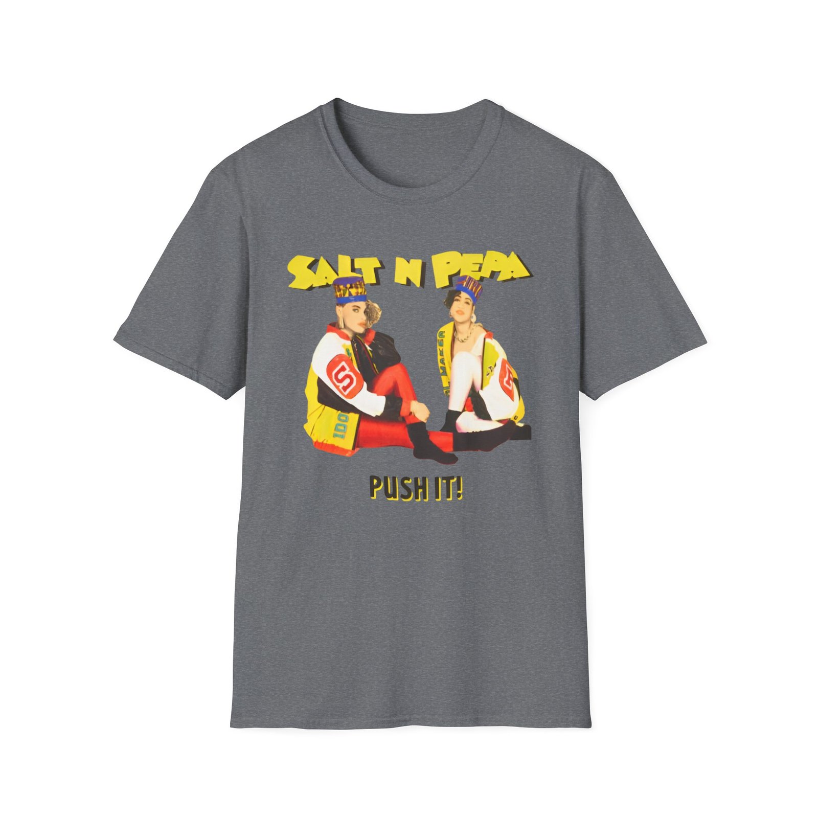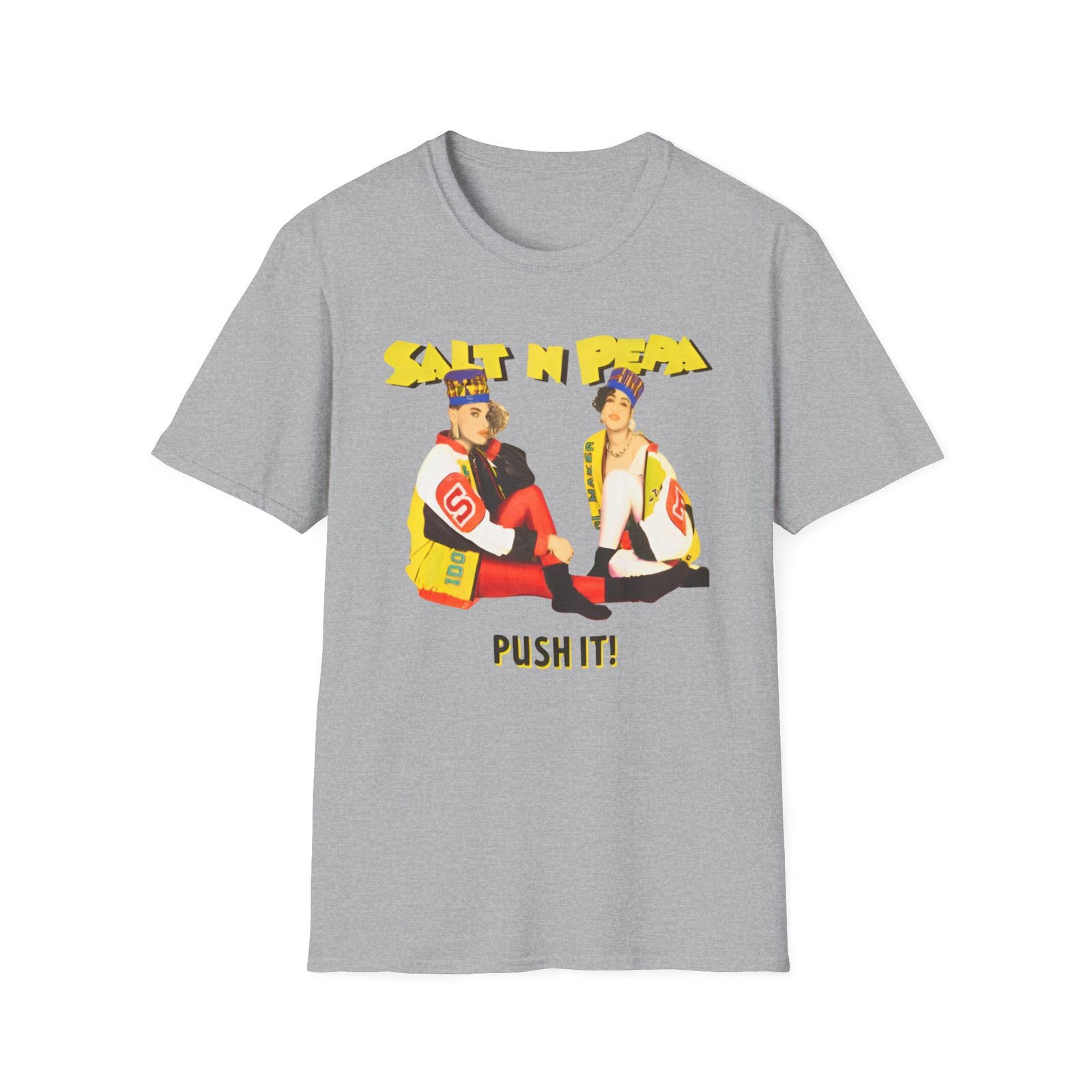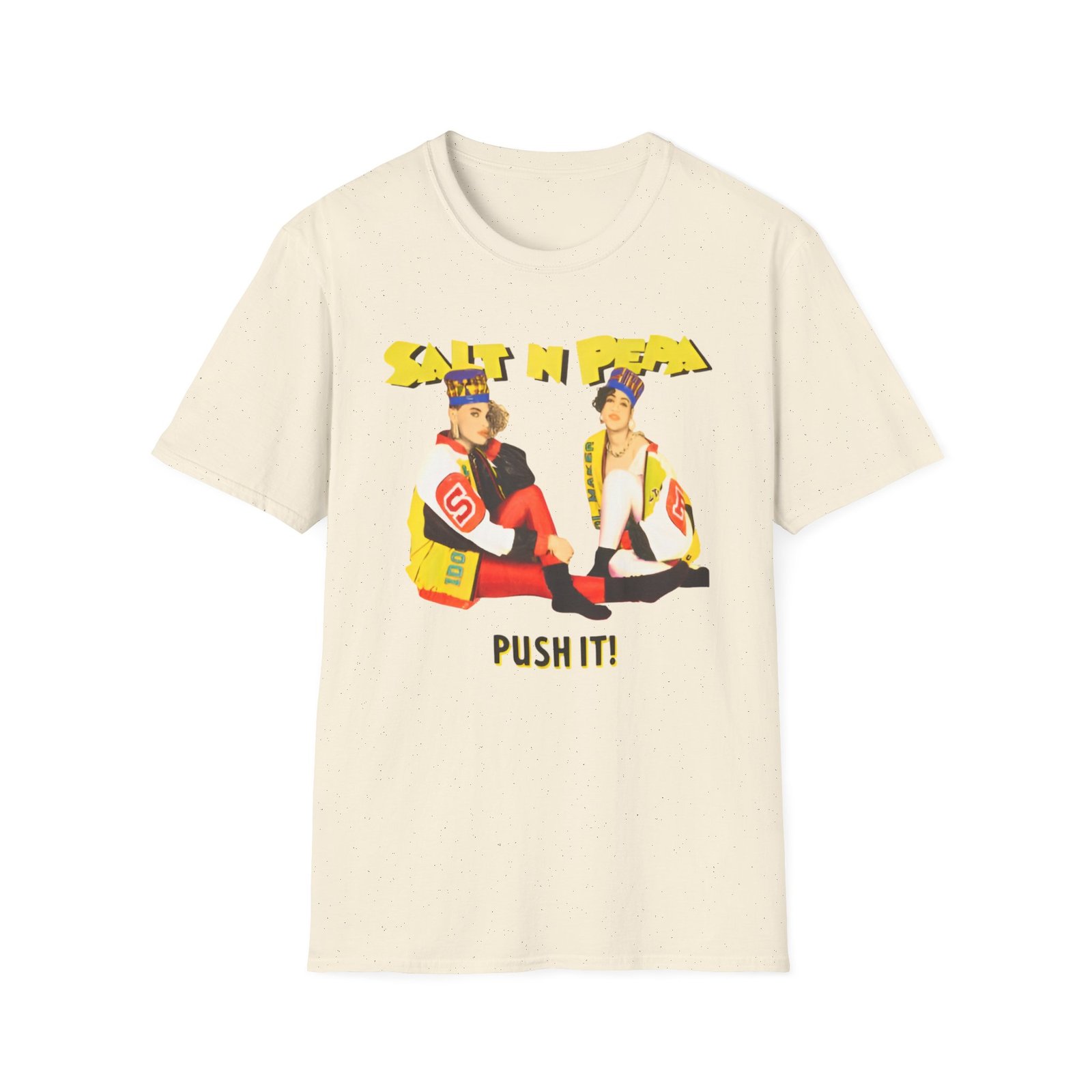 The Salt N Pepa unisex soft-style t-shirt puts a new spin on casual comfort. Made from very soft materials, this tee is 100% cotton for solid colors. Heather colors and sports grey include polyester. The shoulders have twill tape for improved durability. There are no side seams. The collar is made with ribbed knitting to prevent curling damage.